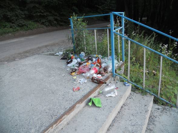 Гори сміття, непотребу, паперу, обгорток від чіпсів, кульки, пластикові та скляні пляшки. Це все – біля причалу, що поблизу Дальнього пляжу.