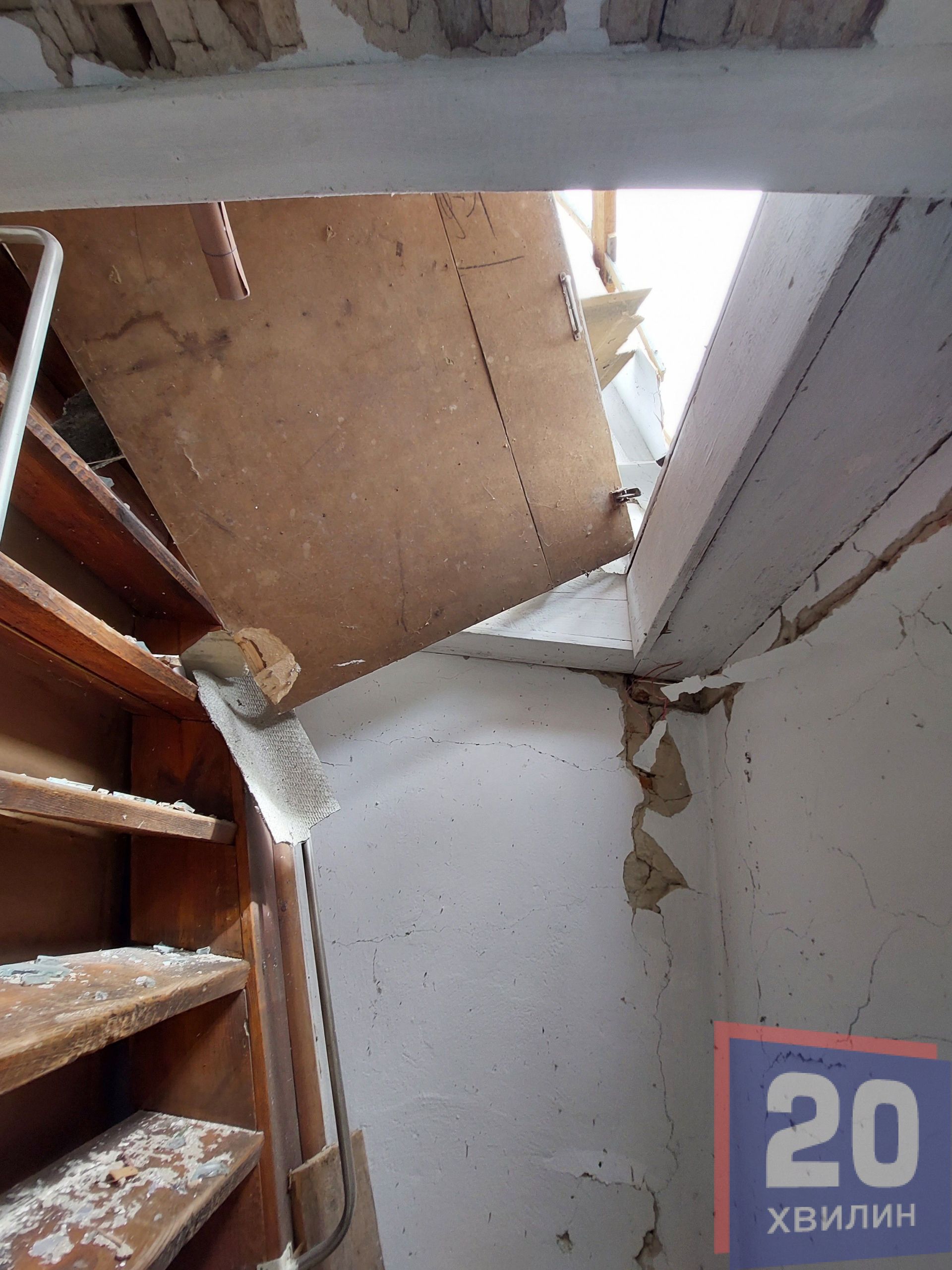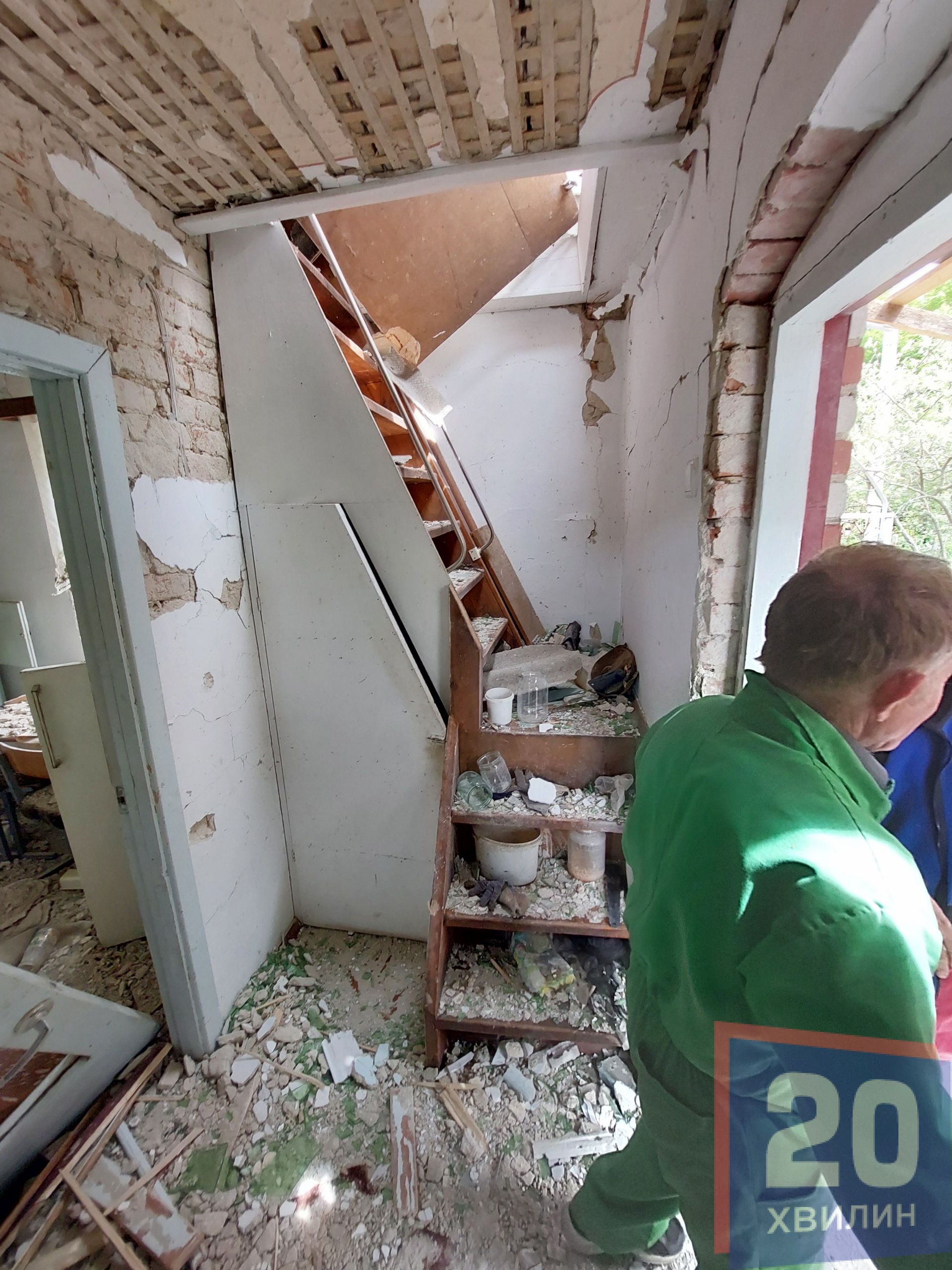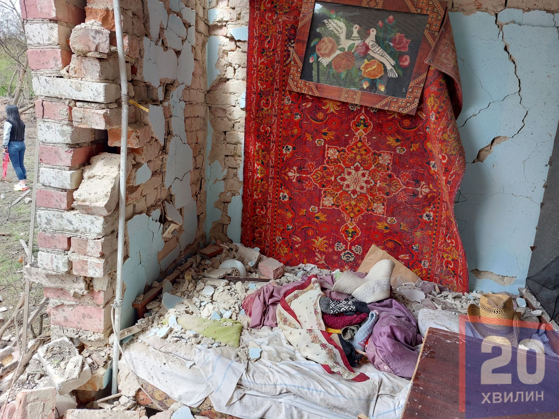 — У будинку повиривало двері, тріснула стіна, зруйновані верхній поверх, дах, сарай, — господиня показала будинок і що з нього залишилось. Тільки просить рухатись обережно, бо навіть через два дні після «прильоту» все осипається і падає. — Мене сусідка ввечері того дня переконала, бо я хотіла залишатись на ніч. Мовляв, їдемо додому, тут ще холодно.