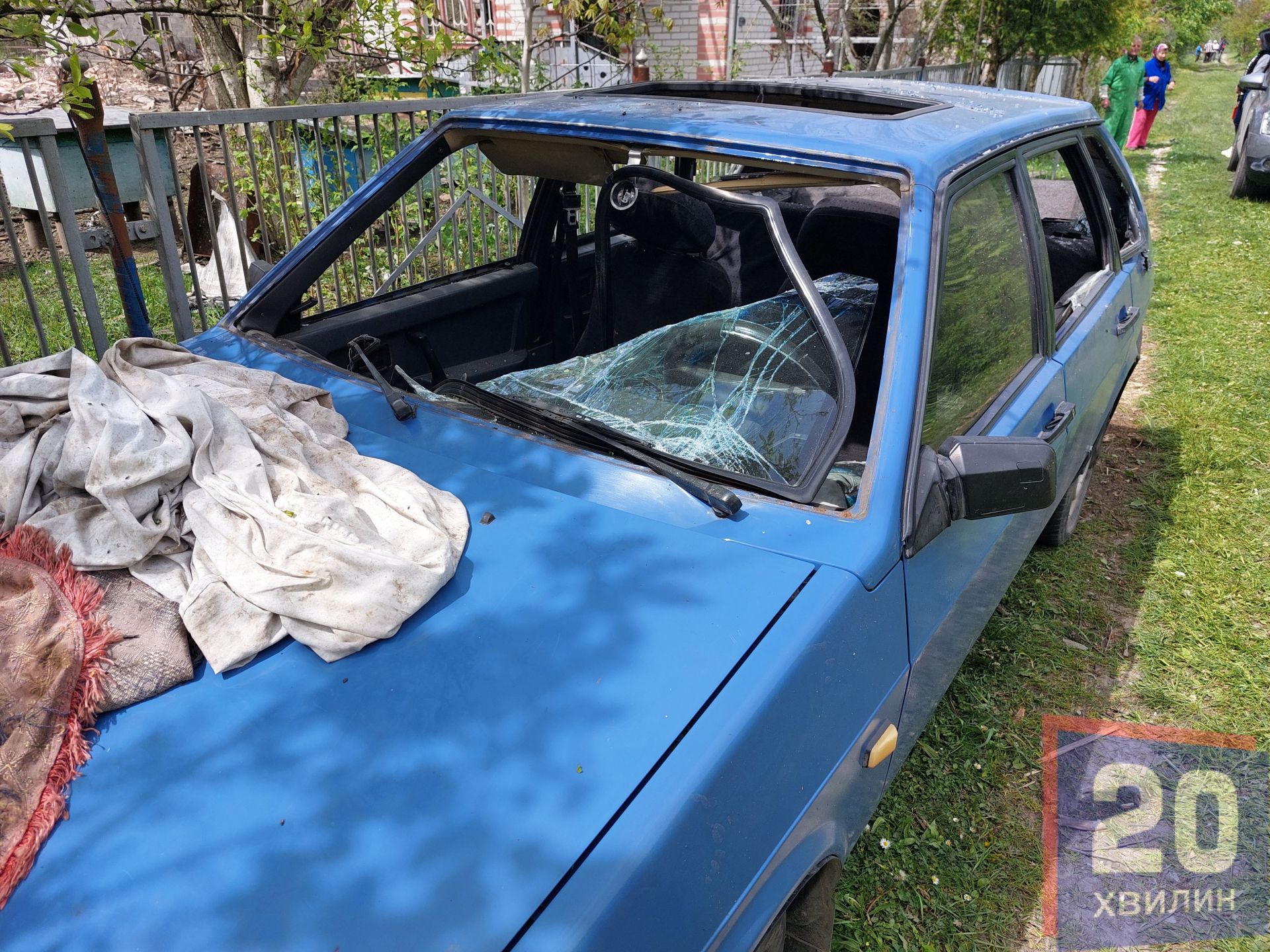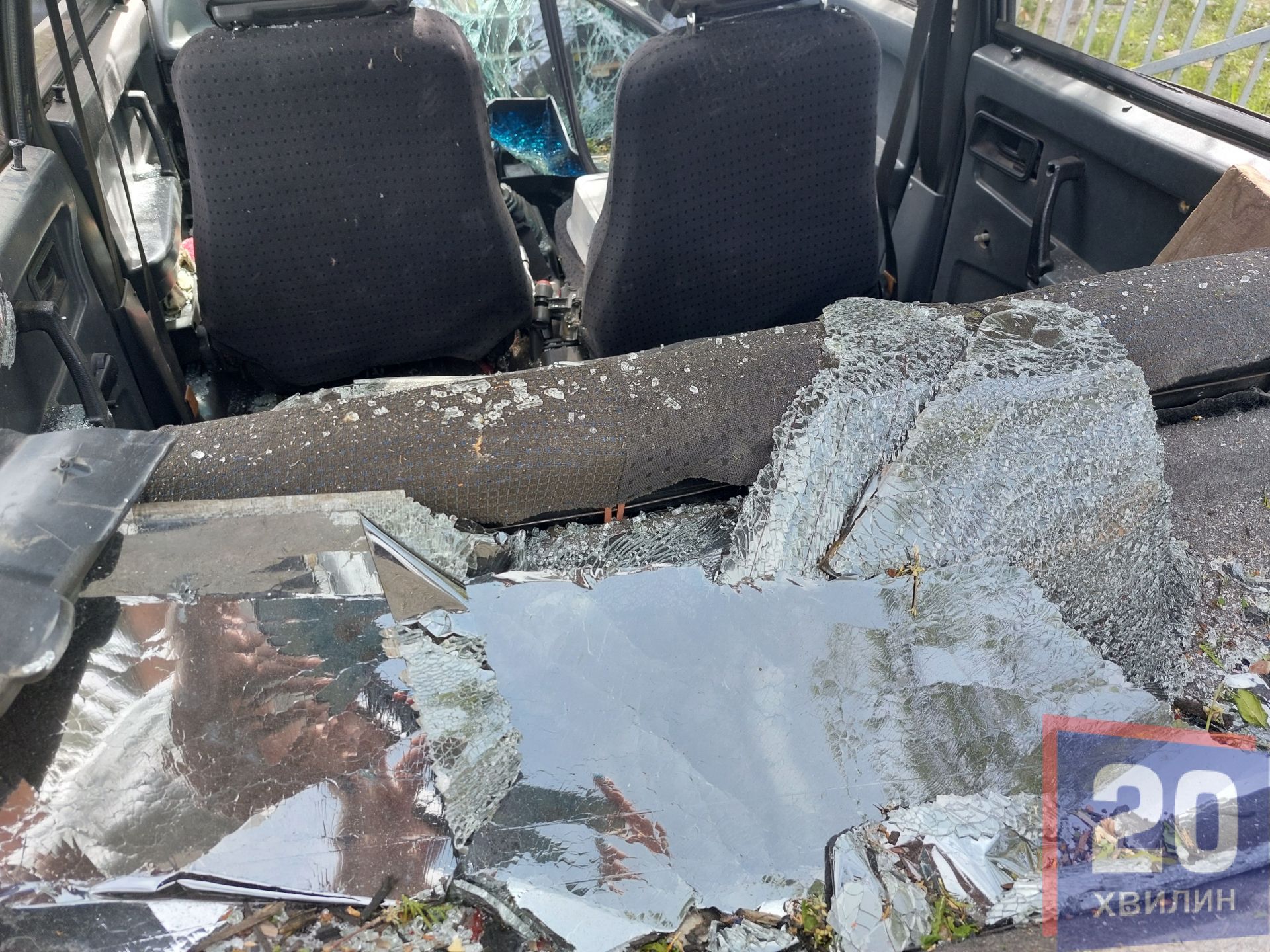 Дорогою, неподалік подвір’я, бачимо автомобіль пана Йосипа. Точніше все, що від нього залишилось. В салоні купа скла та уламків.