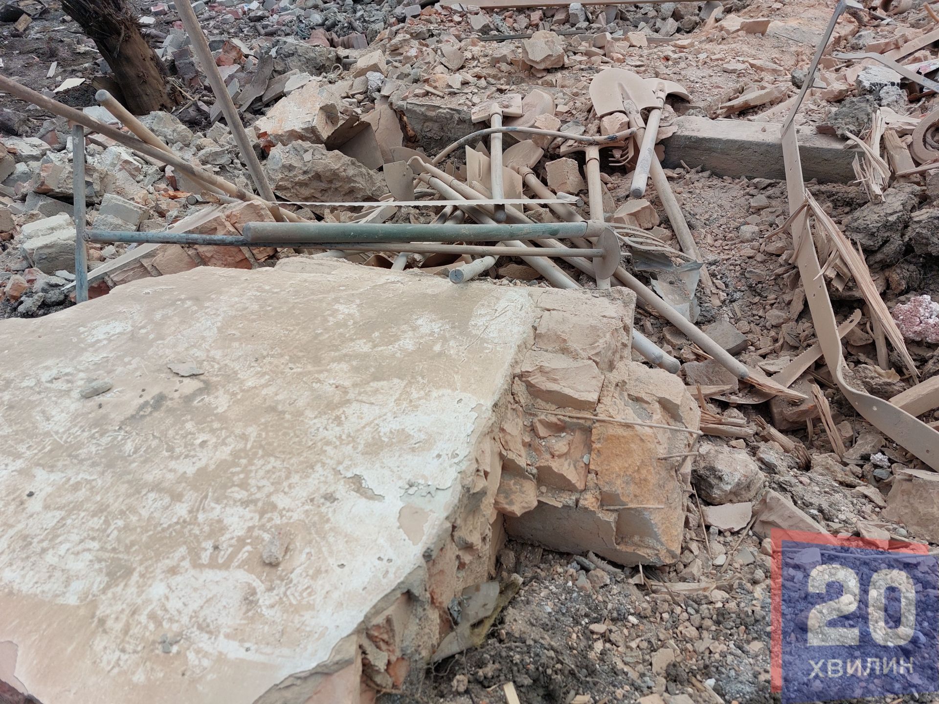 — Оце тут прилетіло, — показує на величезну яму, поки ми намагаємось обійти гори каміння. — А тут сарай був. На другому поверсі теплиця стаціонарна. Все будував сам. Зараз бачите, що лишилось.