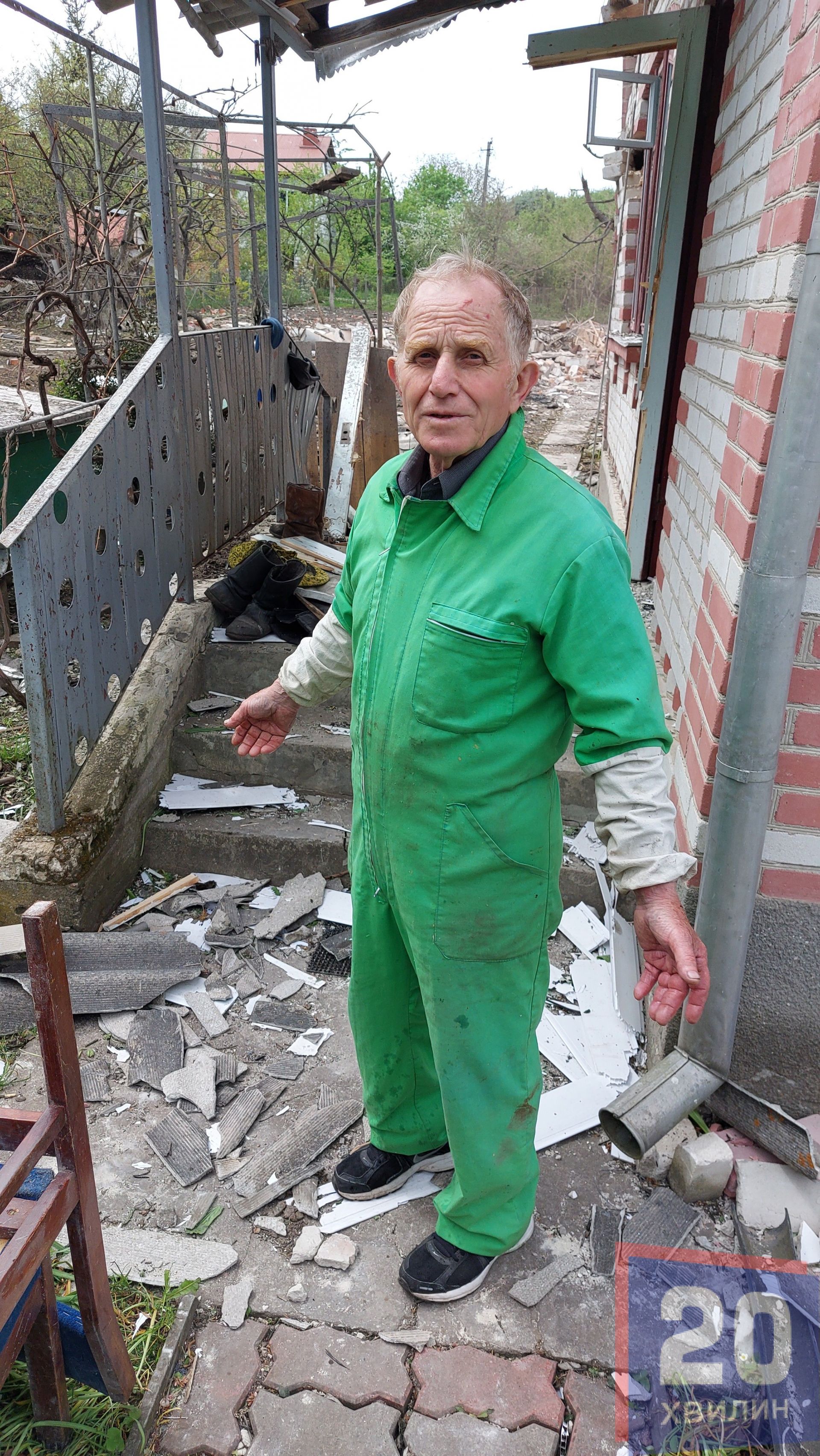 — У 1988 році я тут отримав ділянку, у 90-му побудував хату. Бачите, там мансарда, ще одна кімната, — чоловік показує рукою на другий поверх, там все нагадує кадри фільму жахів. І додає, гірко посміхаючись, — була мансарда. Ми з жінкою ціле літо тут живемо. Жили…