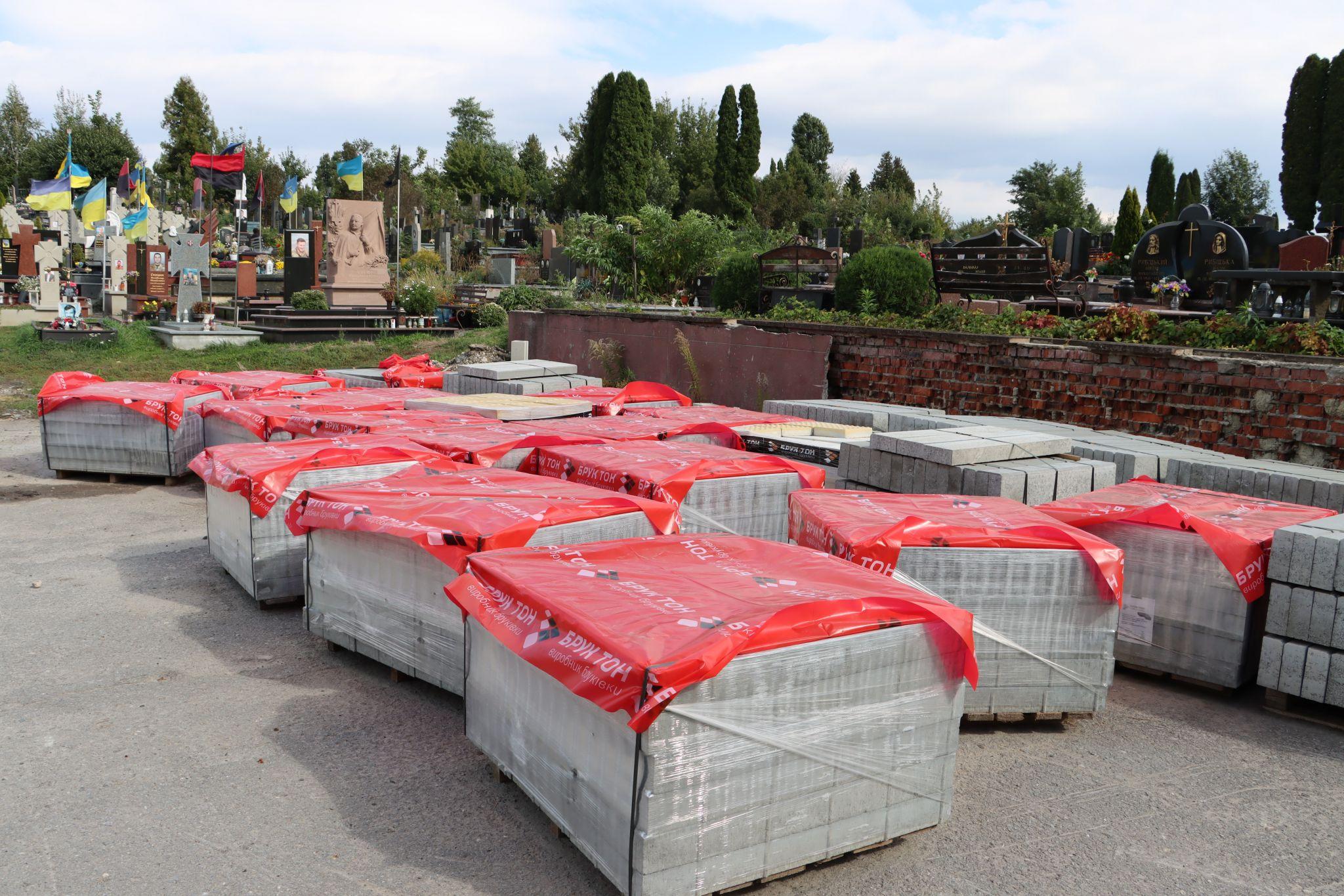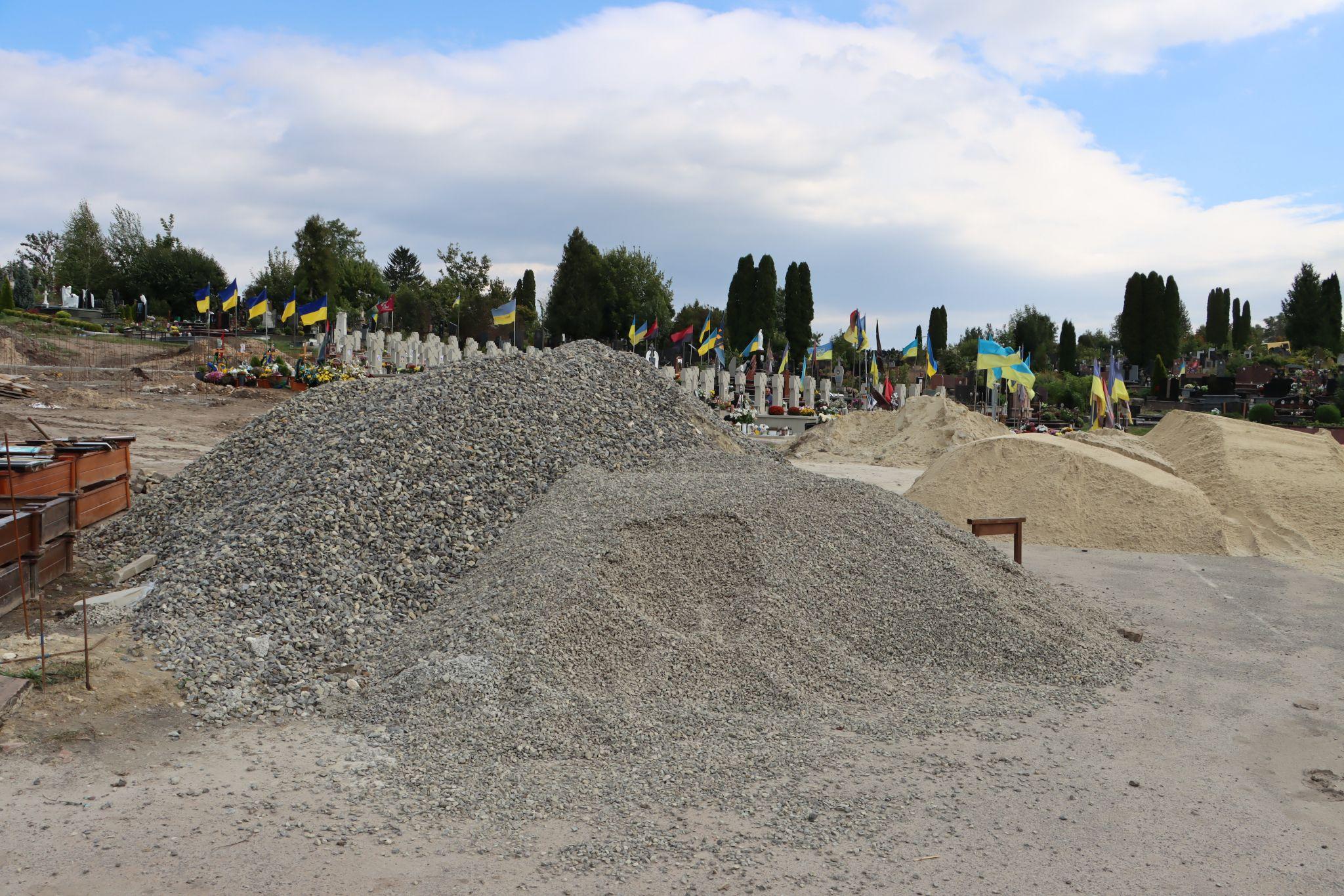 Вже почали заливати фундамент, де має бути стела. Також привезли бруківку, з якою моститимуть доріжки між похованнями.