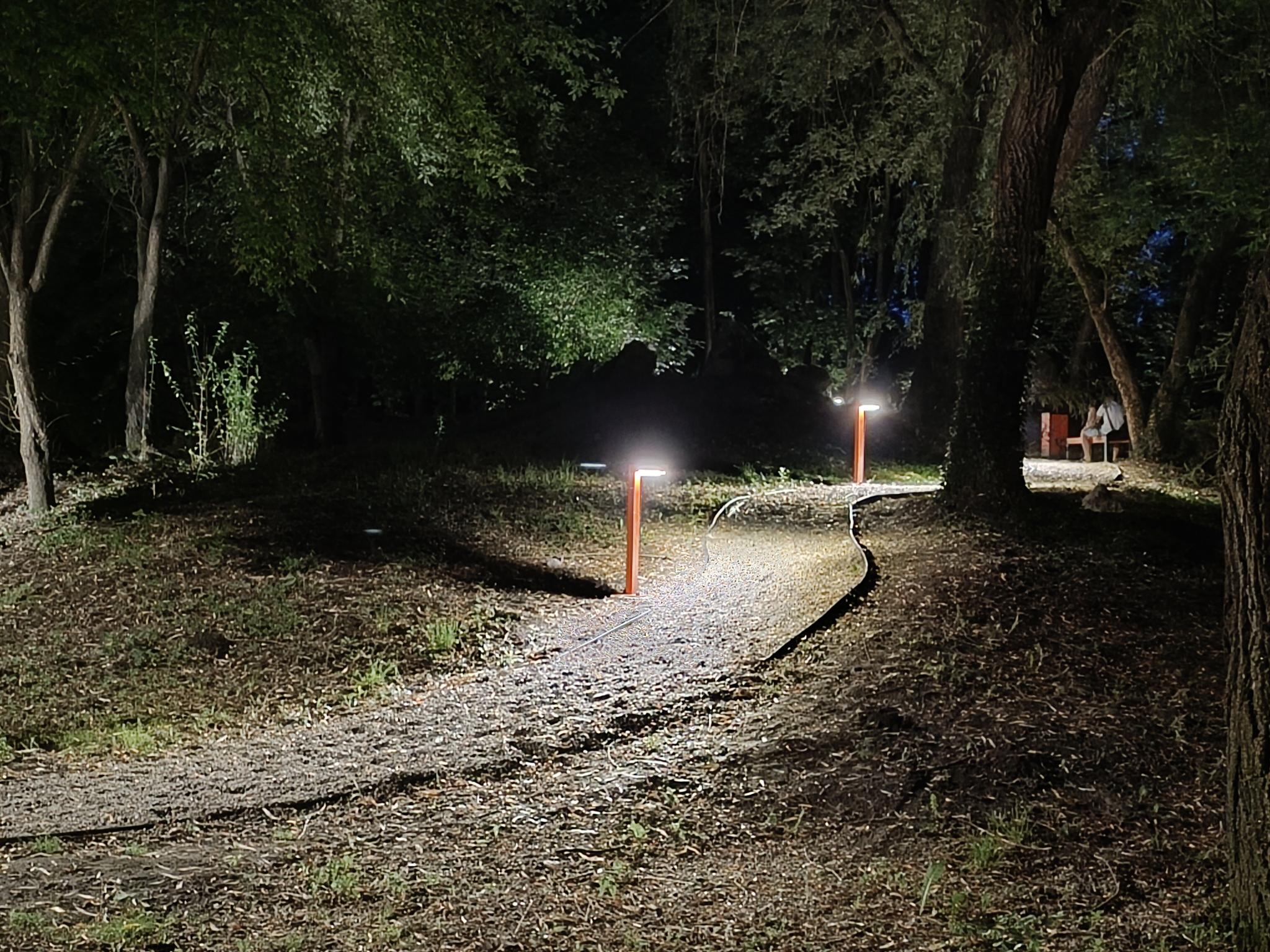 Освітлення з'явилося вздовж стежок та на пагорбах. Це невеликі стовпчики з ліхтариками.