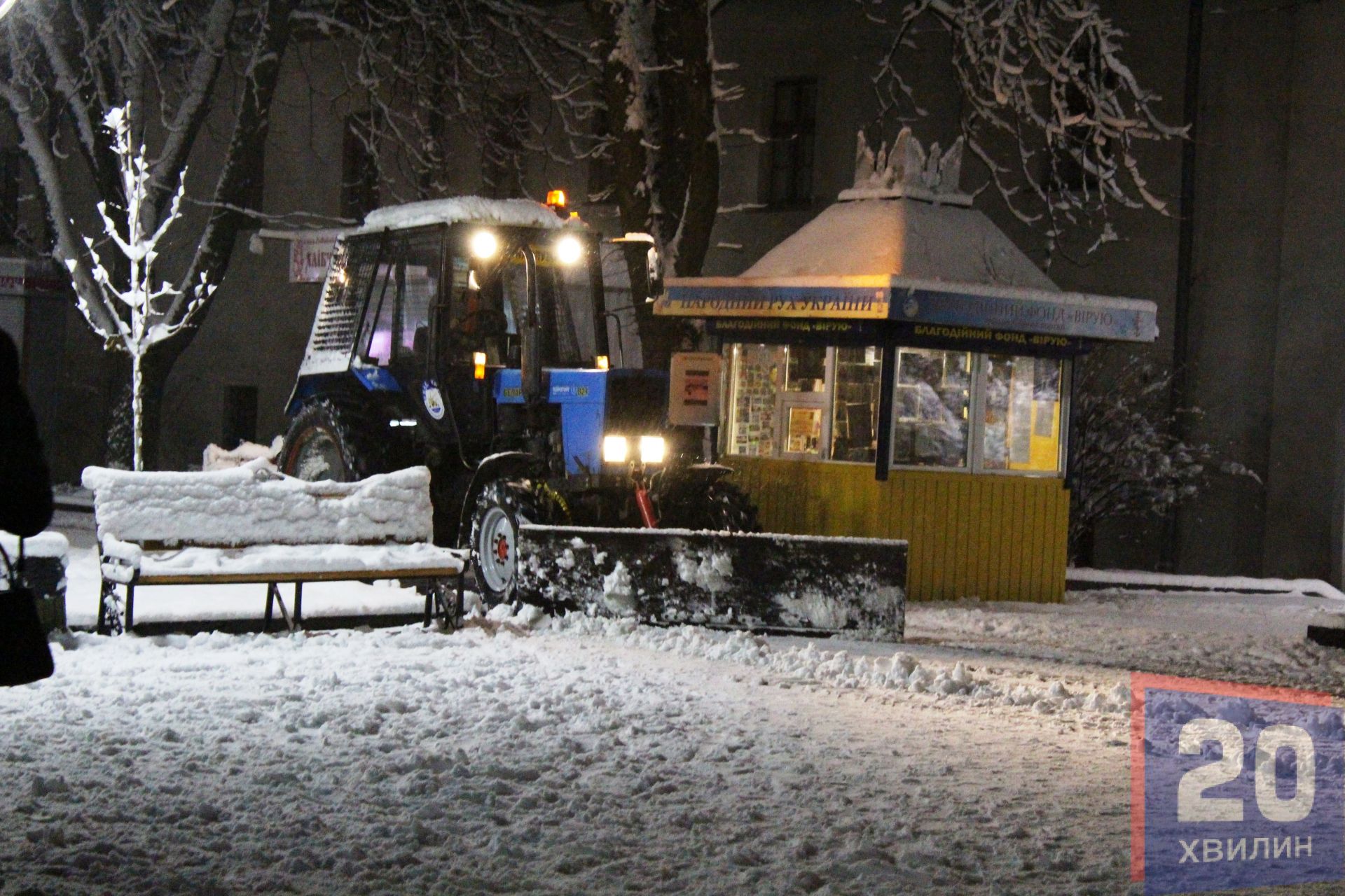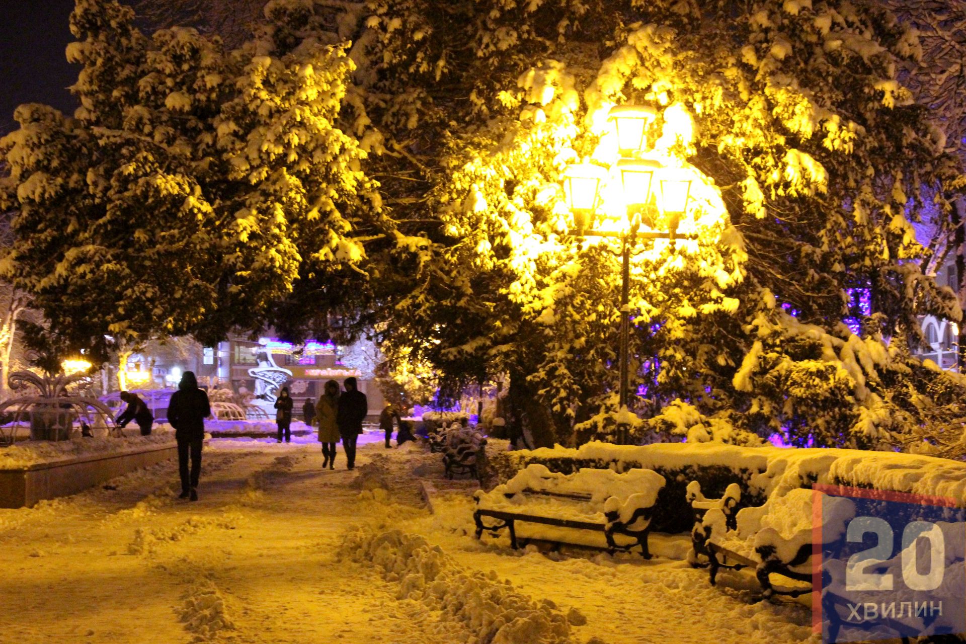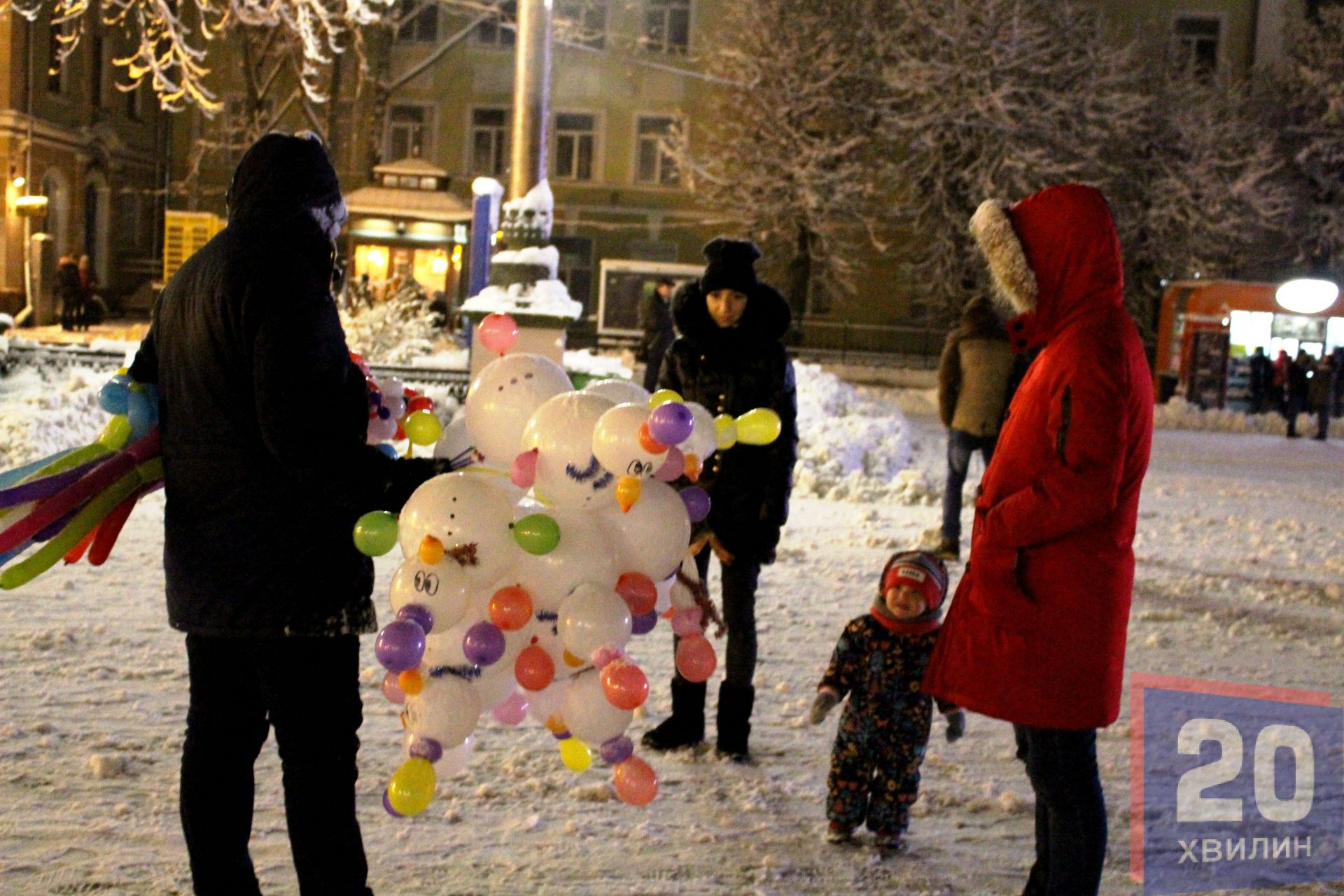 У недільній вечір, 3 грудня, на вулицях міста було багато людей: хтось йшов гуляти, хтось з роботи, техніка розчищала дороги та тротуари. А на Театральній площі уже встановили головну ялинку міста, щоправда вона поки "гола".