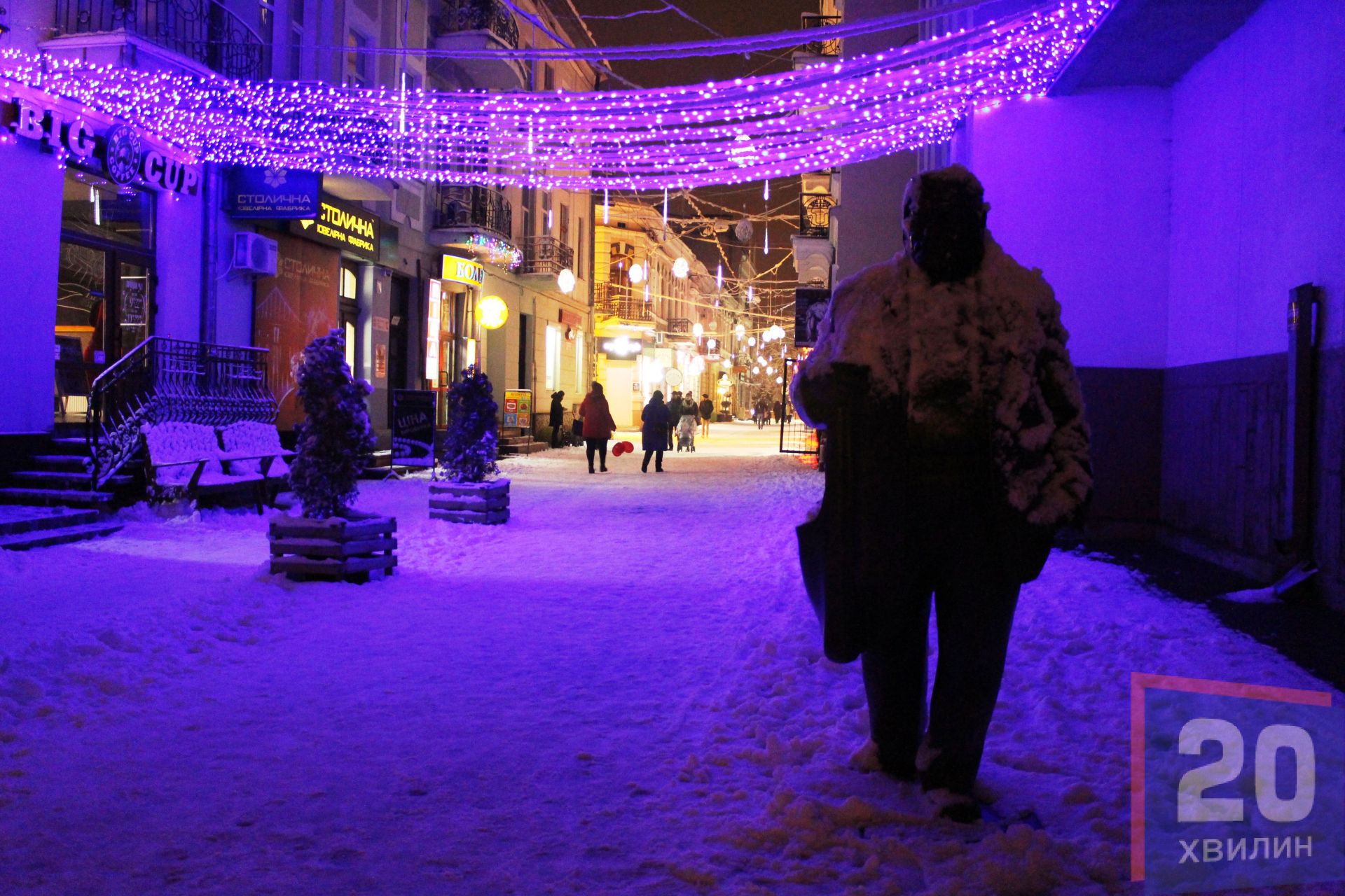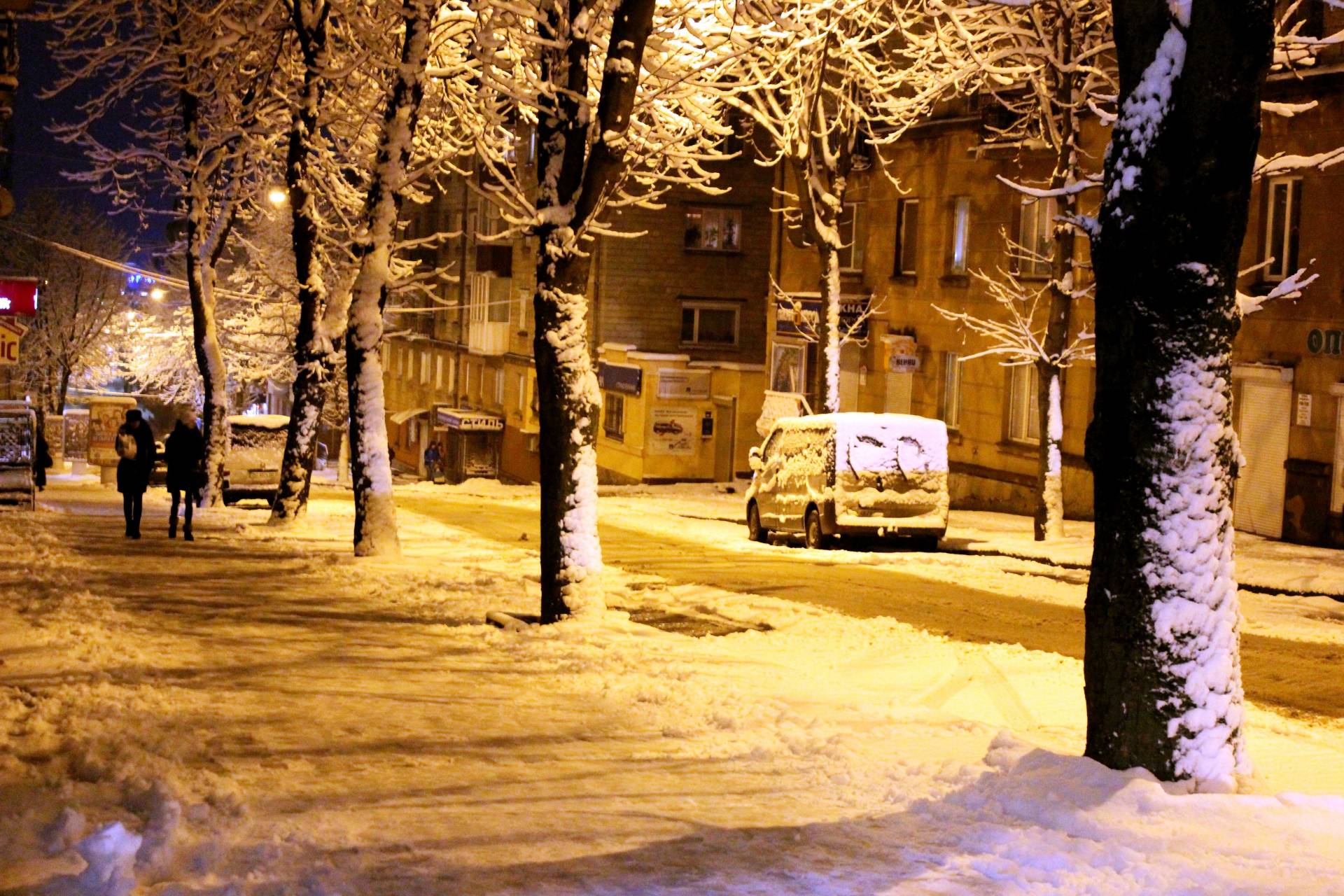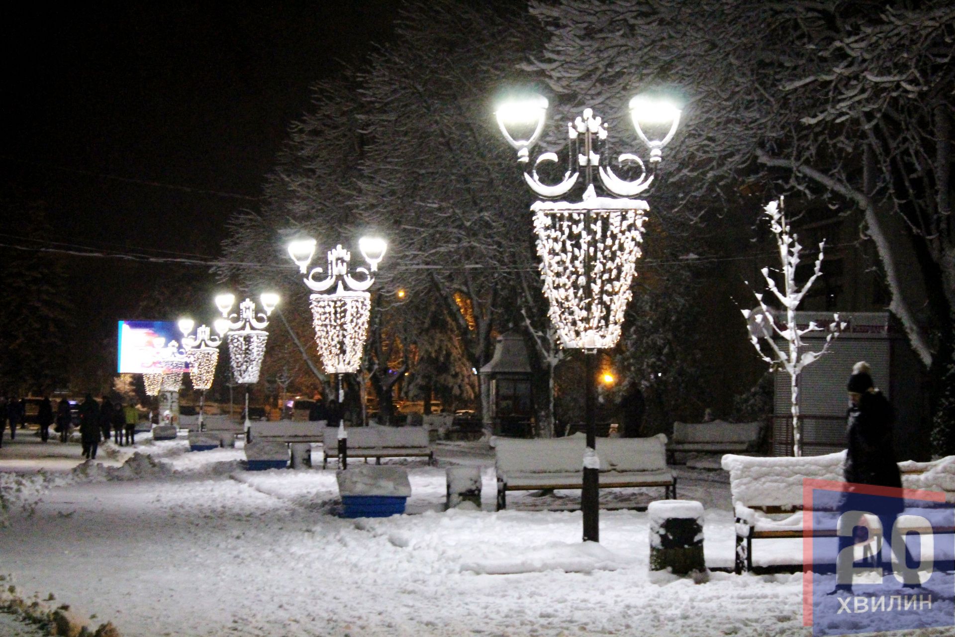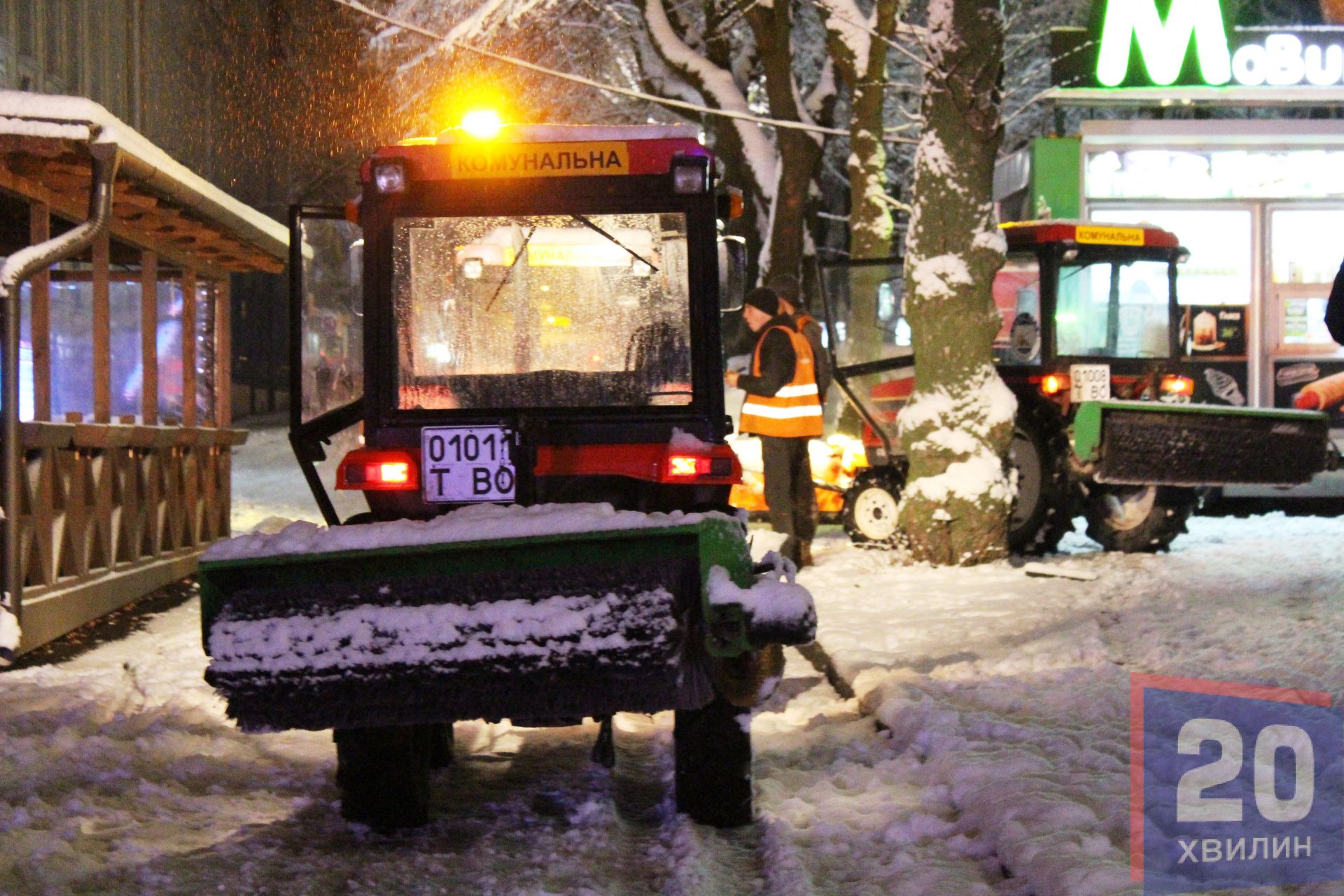 У недільній вечір, 3 грудня, на вулицях міста було багато людей: хтось йшов гуляти, хтось з роботи, техніка розчищала дороги та тротуари. А на Театральній площі уже встановили головну ялинку міста, щоправда вона поки "гола".