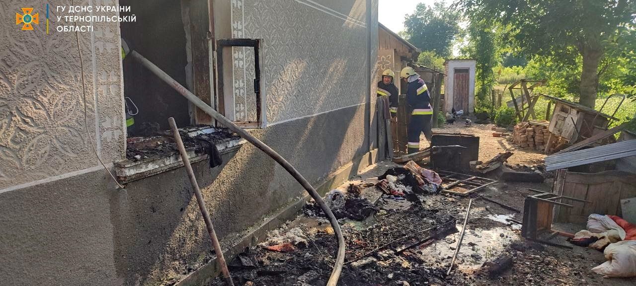 Причина виникнення пожежі та матеріальні збитки встановлюються. Пожежу ліквідовано. Під час гасіння врятовано житлову та господарську будівлі, повідомили в Головному управлінні ДСНС України в Тернопільській області.