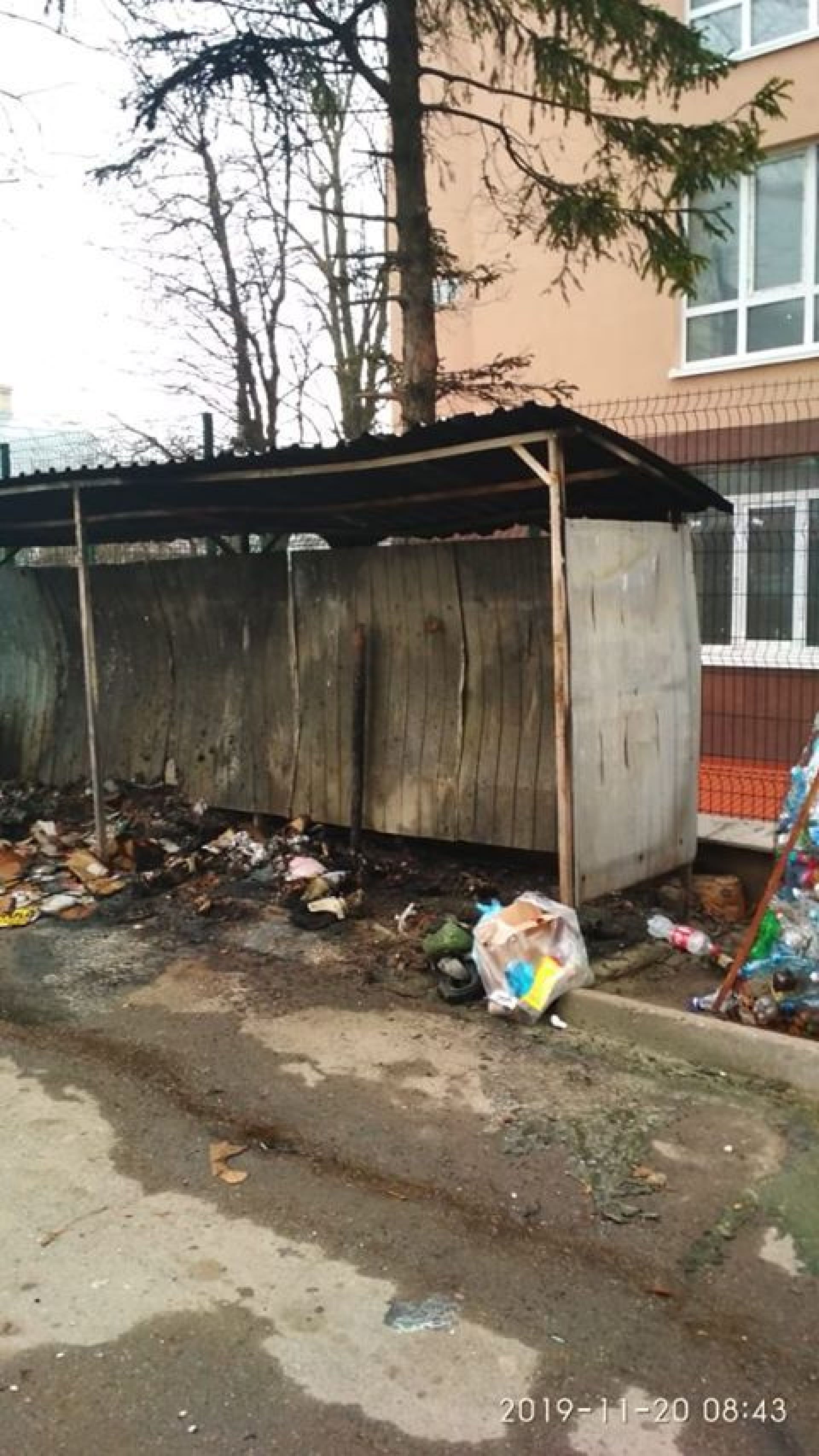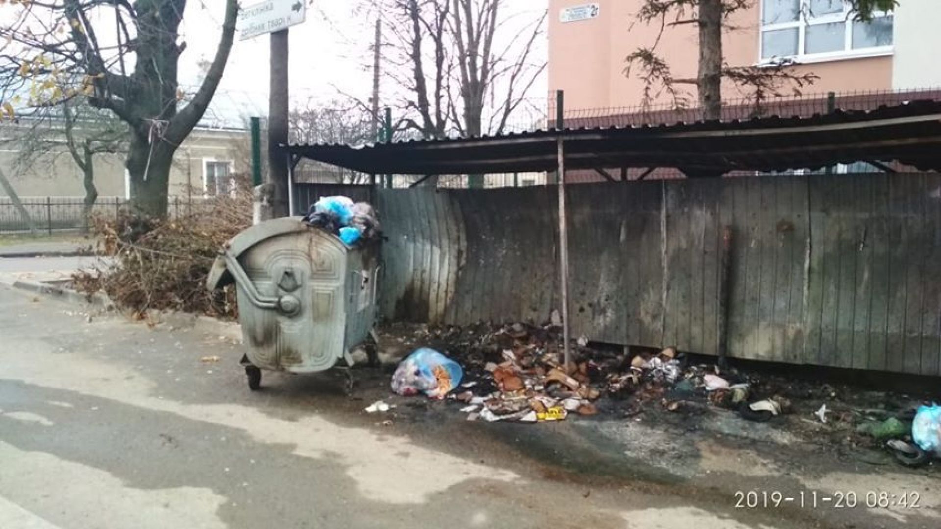 - Вийшов зранку на роботу і побачив таку картину: розкидане сміття, яке не догоріло, а кілька контейнерів зникло, – розповідає тернополянин Володимир. – Підозрюю, що це була пожежа так як ввечері було чути сирени. Є чіткі сліди горілого і води.