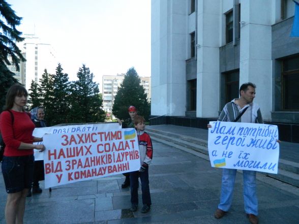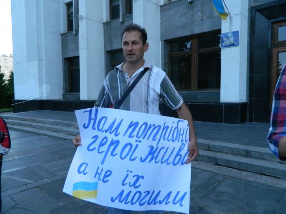 До слова, до мітингувальників часу від часу підходили тернополяни і розпитували про події в Слов'янську. А також до них приєдналася бабуся і дівчина у формі Правого сектору - відома волонтер Майдану Ліза Шапошник. Вони взяли в руки плакати. Також з Михайлом спілкувалися і депутати облради, згодом чоловікові дали слово на сесії.