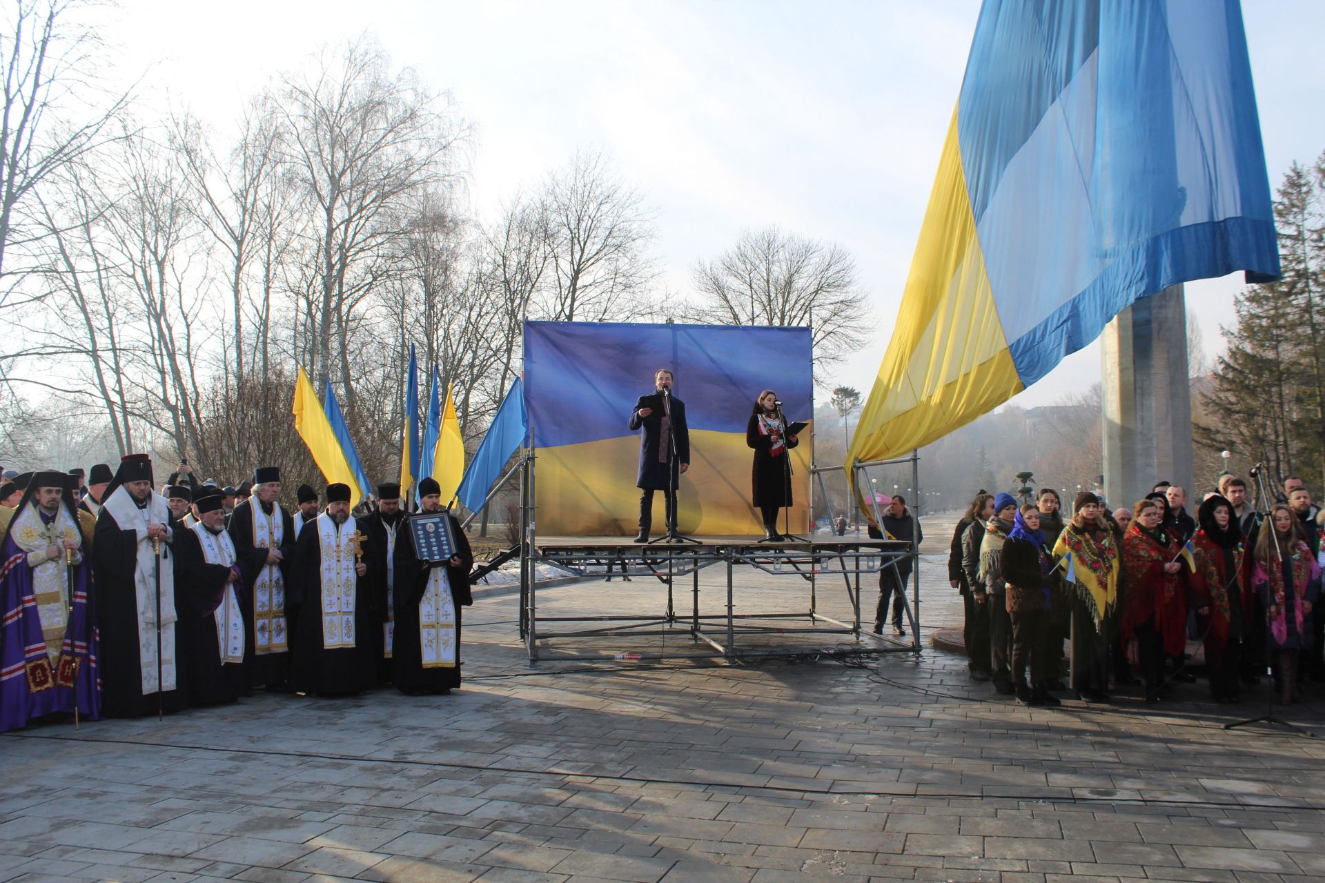 - Дійство проходило на центральній алеї парку «Топільче», біля найбільшого на Тернопільщині синьо-жовтого стягу.