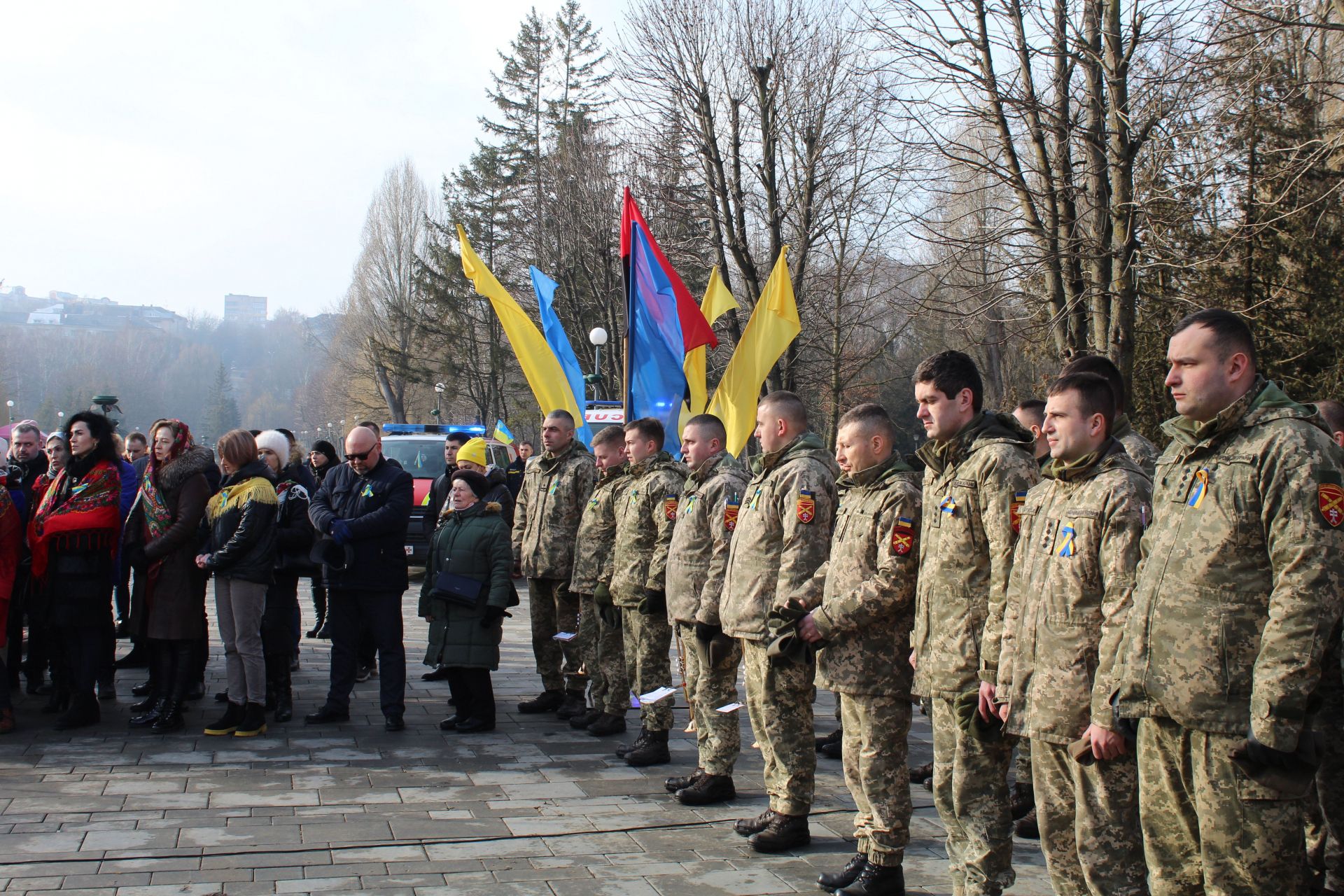 Попри прохолодний ранок, на центральній алеї парку тернополян зібралося чимало: міська влада, журналісти, представники різних держструктур та організацій, активісти, небайдужі містяни.