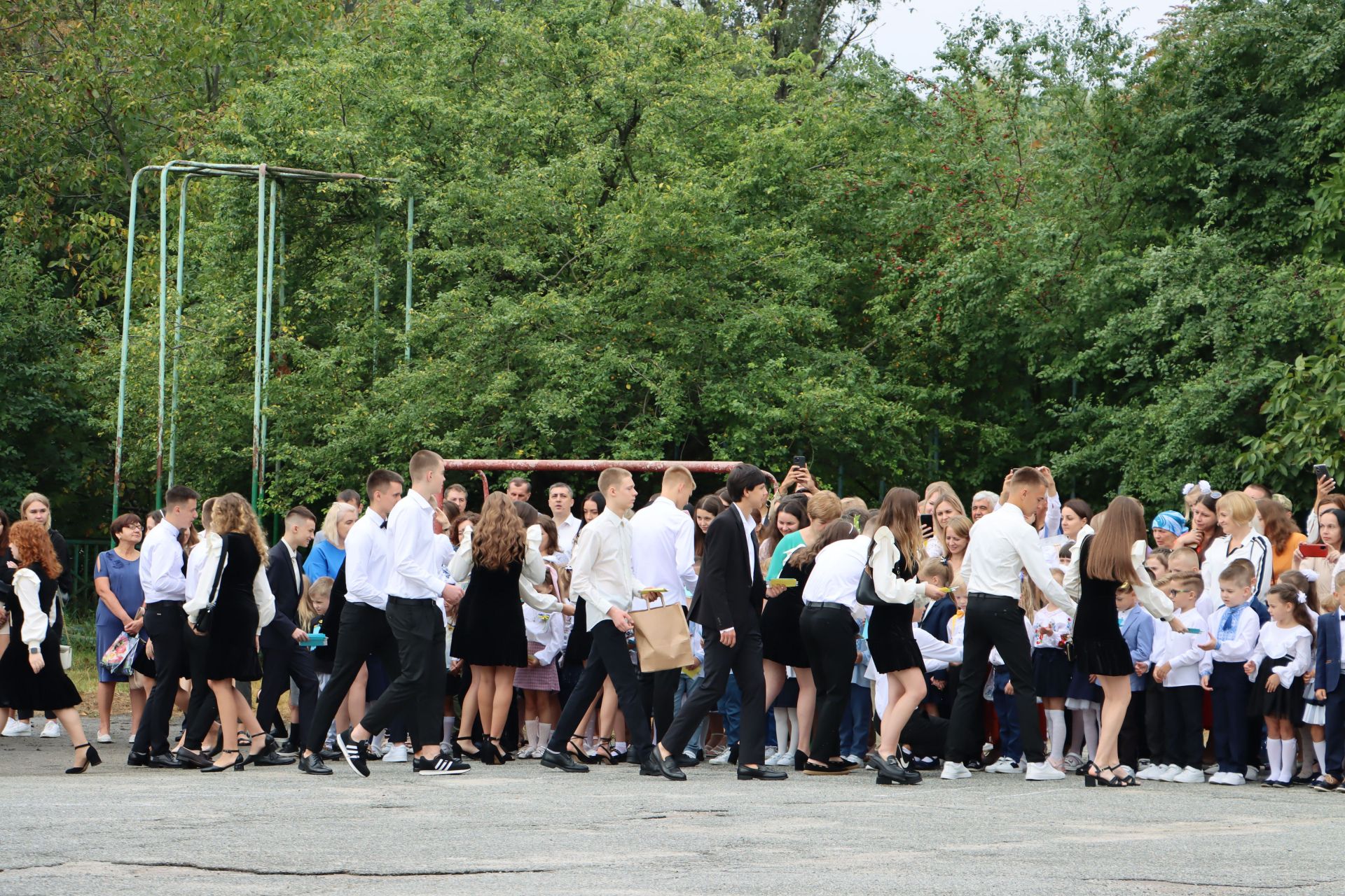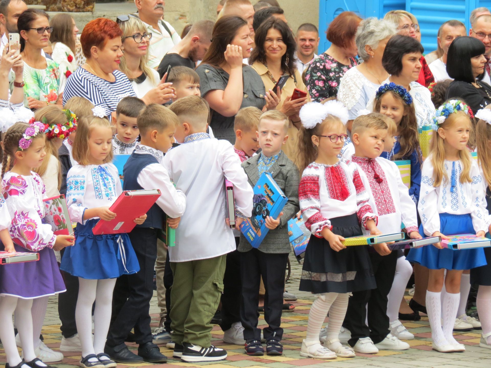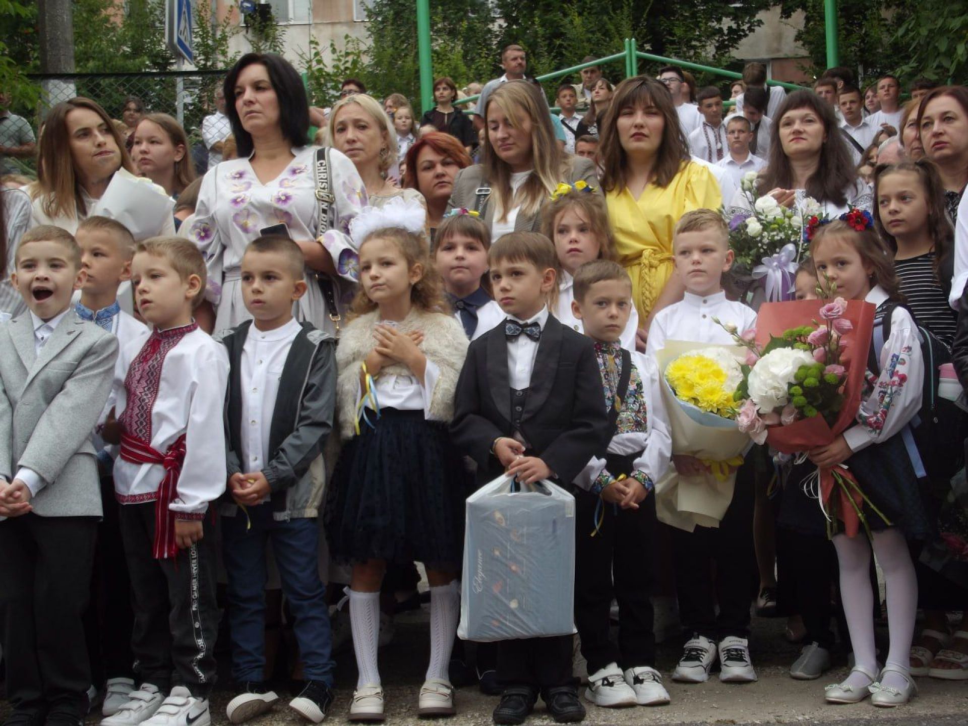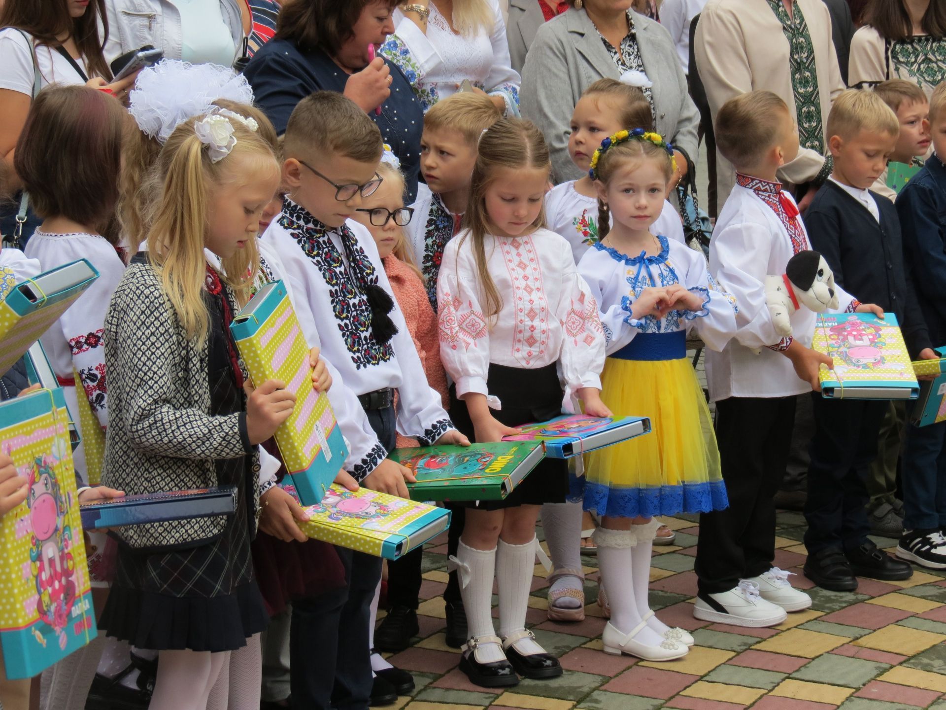 На подвір'ї школи зібрались першокласники, майбутні випускники та батьки. Маленьких школяриків привітали з початком навчального року та вручили подарунки для навчання.
