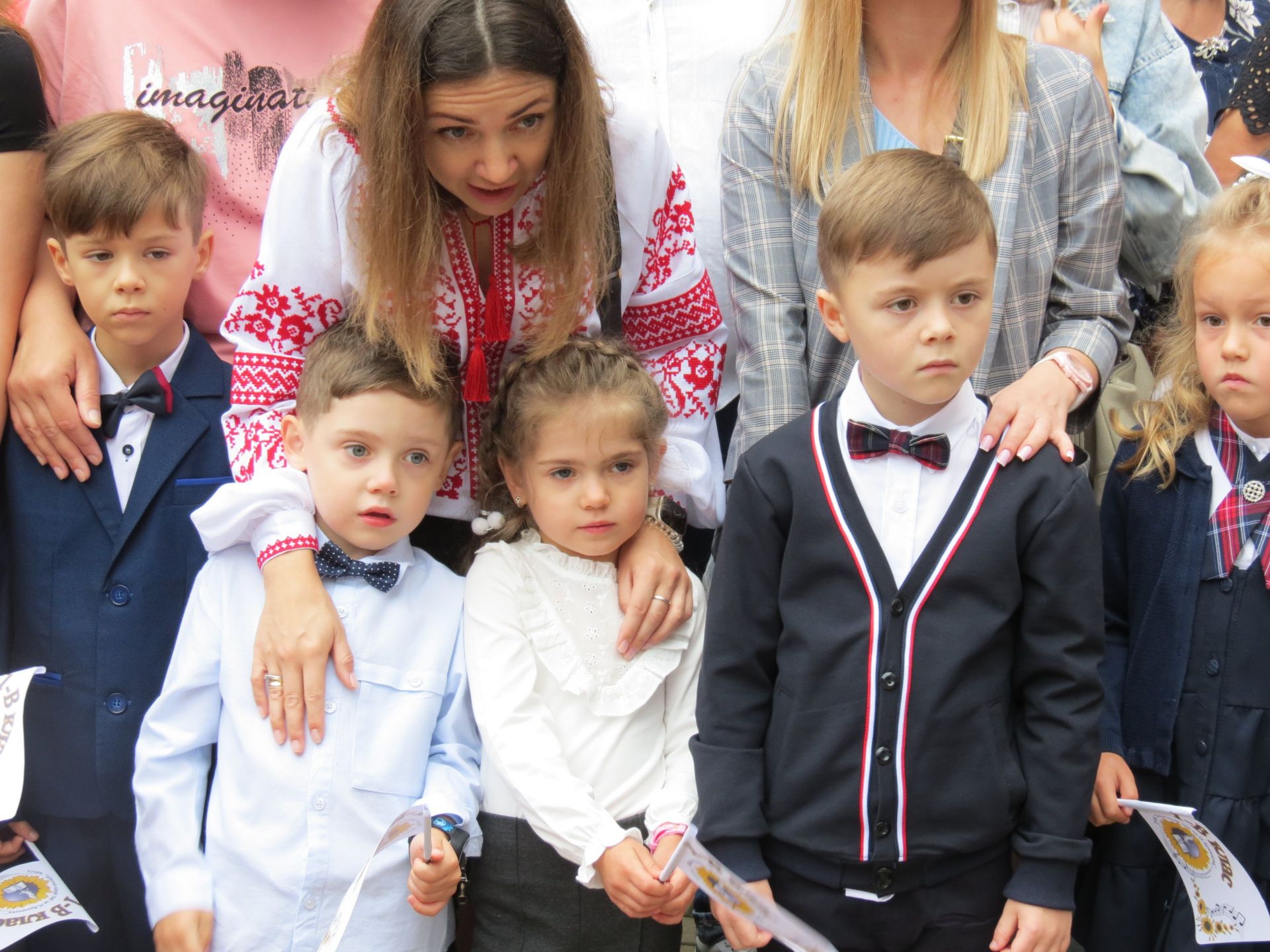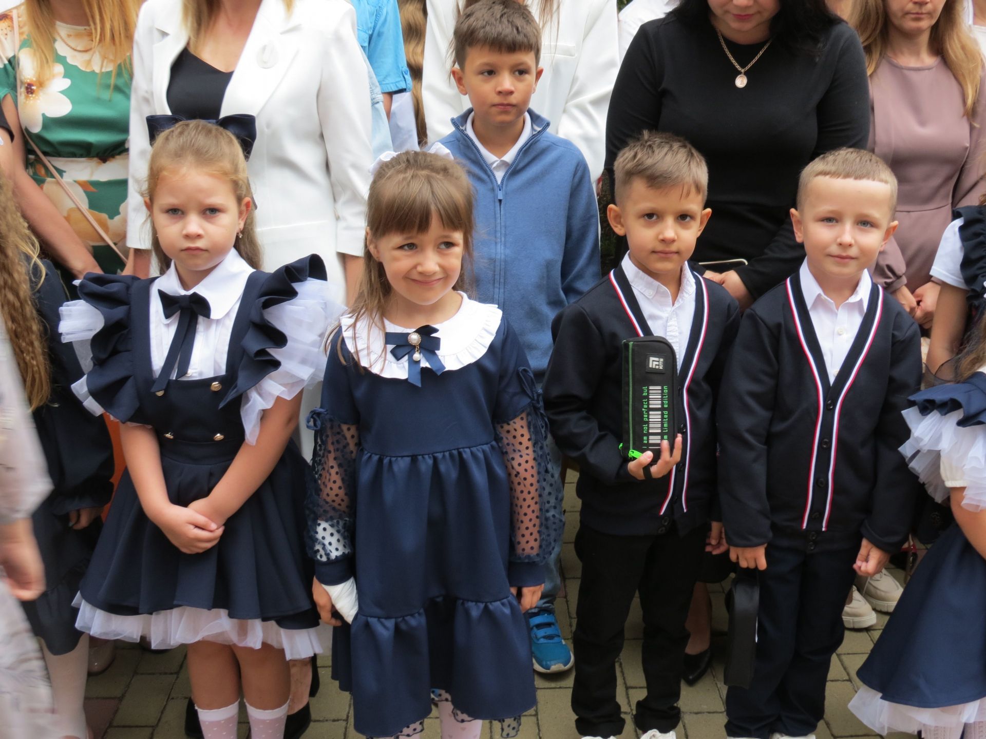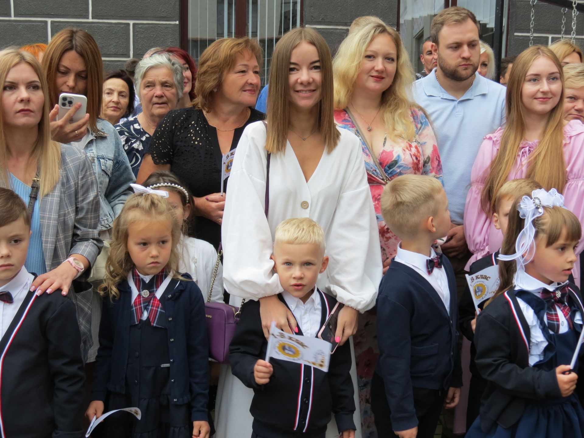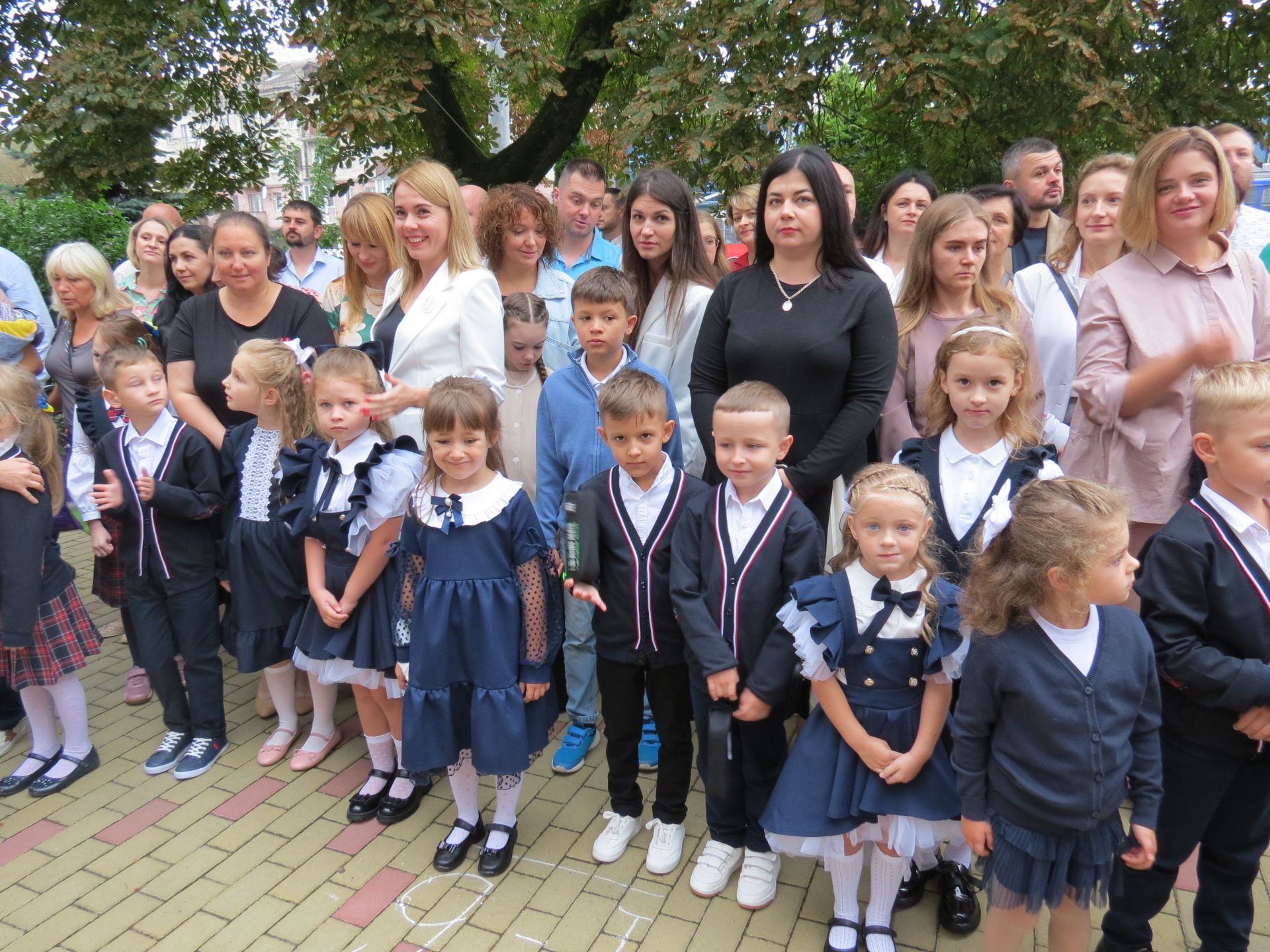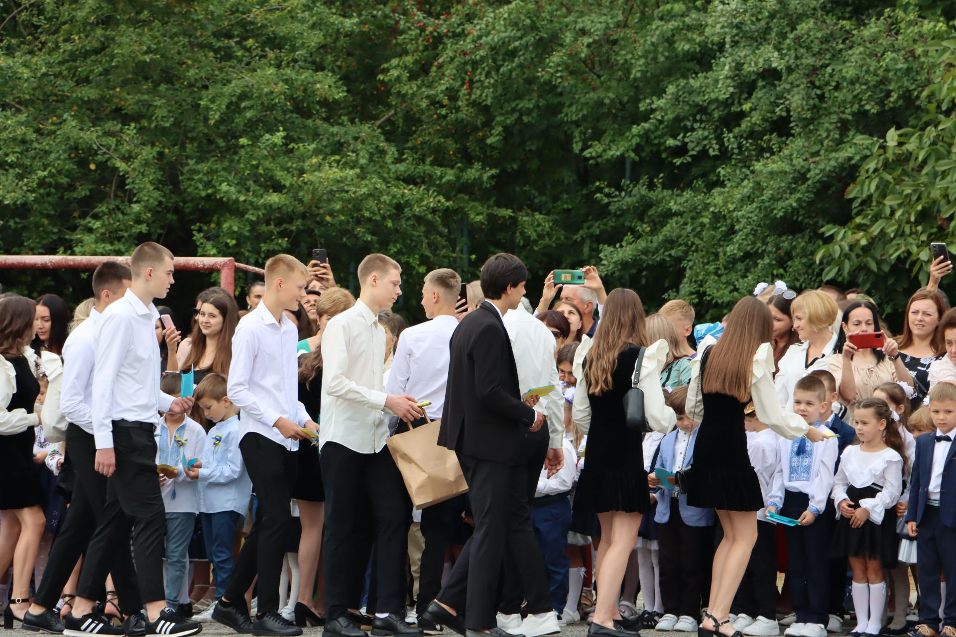 На подвір'ї школи зібрались першокласники, майбутні випускники та батьки. Маленьких школяриків привітали з початком навчального року та вручили подарунки для навчання.