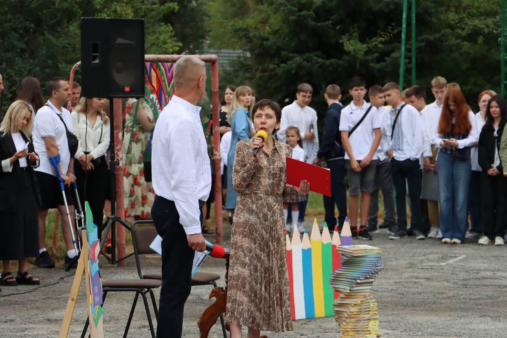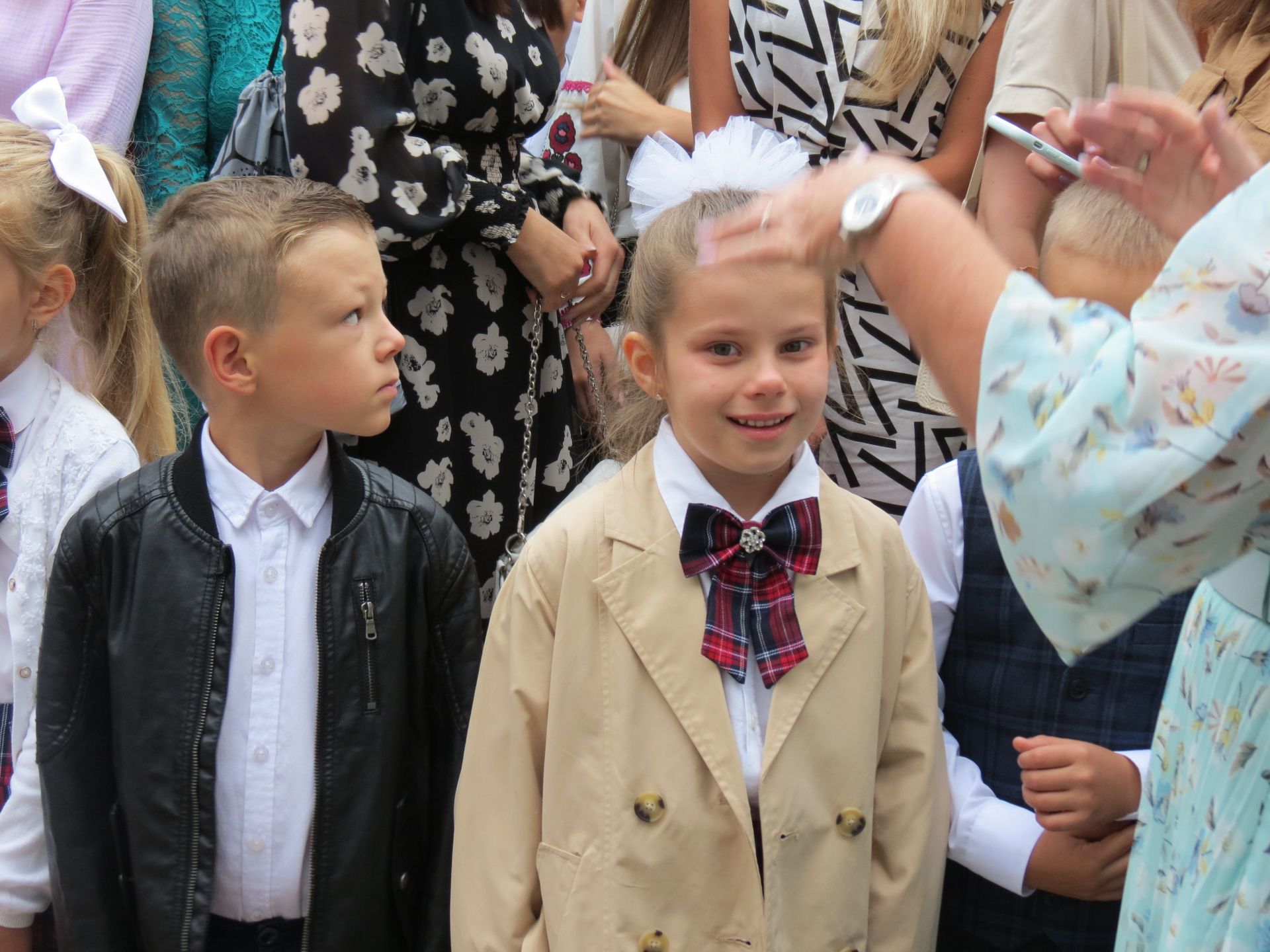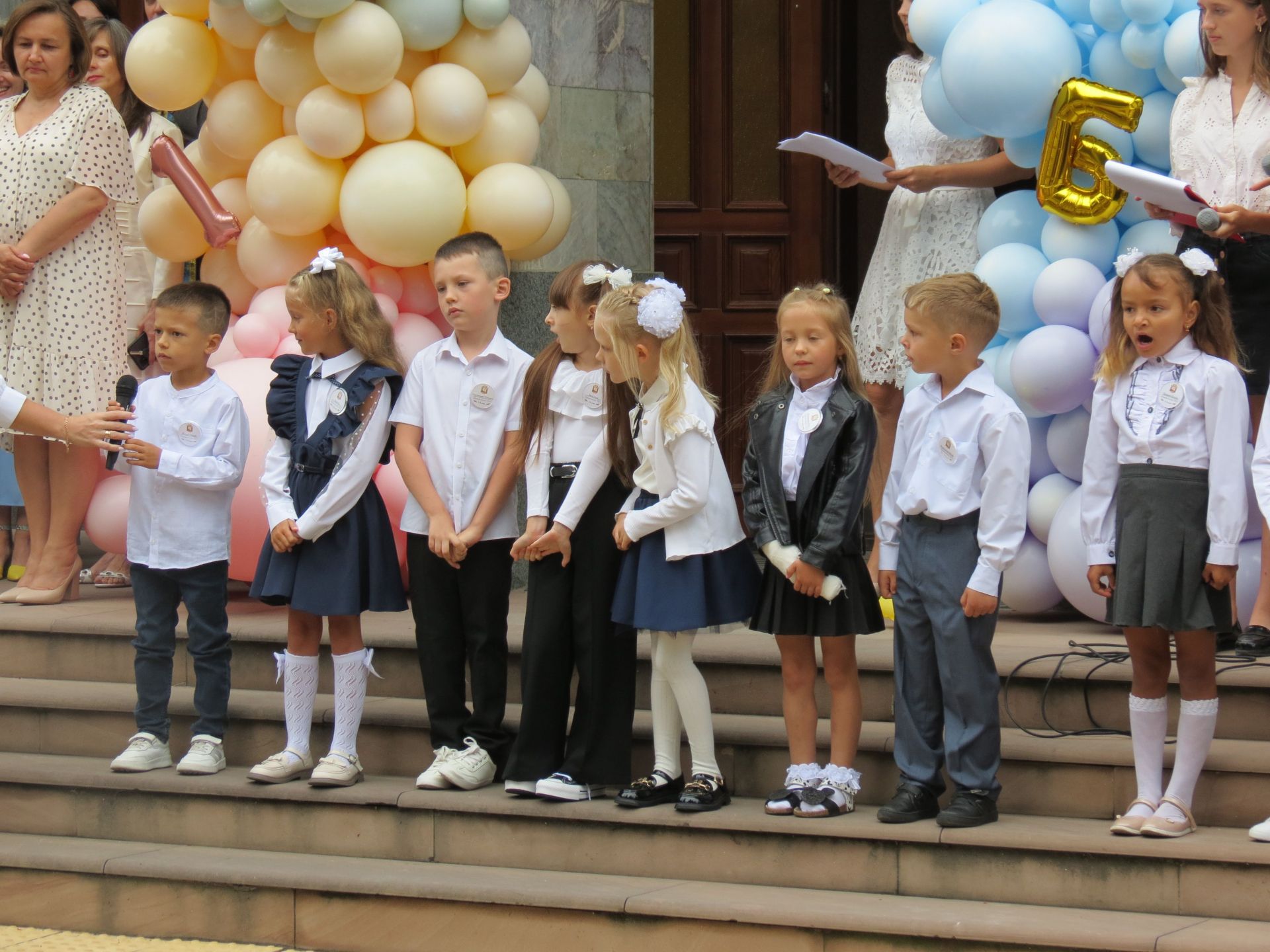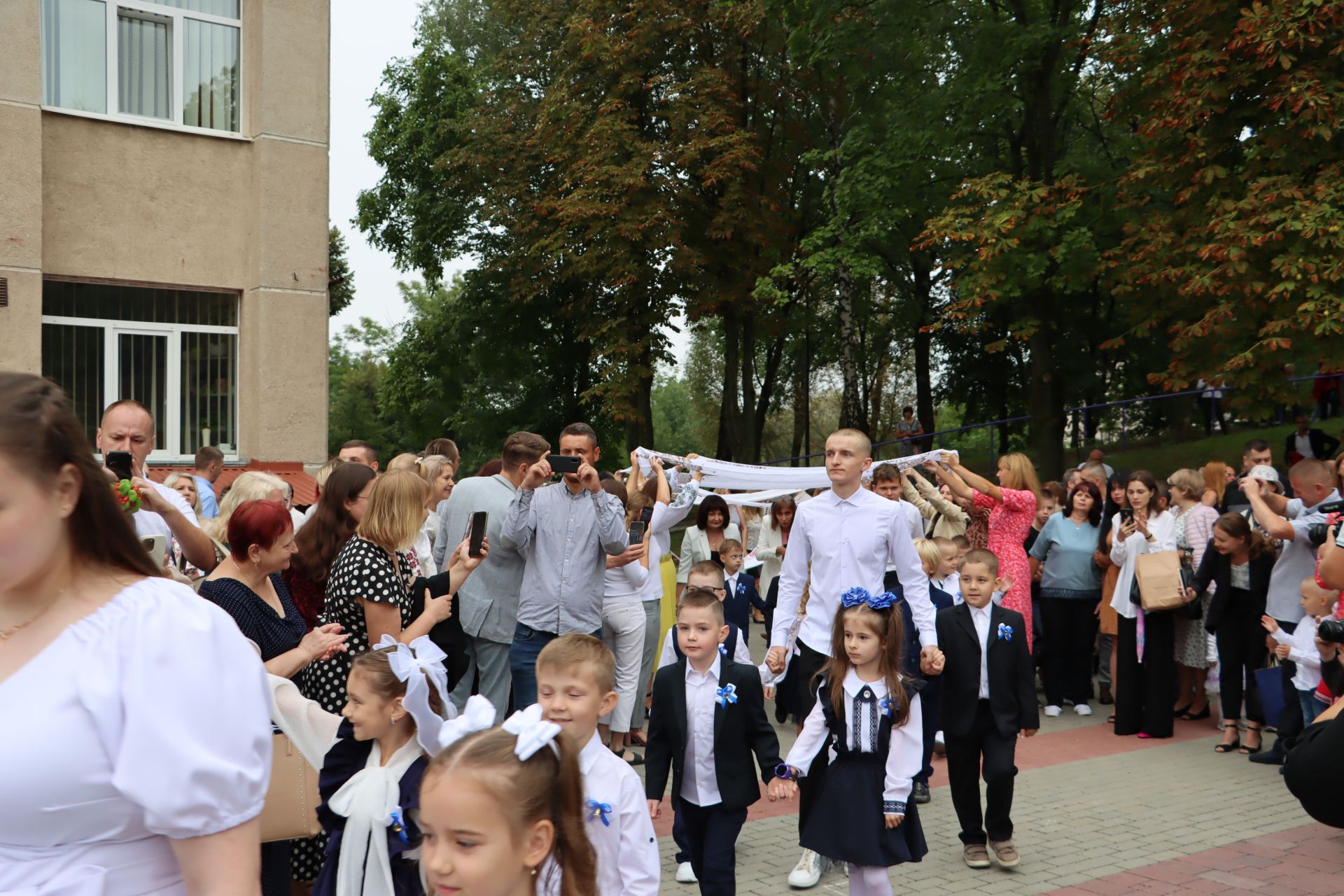 На подвір'ї школи зібрались першокласники, майбутні випускники та батьки. Маленьких школяриків привітали з початком навчального року та вручили подарунки для навчання.