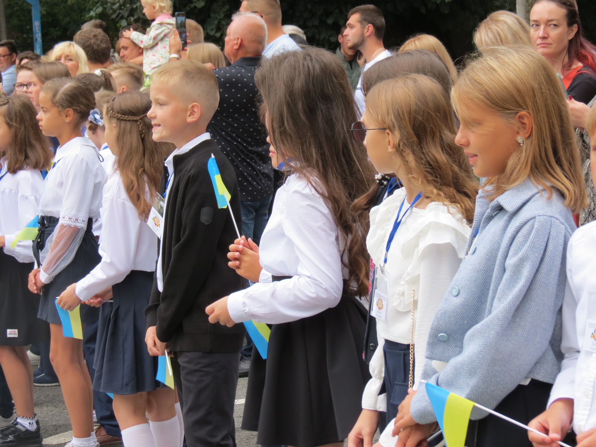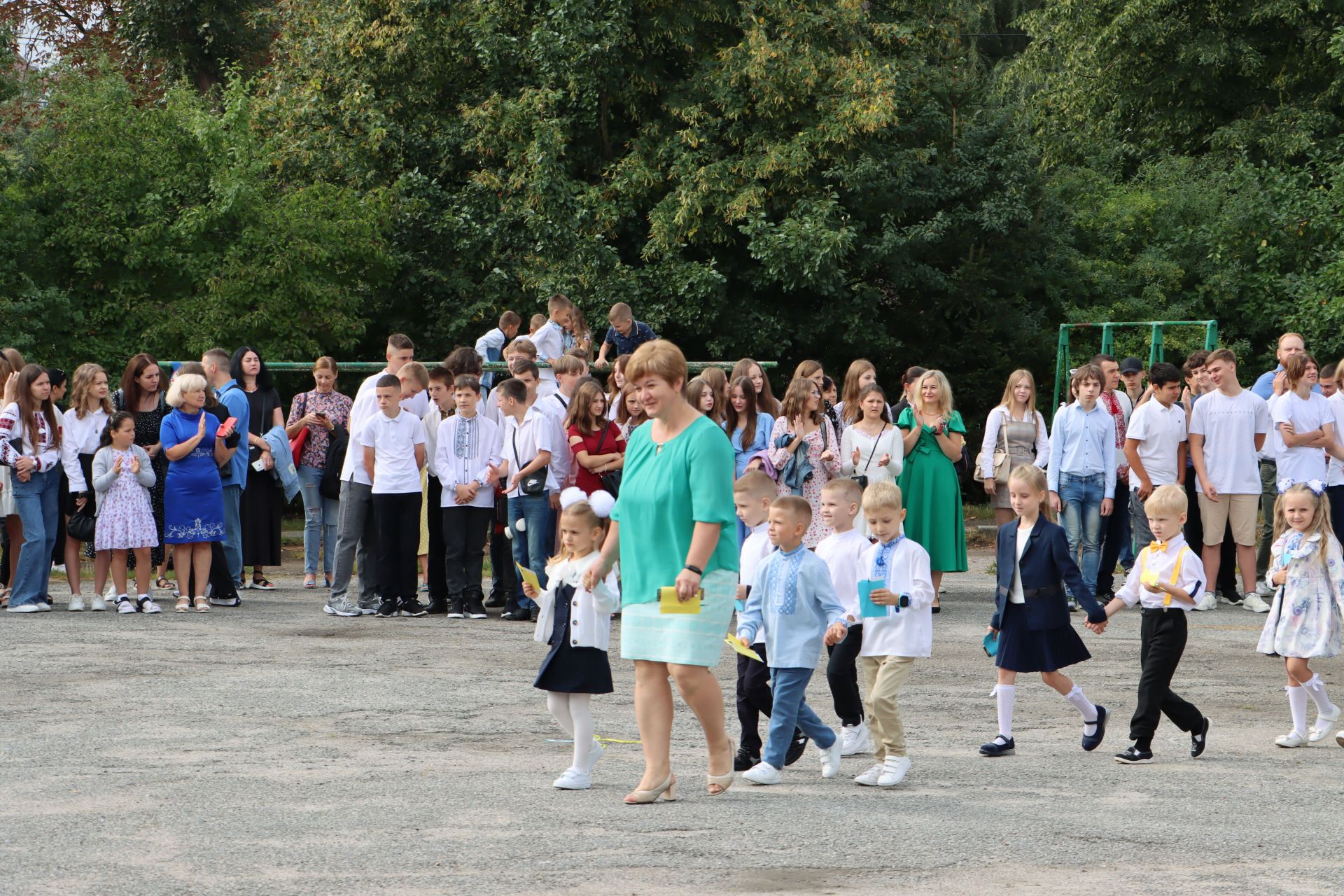 Першачків тут урочисто зустрічали 31 липня. А от 1 вересня на уроки прийшли всі решта класів. О 8.15 директорка закладу Катерина Поліщук привітала всіх із початком нового навчального року та побажала перемоги та миру в нашій країні.