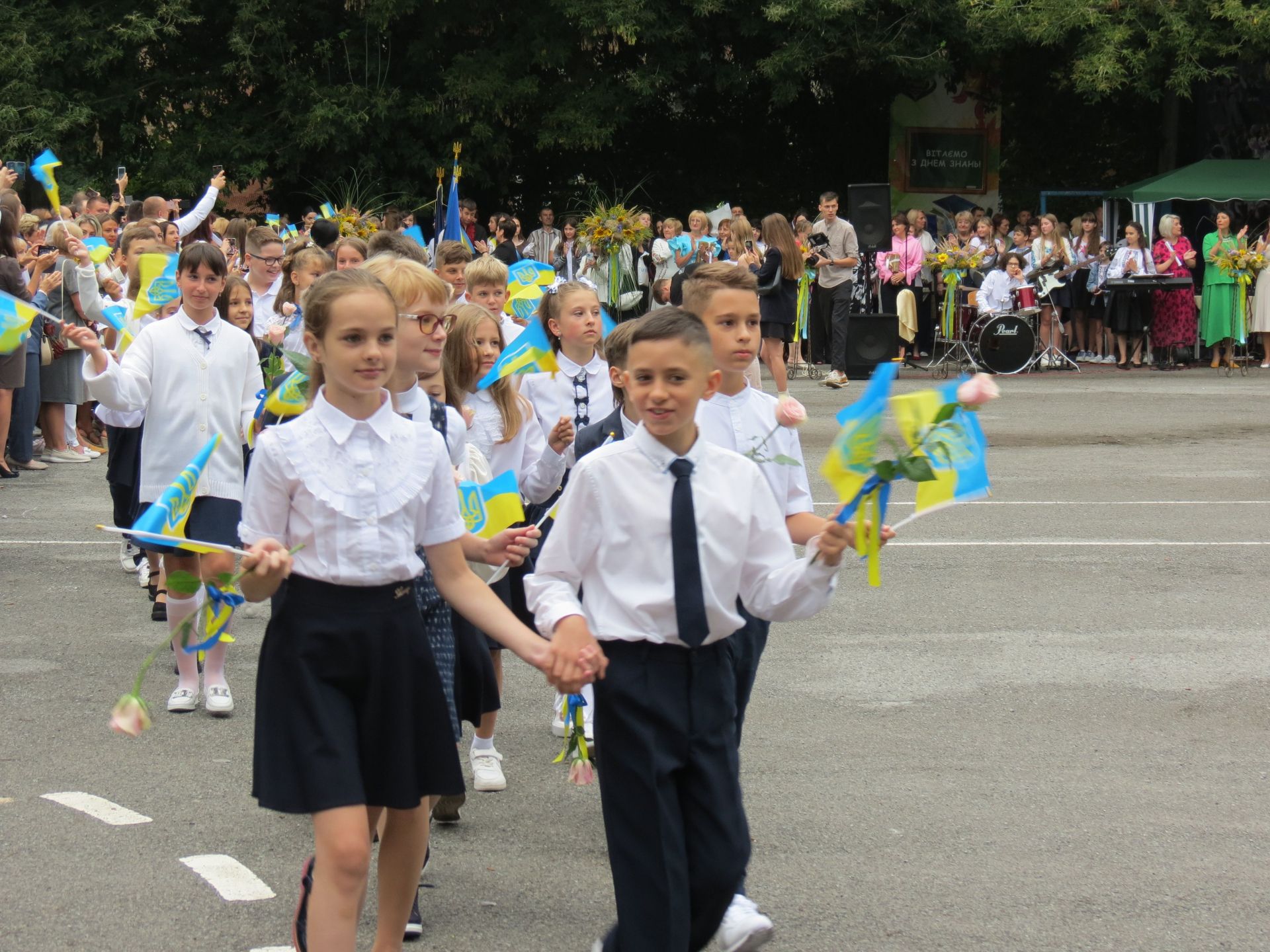 У школі лінійку провели для першокласників та випускників. Традиційно діти підготували виступи, вітали вчителів, а також дякували ЗСУ за можливість вчитися. Дітей благословив на успішне навчання священник.