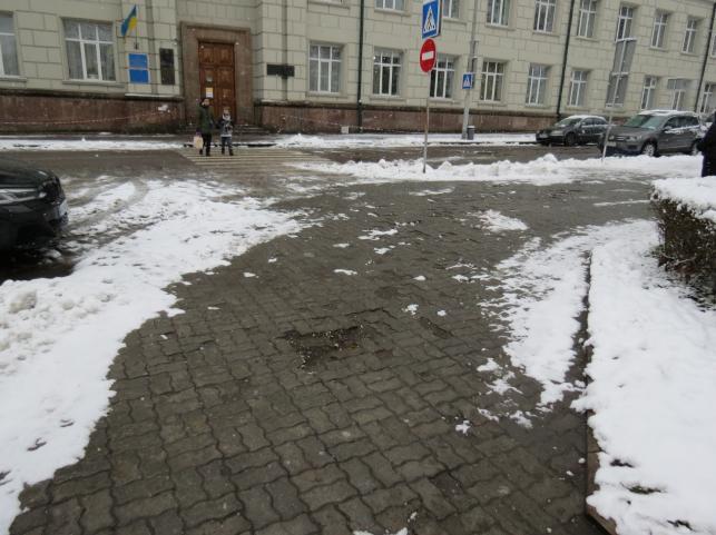 В окремих місцях ще залишається перепад висоти на переходах – біля корпусу медичного університету та біля переходу на Замковій вулиці. Подекуди бруківка в поганому стані.