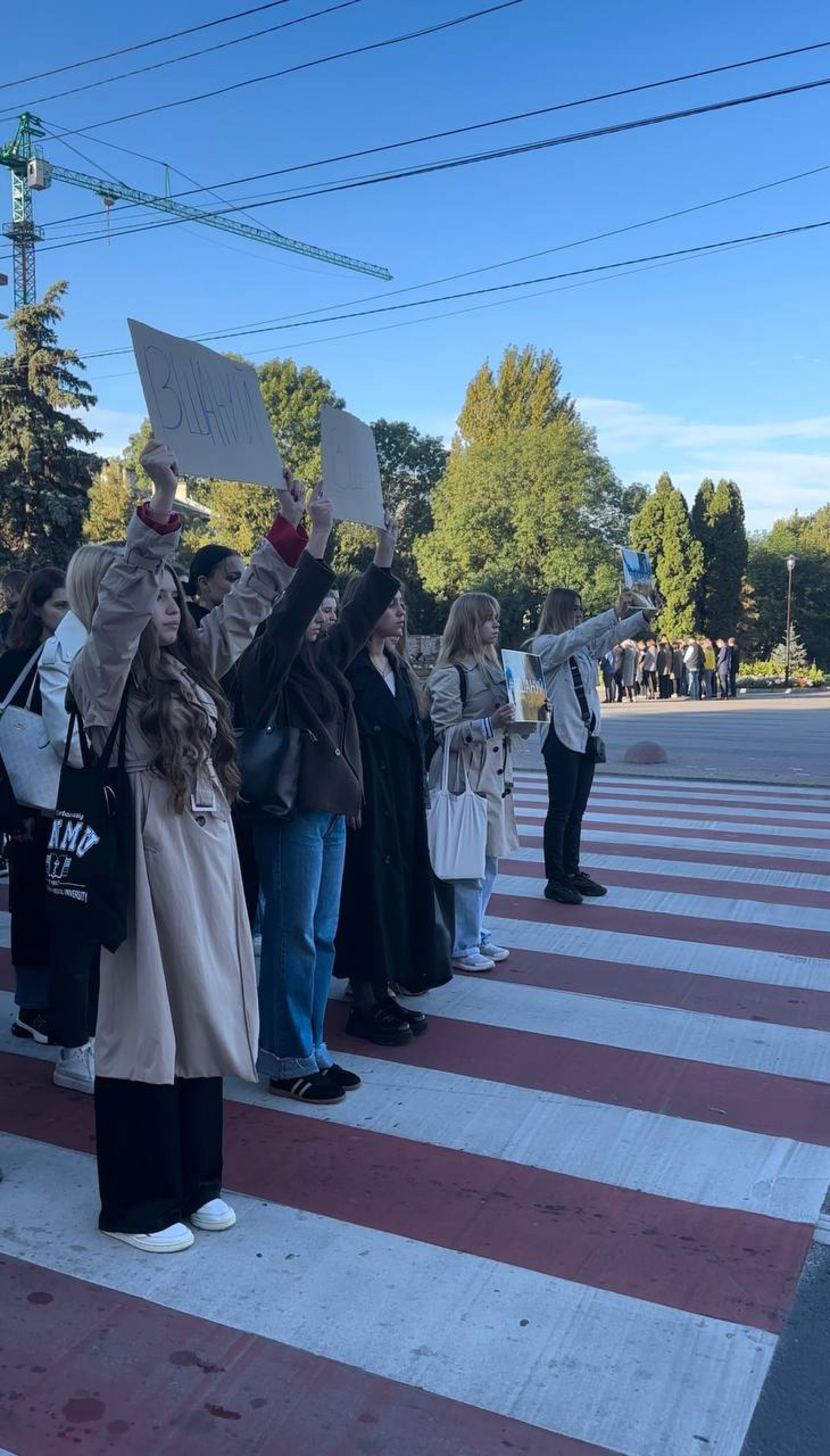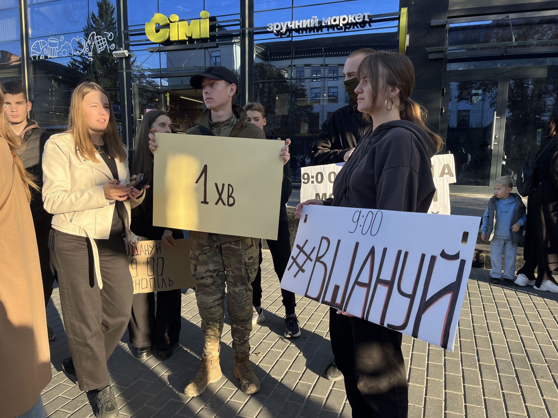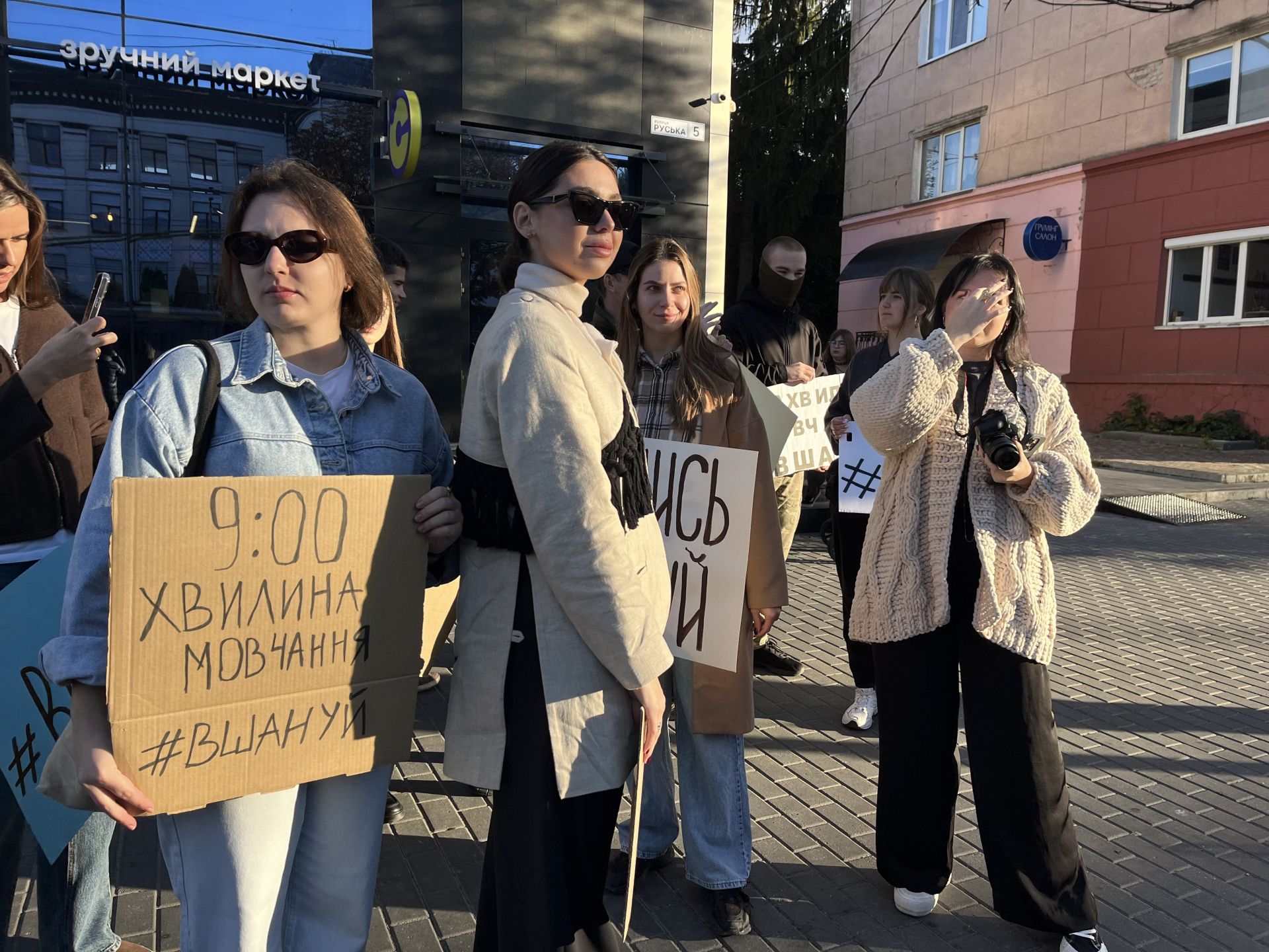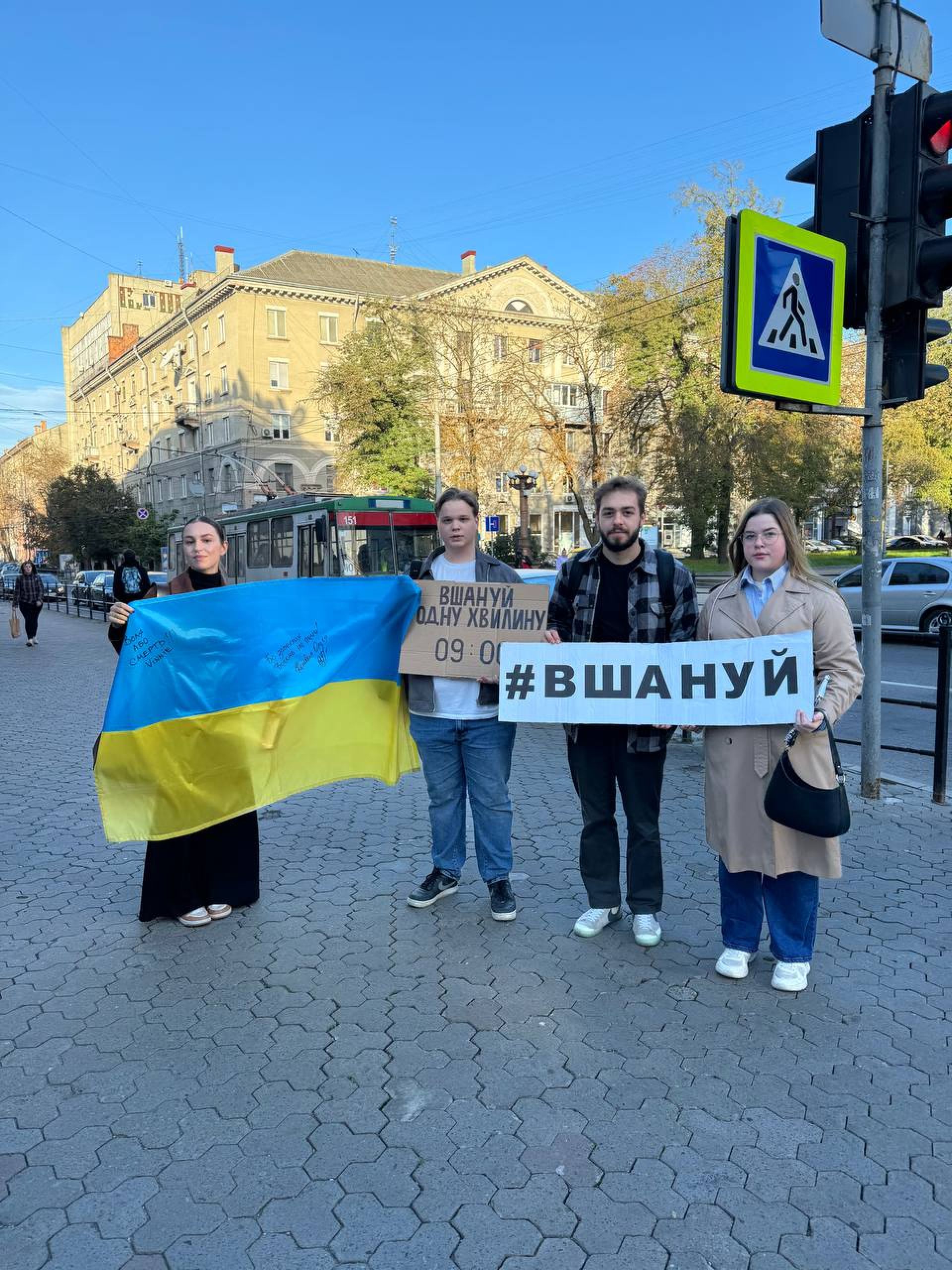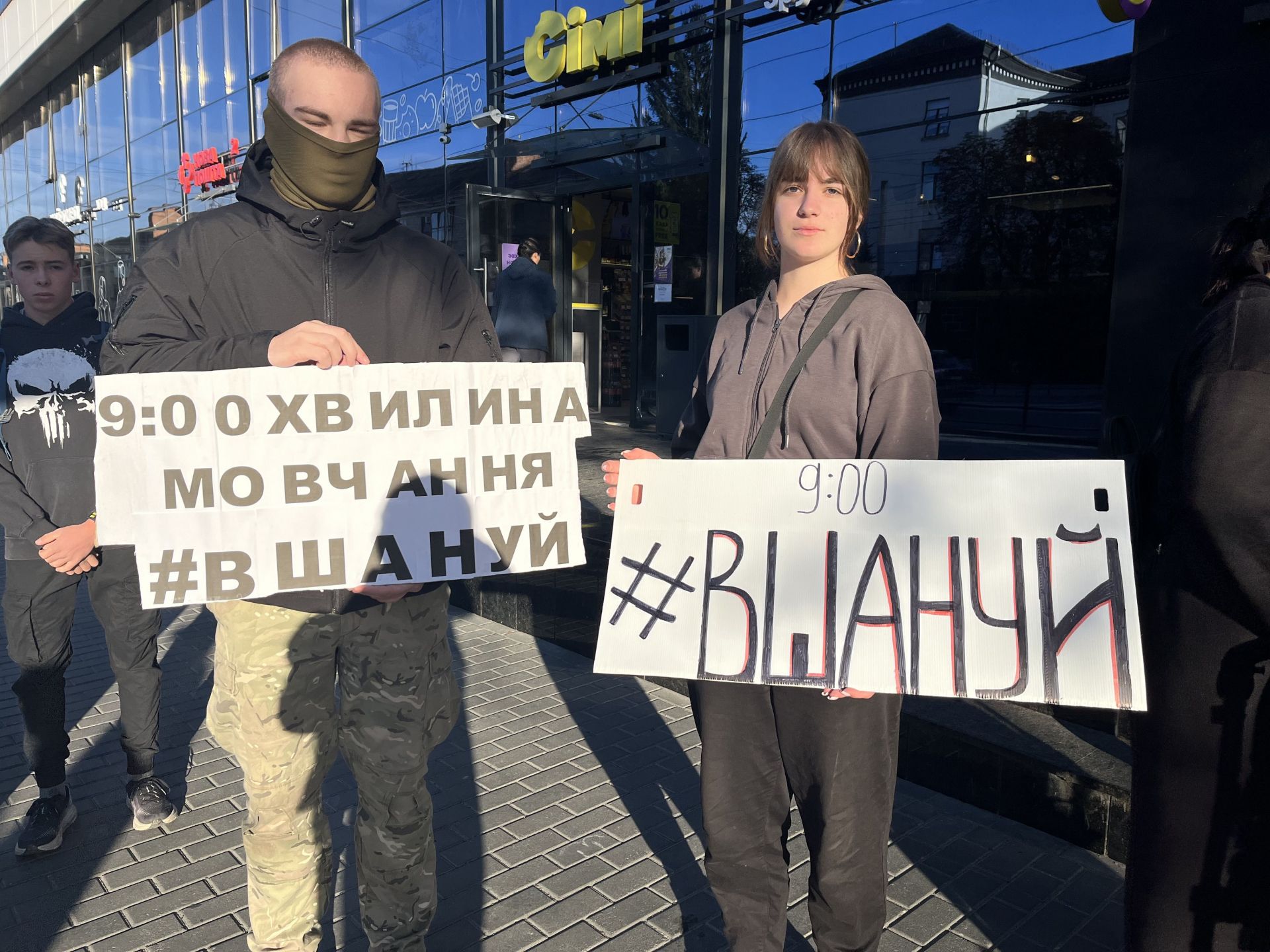 З собою вони принесли плакати, українські прапори та музичні колонки, аби гучніше заявити про «Хвилину мовчання» о 09.00.