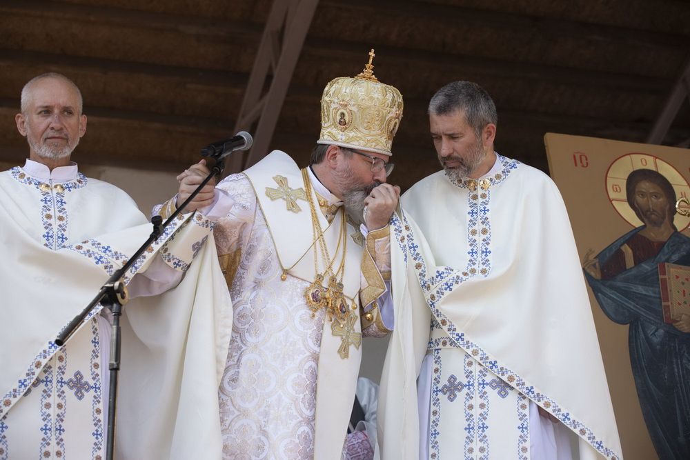 Він підкреслив, що сьогодні присутністю звільнених з російського полону священників УГКЦ Господь Бог посилає знак надії: «На тих руках донедавна були кайдани, але вони впали, — сказав Блаженніший Святослав. — Так само впадуть кайдани, які нам сьогодні закладає наш ворог».