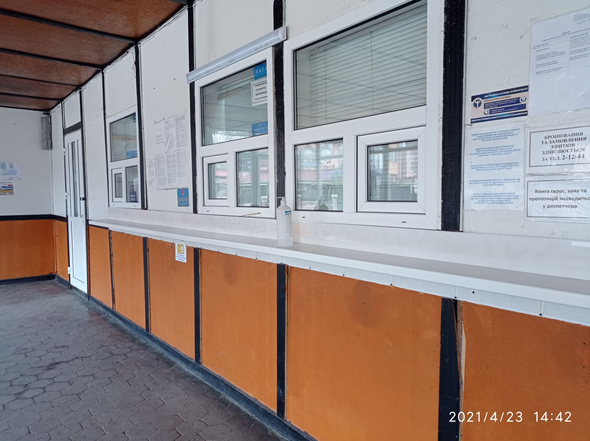 Автостанція представляє собою однотипну будівлю, невелику за площею, вигляд якої, напевно, не змінювався ще з часу, коли її спорудили. До того ж, скляний фасад автостанції, можливо, і виглядає гарно, та взимку у холодну погоду там навряд чи тепло.