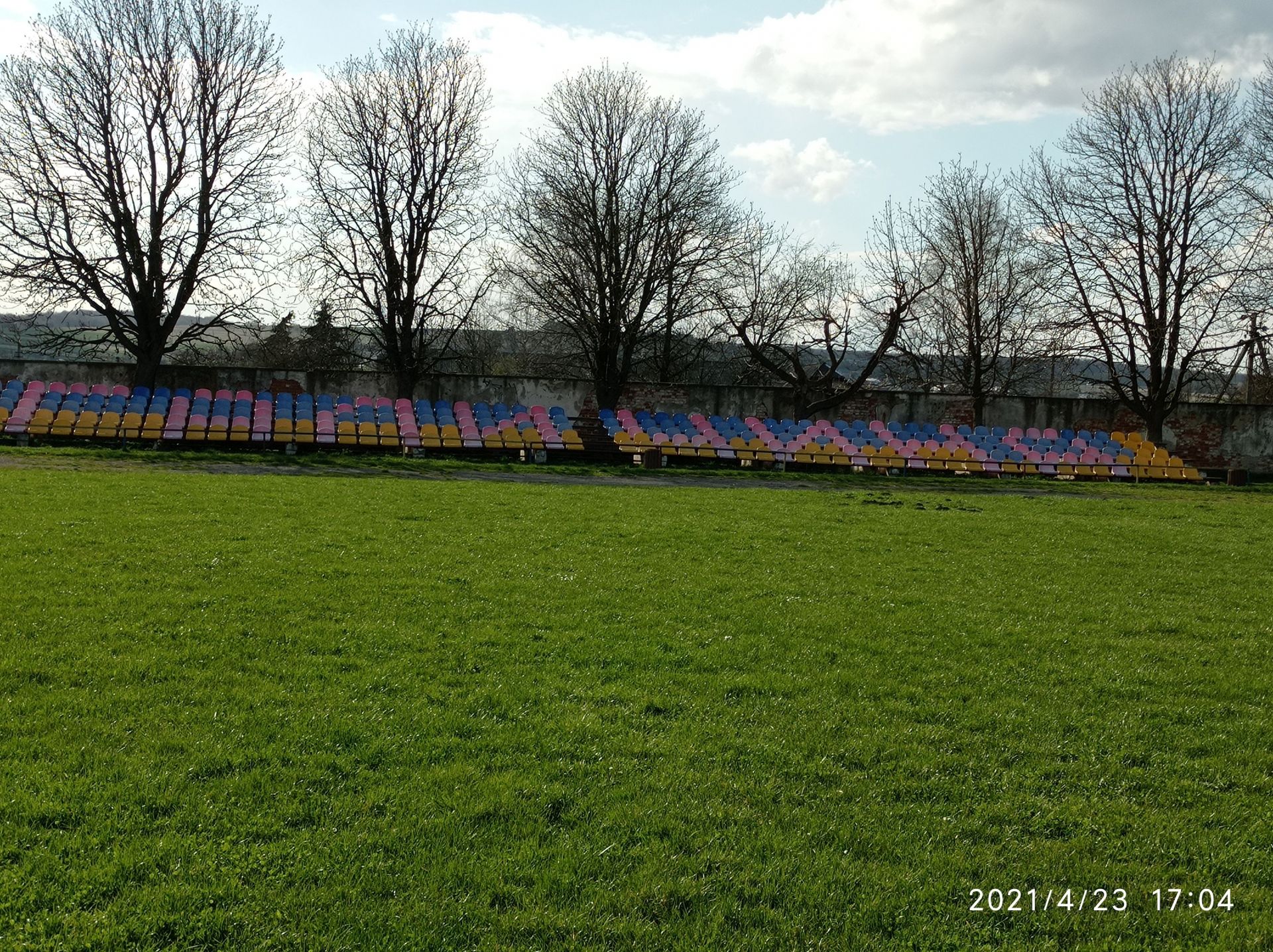 Щодо стадіону, то він далеко не в найкращому стані. За газоном на полі вже давно ніхто не доглядає, воно заростає травою, на якій не видно розмітки.