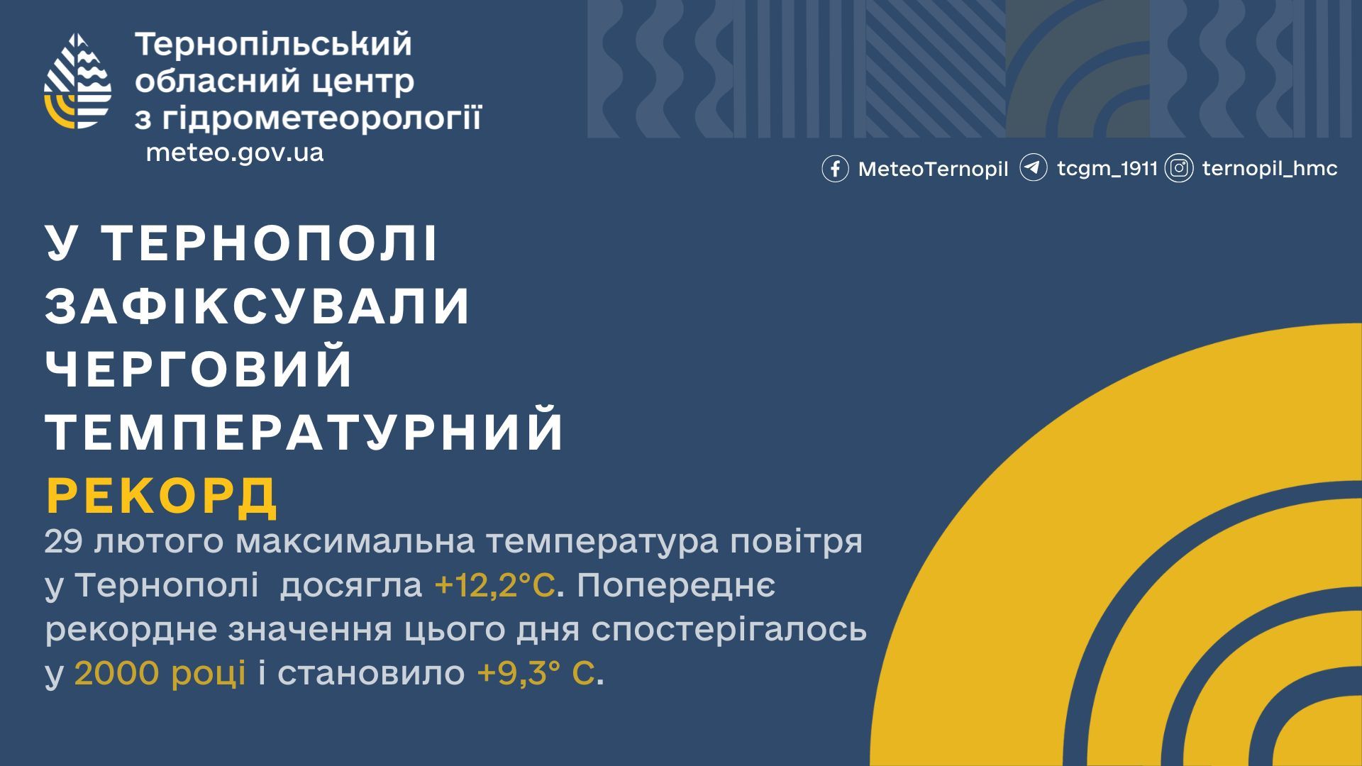 Лютневий місяць 2024 року увійшов в історію Тернопільської області як найтепліший за всю період метеорологічних спостережень. Середня місячна температура повітря склала +5°С, перевищивши кліматичну норму за період 1991-2020 років на цілих 7 градусів.