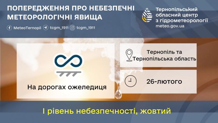 У найближчі три доби на дорогах Тернопільщини збережеться ожеледиця.