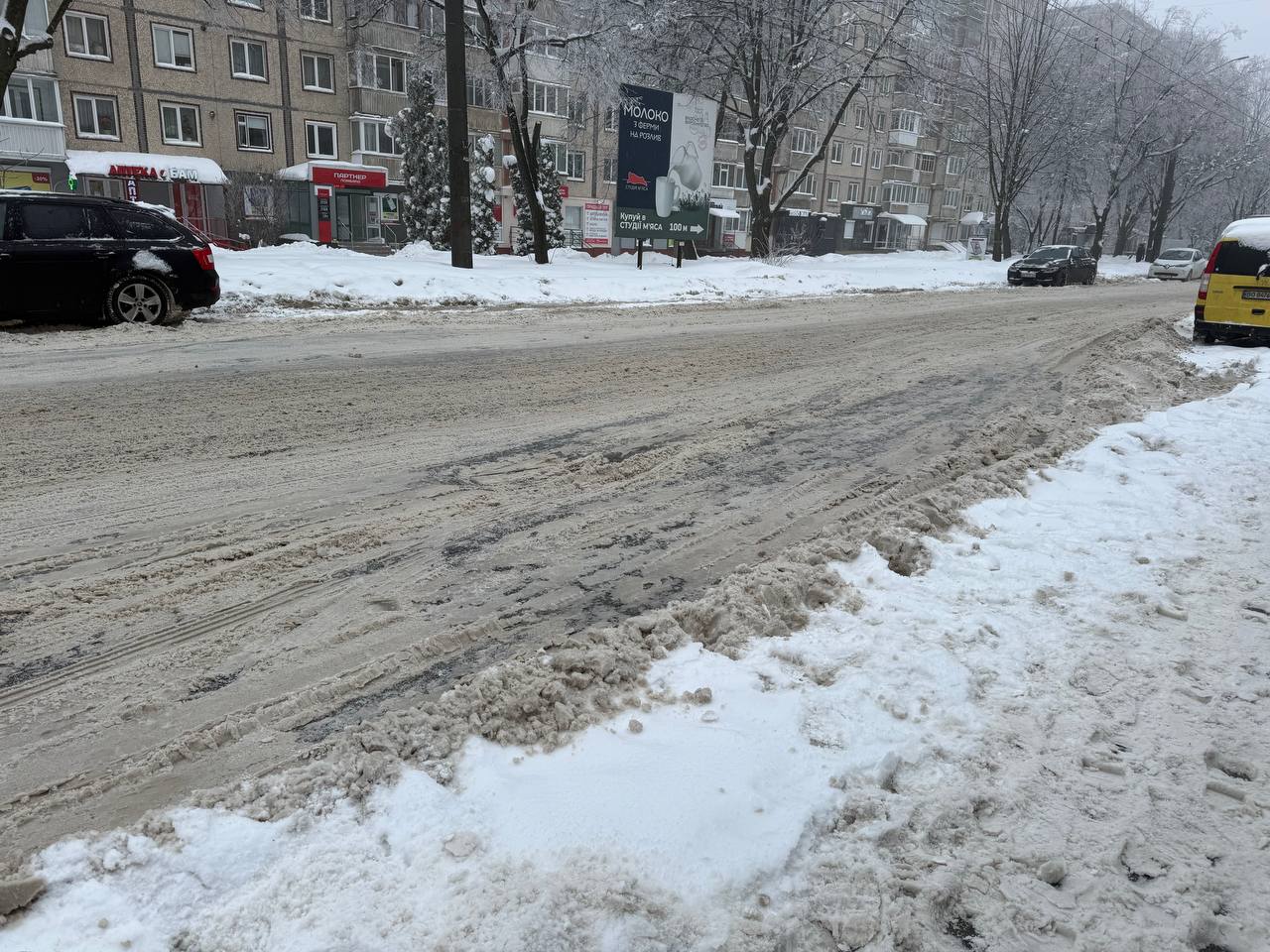 Загалом дороги в місті прочищені, однак подекуди — неякісно. Значно гірша ситуація на тротуарах. Зокрема, на вулиці Кривоноса у житловому районі «Дружба» проїзну частину розчистили та посипали піском. Водночас тротуари залишаються частково заваленими снігом — подекуди утворилися справжні кучугури.