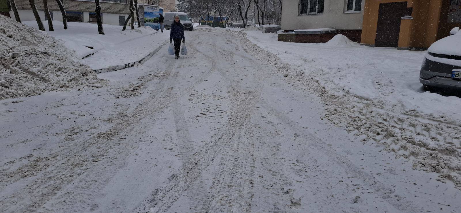 Дочірнє підприємство «Авторитет плюс» обслуговує 40 багатоквартирних будинків у центрі Тернополя, розповів директор підприємства Степан Маціпура, розчищати сніг встигають не скрізь.