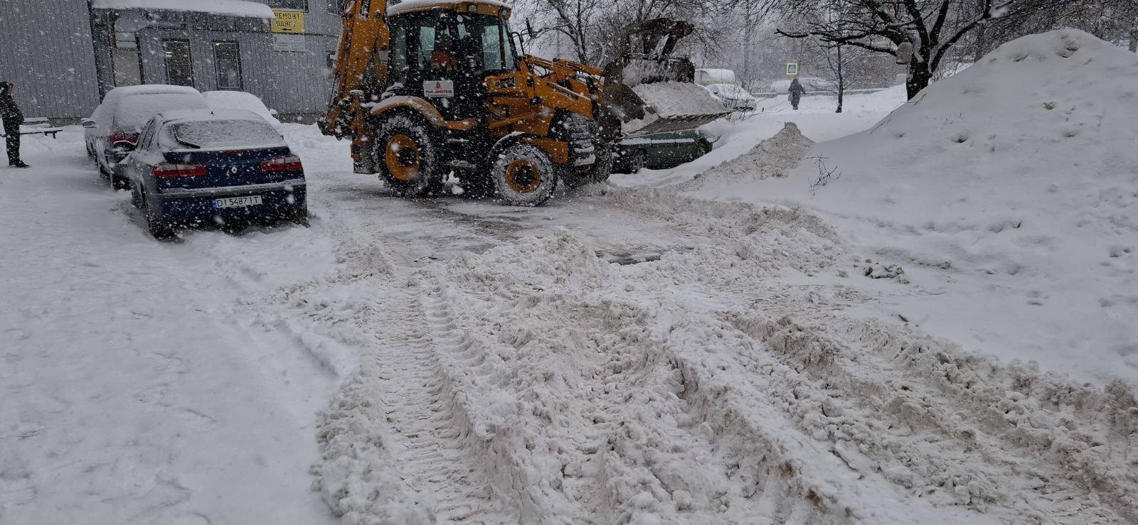На прибудинковій території за адресою Героїв Крут, 4 працюють як двірники, так і спецтехніка, розповів «20 хвилин» голова ОСББ Андрій Теслюк. За його словами, наразі ситуація не критична, рух транспорту не обмежений.