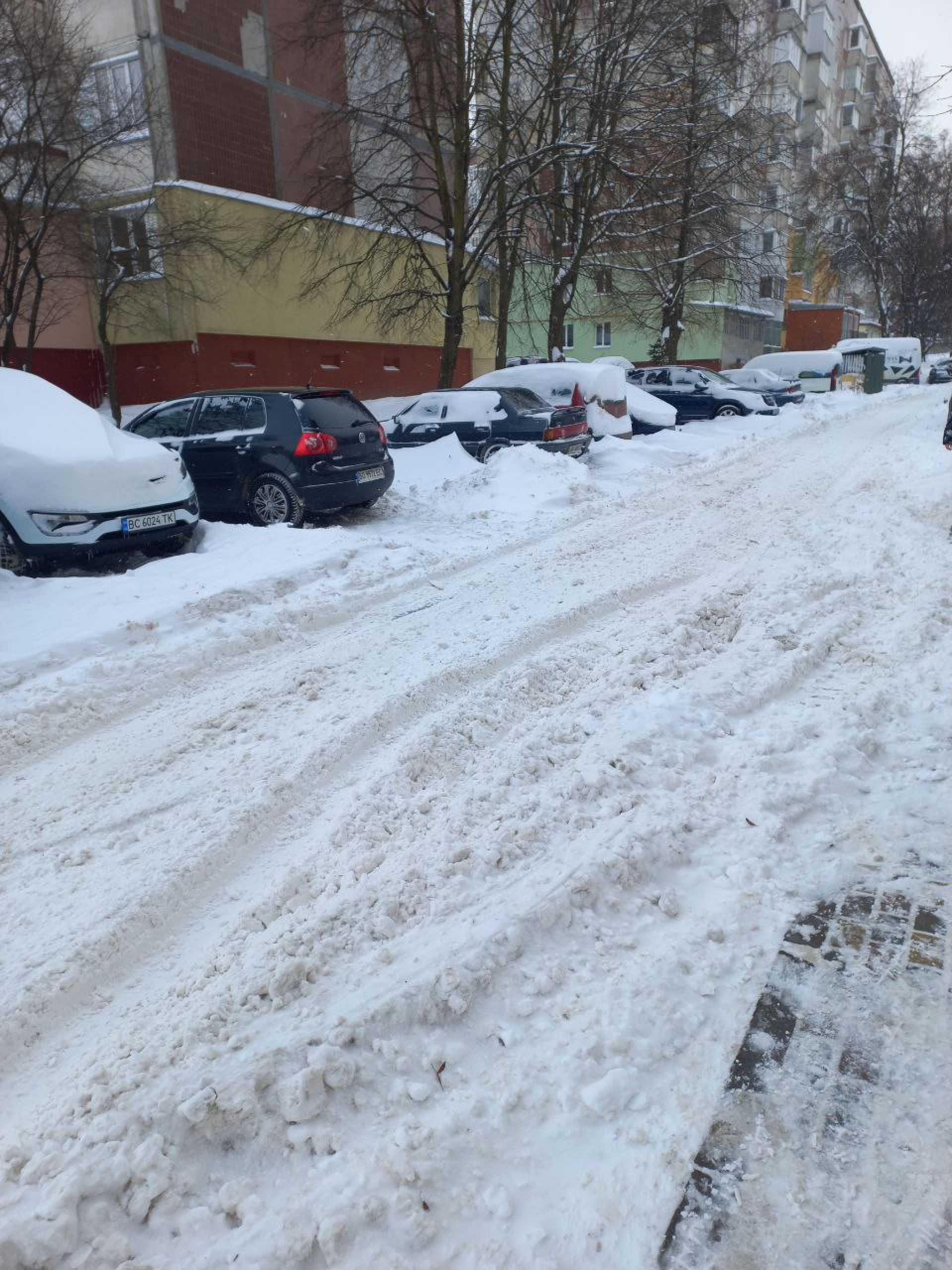Кілька днів прибудинкову територію розчищали власними силами, а зараз чекають на спецтехніку, розповів голова ОСББ «Бойчуків, 5-А» Андрій Дуда. Також через замети та неможливість проїхати збився графік вивозу сміття – восьмого січня машина за планом не приїхала, додав він.