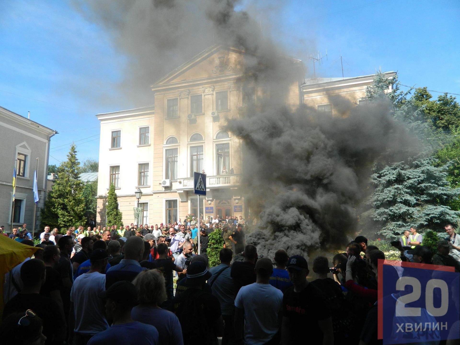Біля стін міськради на 16-й сесії була не лише нецензурна лексика, кров, перцевий газ, але й їдкий дим від підпаленого торфу. Тернополяни перестали вестись на пусті обіцянки мера і почали діяти більш радикальними методами.