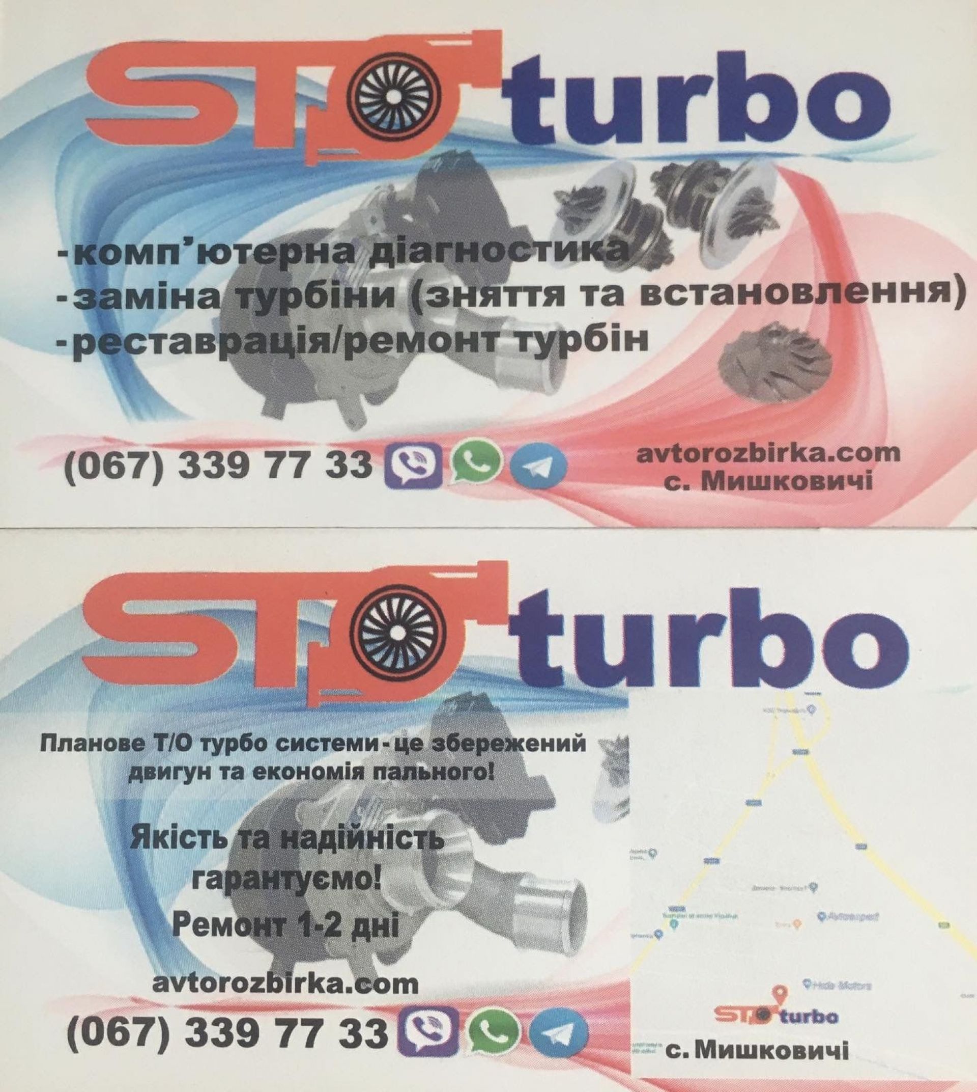 У випадку гарантійного випадку «STO TURBO» не компенсовує витрати на повторний монтаж – демонтаж турбіни ,окрім випадку монтування турбіни на нашому СТО.