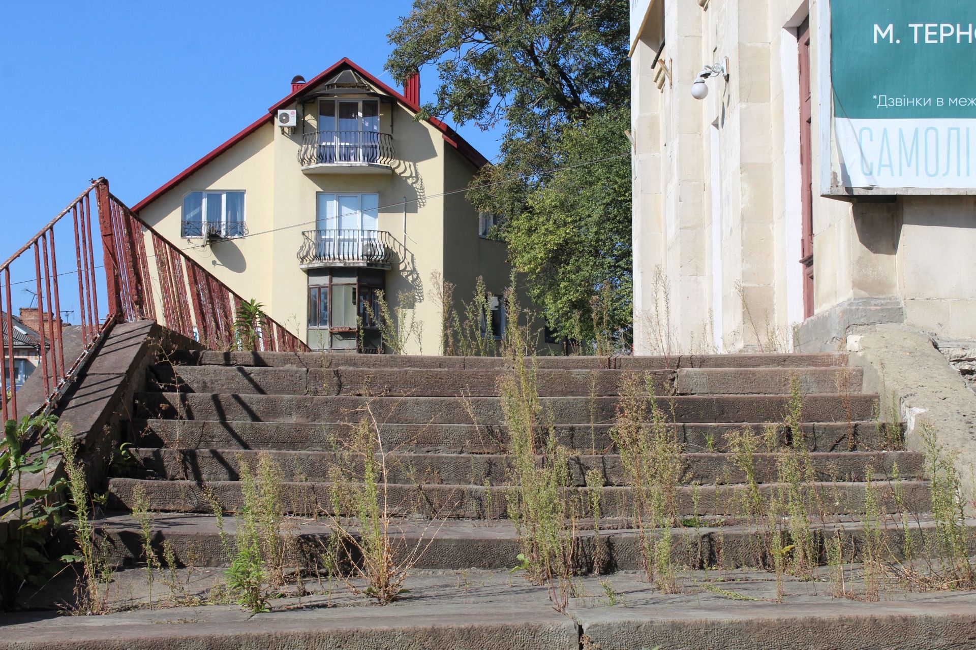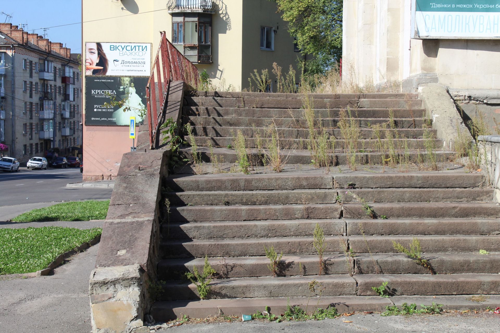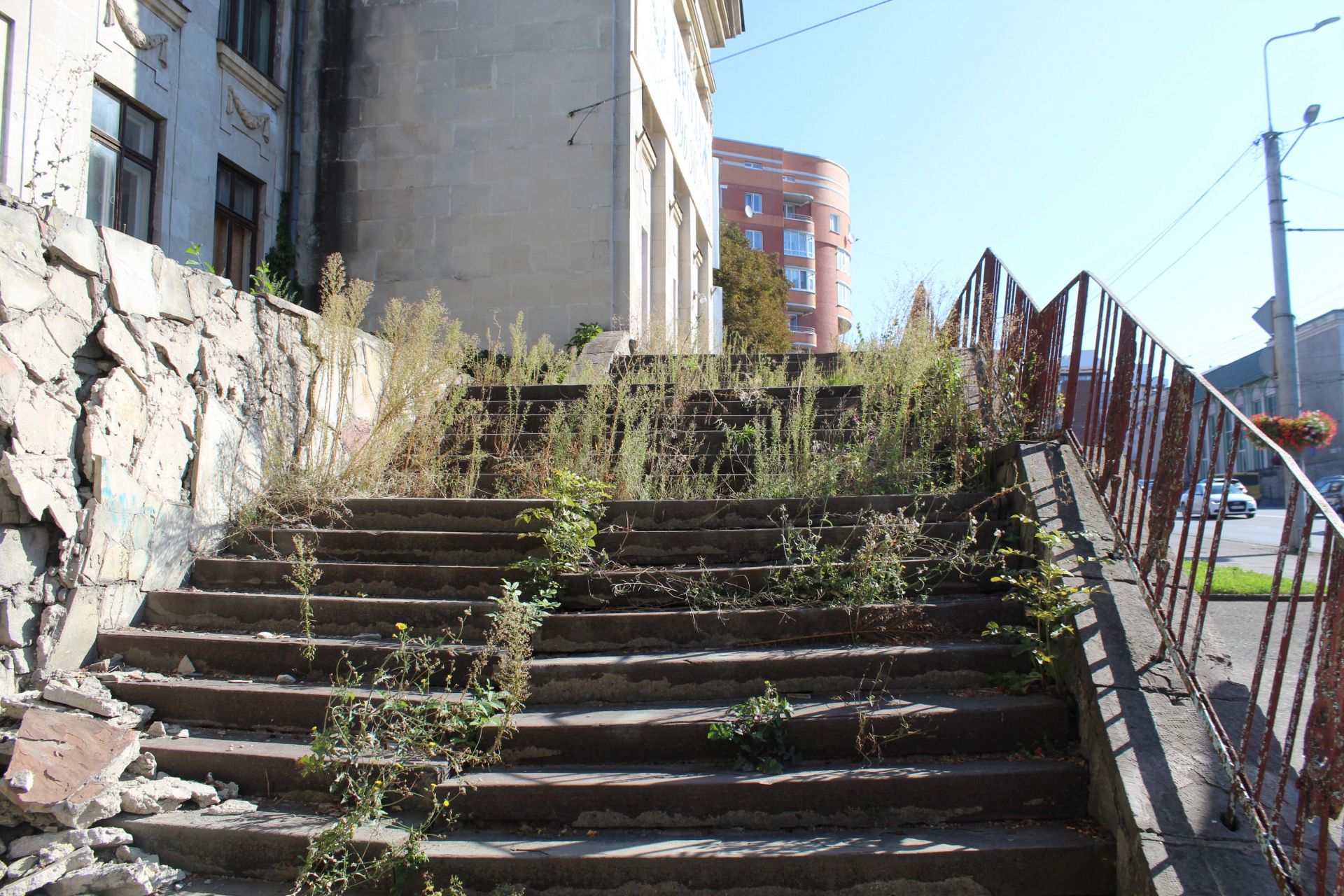 Під сходами, де колись були дошки з оголошеннями, синя металева решітка облупилась. З основи будівлі сиплеться каміння, а стіни – потемніли, вочевидь, від вологи. З одного боку Будинку культури залізничників влаштували парковку, на момент відвідин локації там стояло авто. А на клумбах перед будівлею, де колись працівники комунальних служб висаджували квіти, буяє трава.