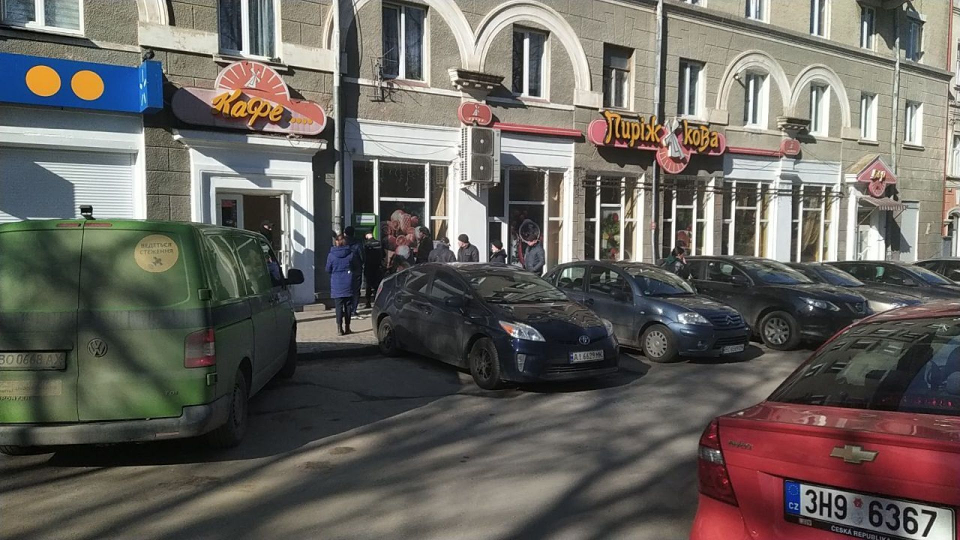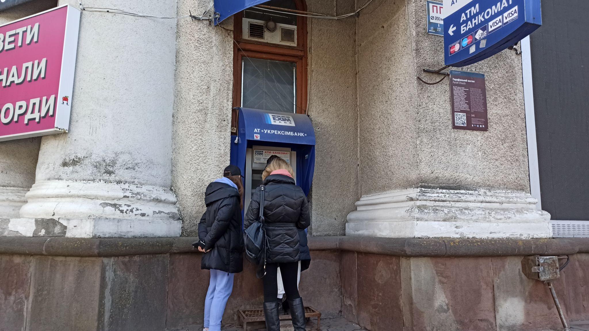 У банкоматі "ПриватБанку", що поблизу кафе "Пиріжкова" (вулиця Руська, 23), на час перевірки спершу видача готівки була неможлива з технічних причин. На екрані "світилося" повідомлення про інші діючі адреси найближчих відділень банків і банкоматів. Однак, люди стояли в очікуванні приїзду інкасаторів. Згодом, коли гроші доставили, кількість містян, що зайняли чергу, різко зросла. Біля банкомату перебувало 15 осіб.