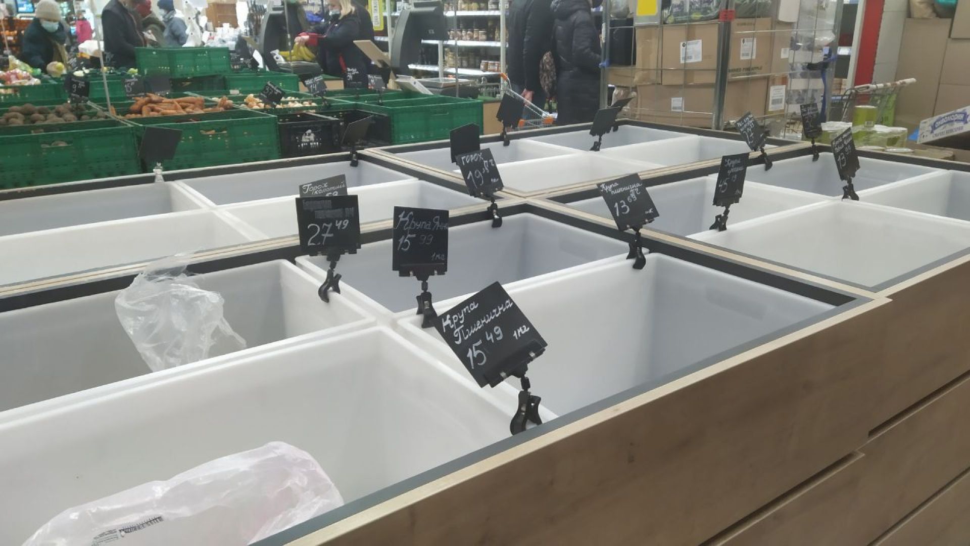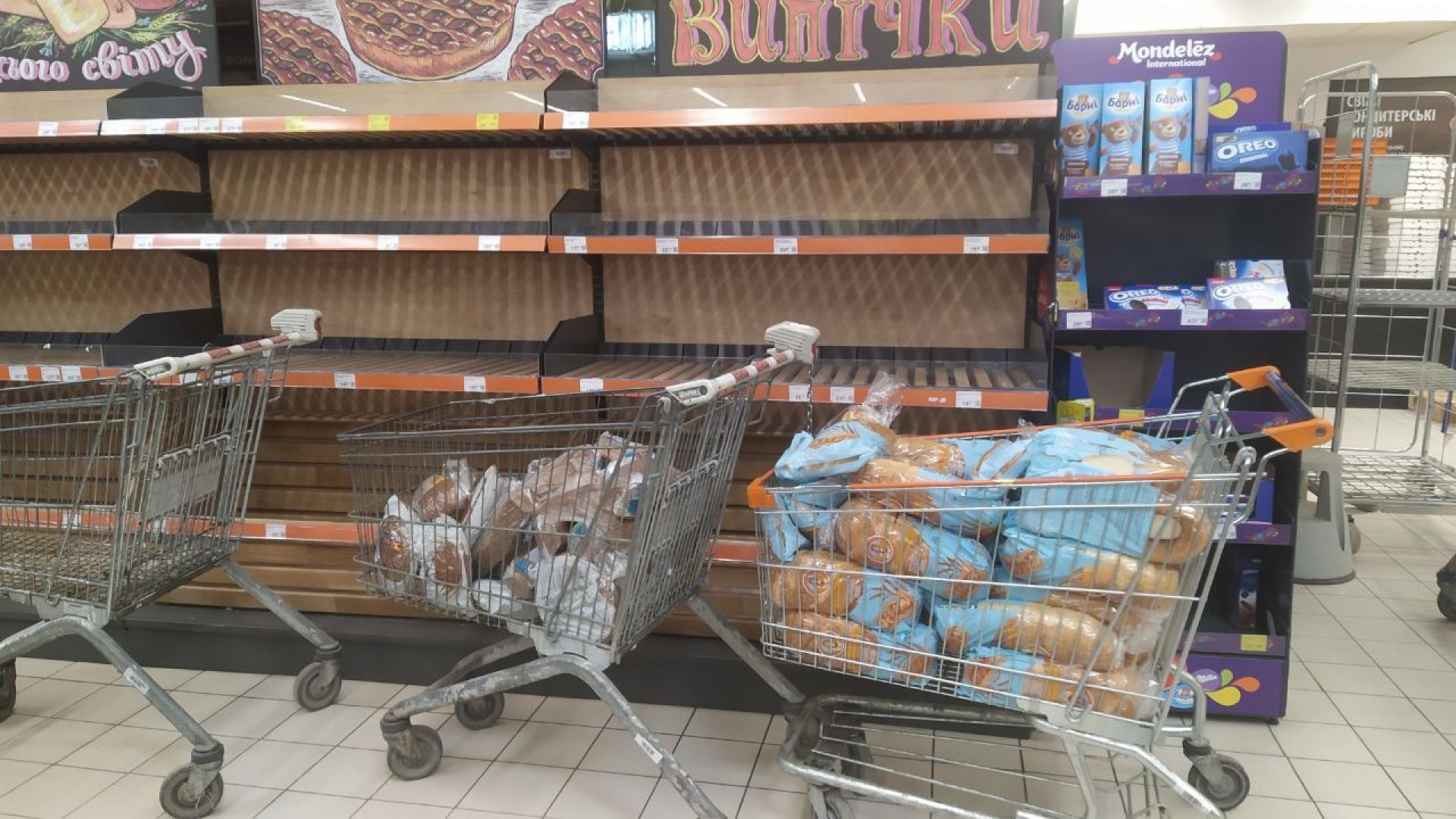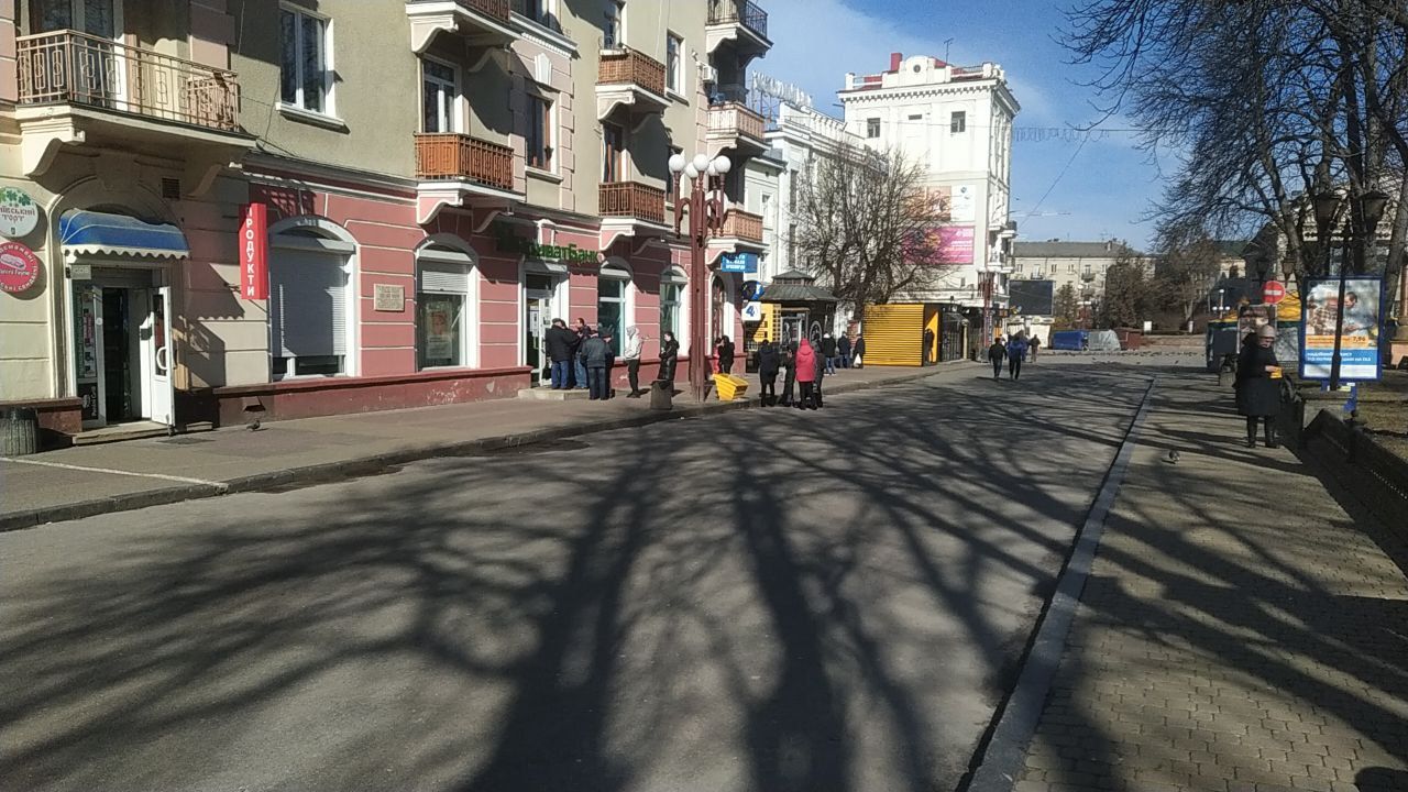 - Пусті полиці із хлібом та крупами, черги до 15 осіб до банкоматів й аптек.