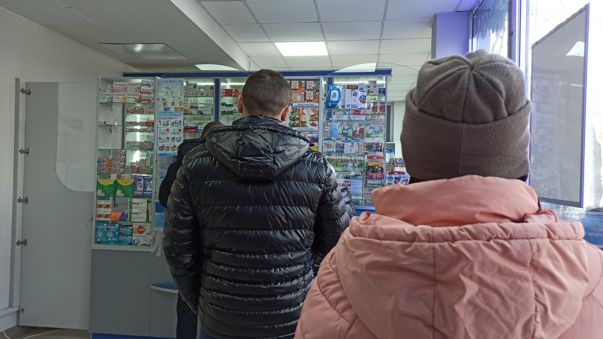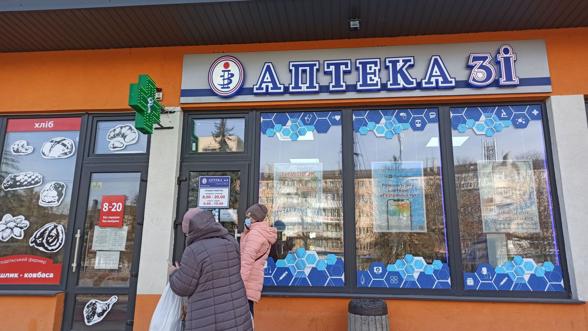 Цілодобова аптека біля "Сільпо" (вулиця Максима Кривоноса, 2б) працює на повну. Є невелика черга усередині, і троє покупців стояло надворі. Багатьох препаратів немає. Можна розрахуватись за ліки через термінал.