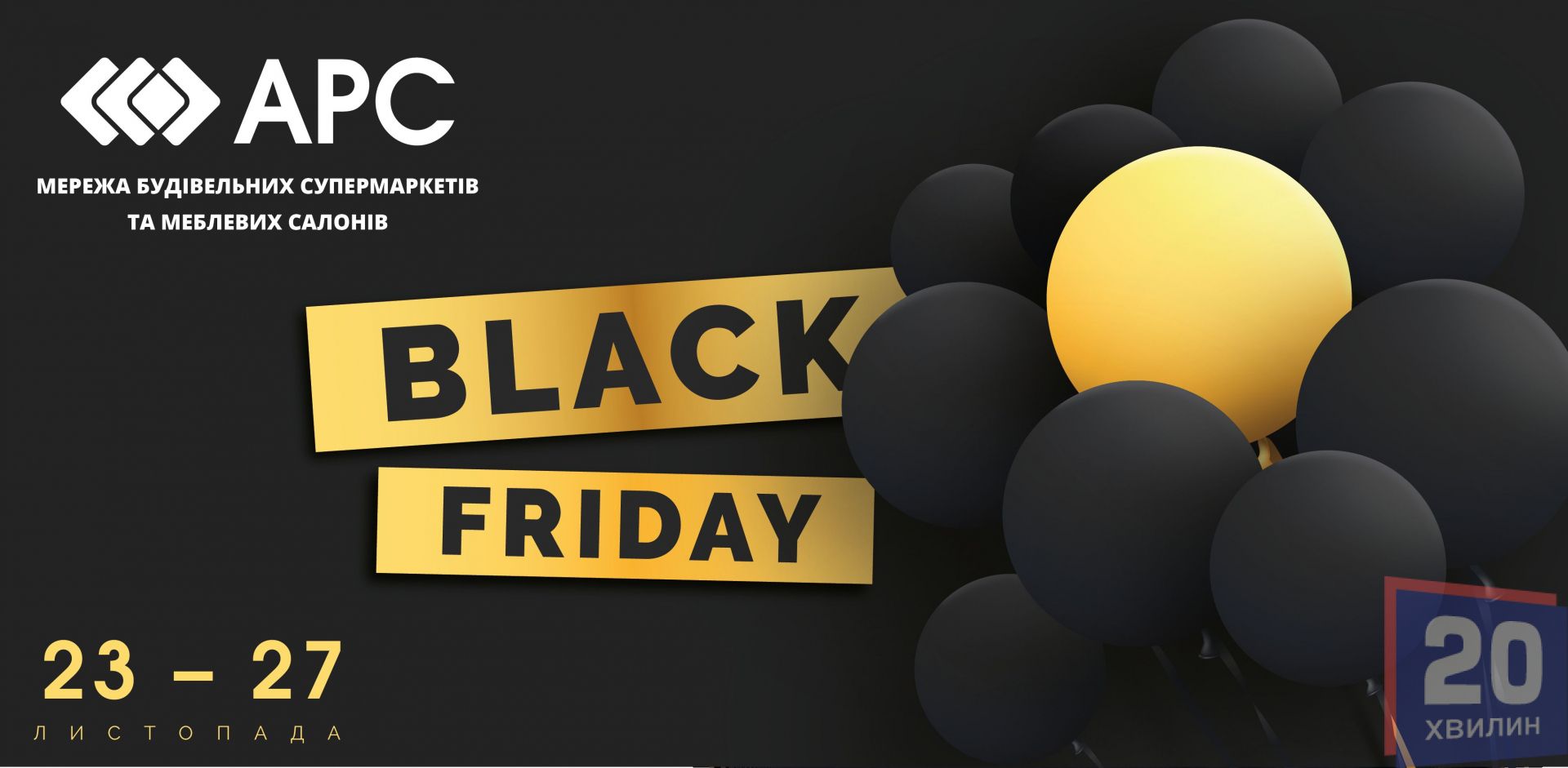 23-27 листопада Black Friday в АРС. Грандіозні знижки на товари для будівництва, ремонту, умеблювання та оздоблення оселі. Усім покупцям — картка економії “АРС” на 5% у ПОДАРУНОК!