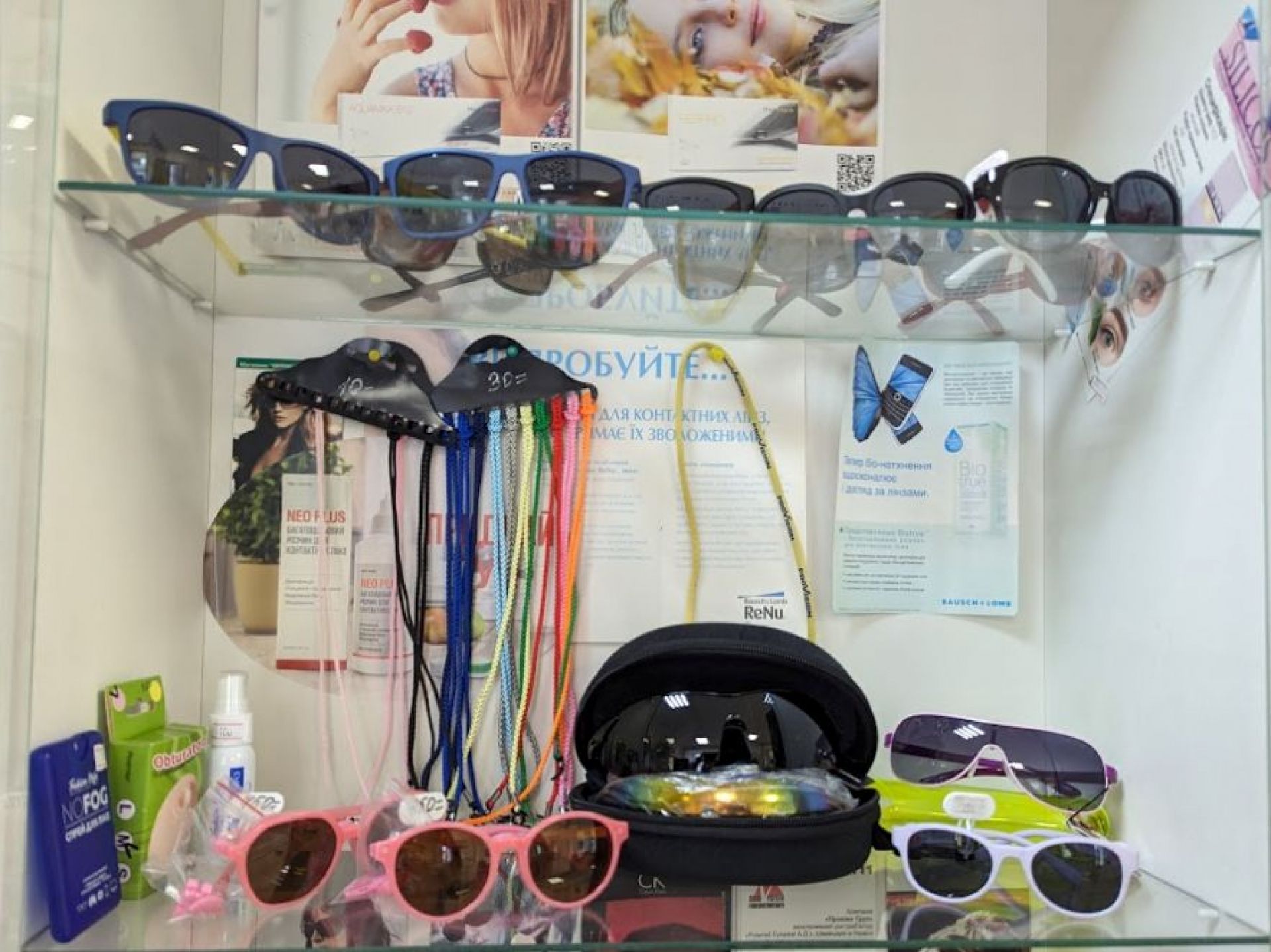 - різноманітні аксесуари, засоби догляду за окулярами, та контактними лінзами;