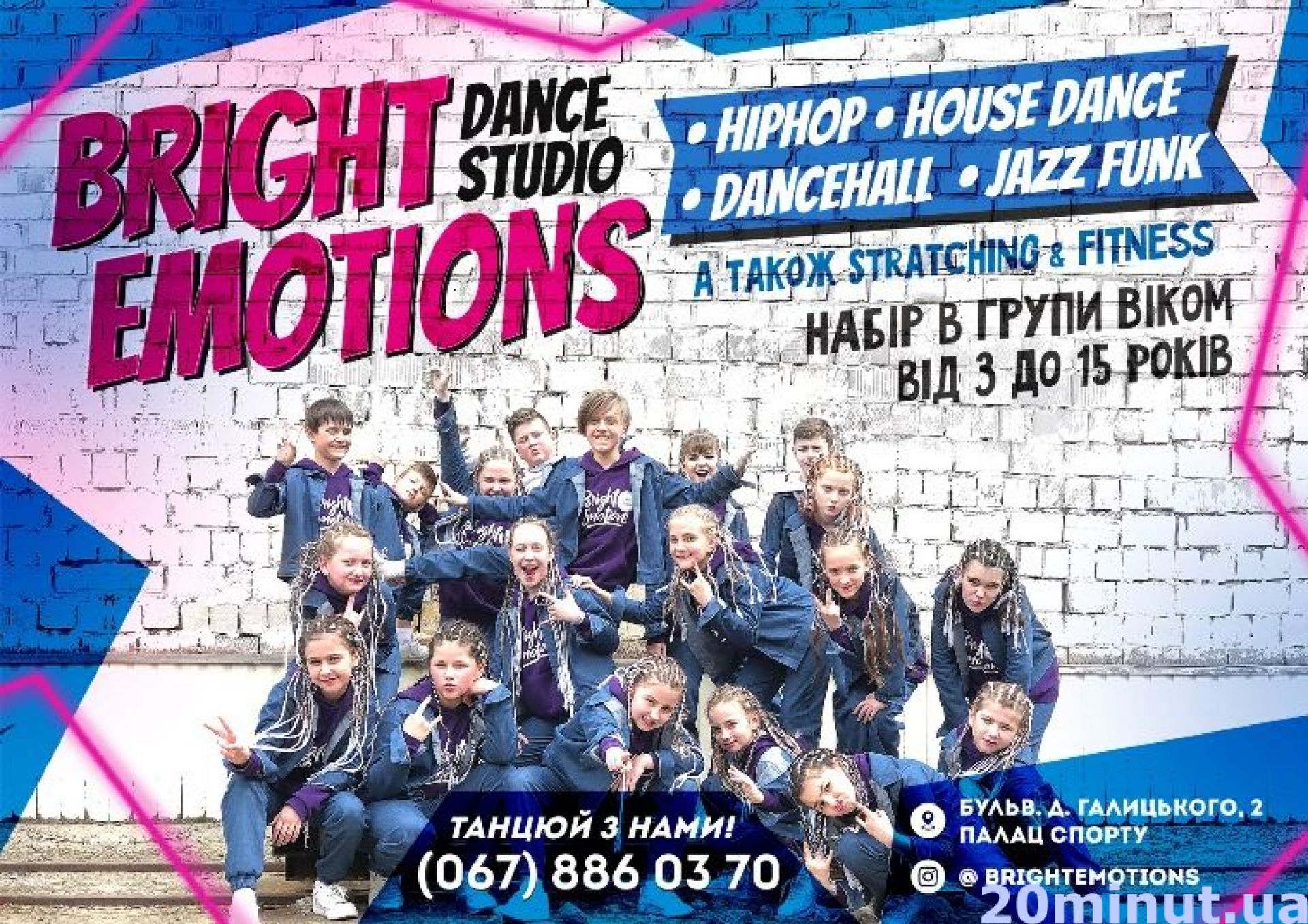 Танцювальна студія "Bright emotions" одна з найкращих та найпопулярніших студій м.Тернополя та Західної України. У нас викладають тільки професійні тренера, які завжди розвиваються та йдуть в ногу з часом, для того щоб навчати дітей.