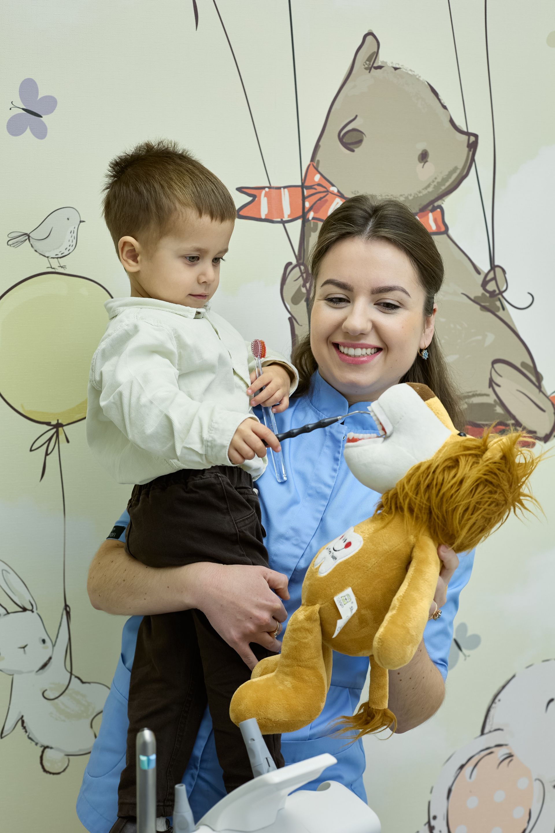 Наша команда складається з висококваліфікованих фахівців, які спеціалізуються на лікуванні маленьких пацієнтів, роблячи візити до стоматолога веселими та менш страшними;