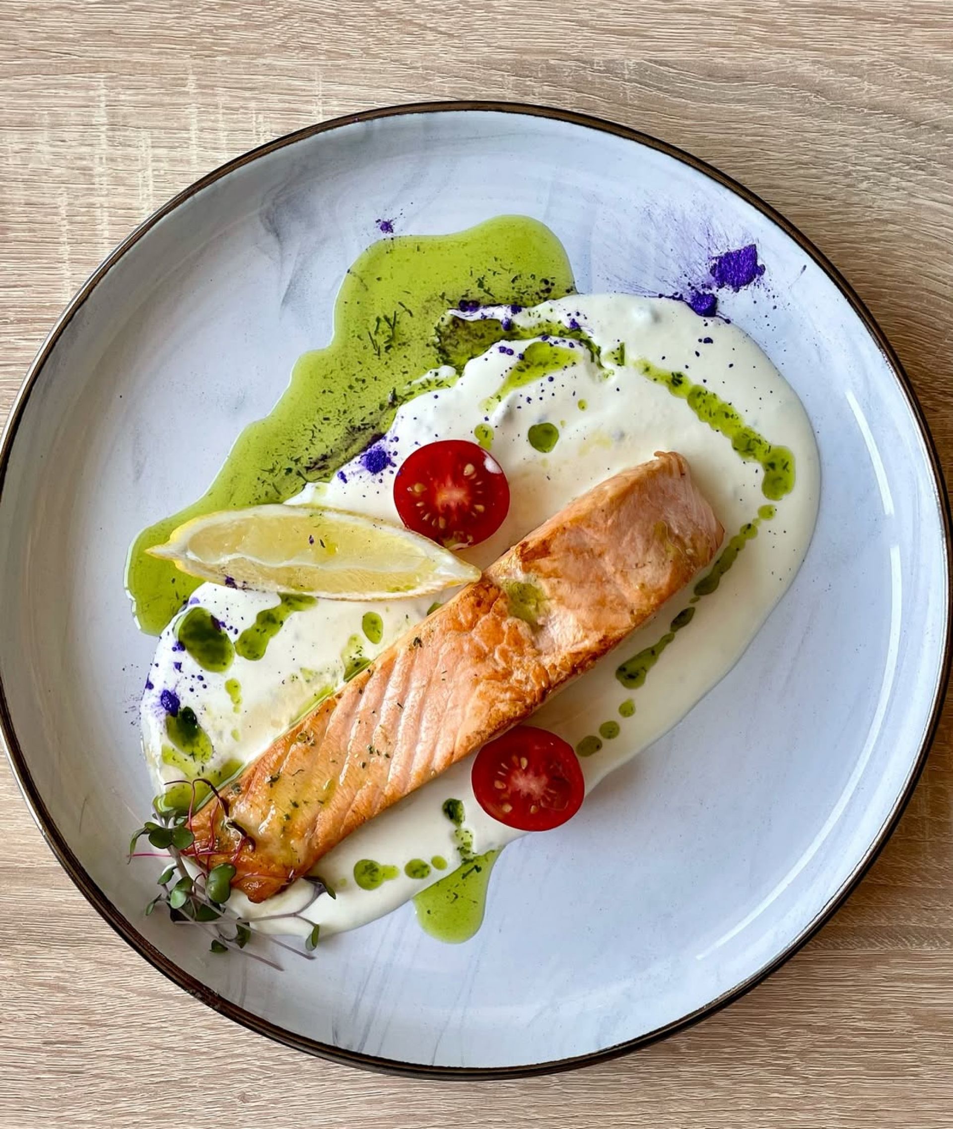 Меню ресторану включає як українські, так і європейські страви — наприклад, борщ, бограч, креативні салати, пасту, рибу та м’ясо на грилі, а також піцу з різними начинками. Такий асортимент дозволяє кожному знайти щось до смаку — від класичних улюбленців до гастрономічних новинок.