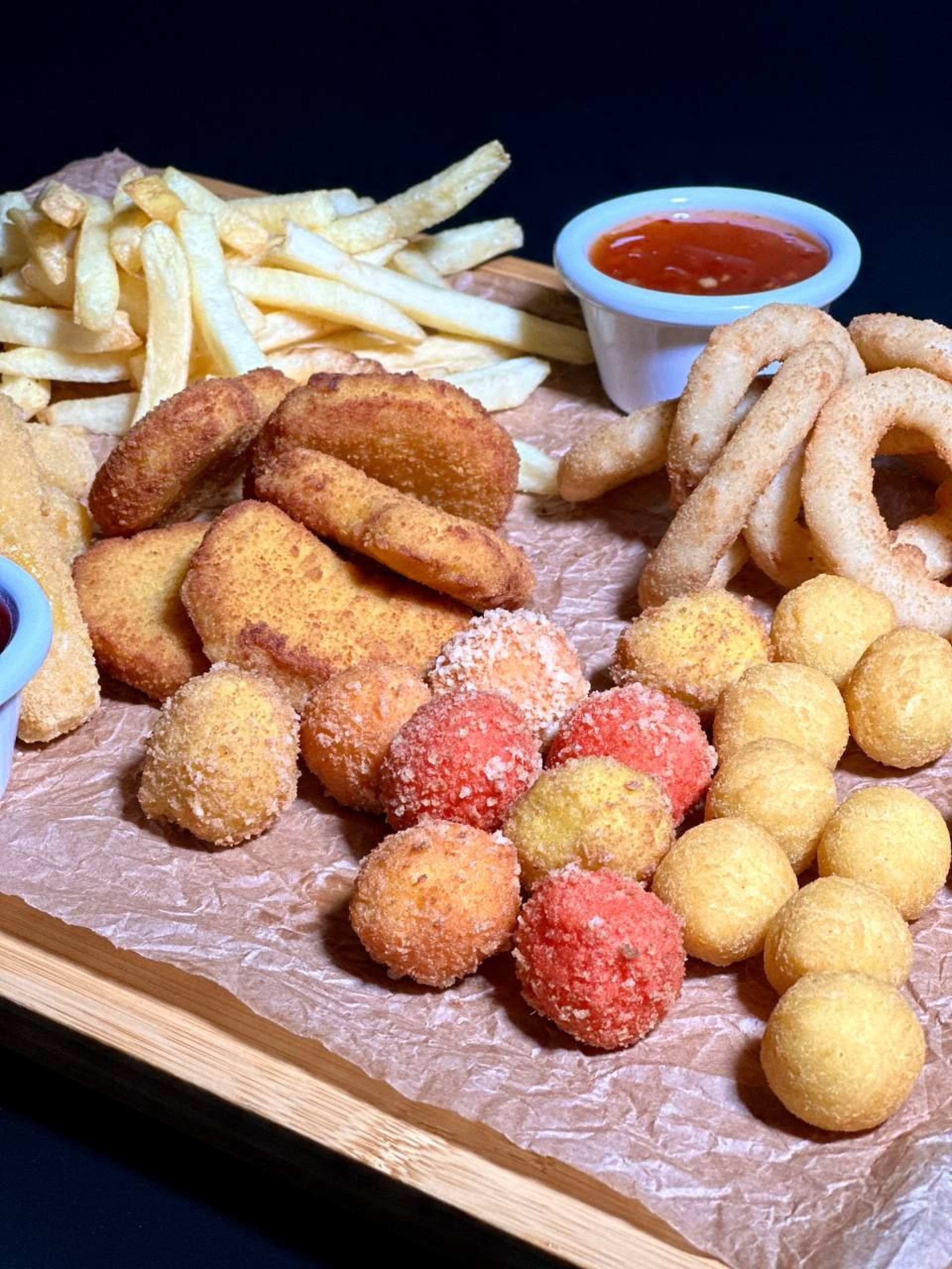 (курячі крильця, курячі палички, курячі нагетси, картопля фрі, цибулеві кільця, сирні палички);
