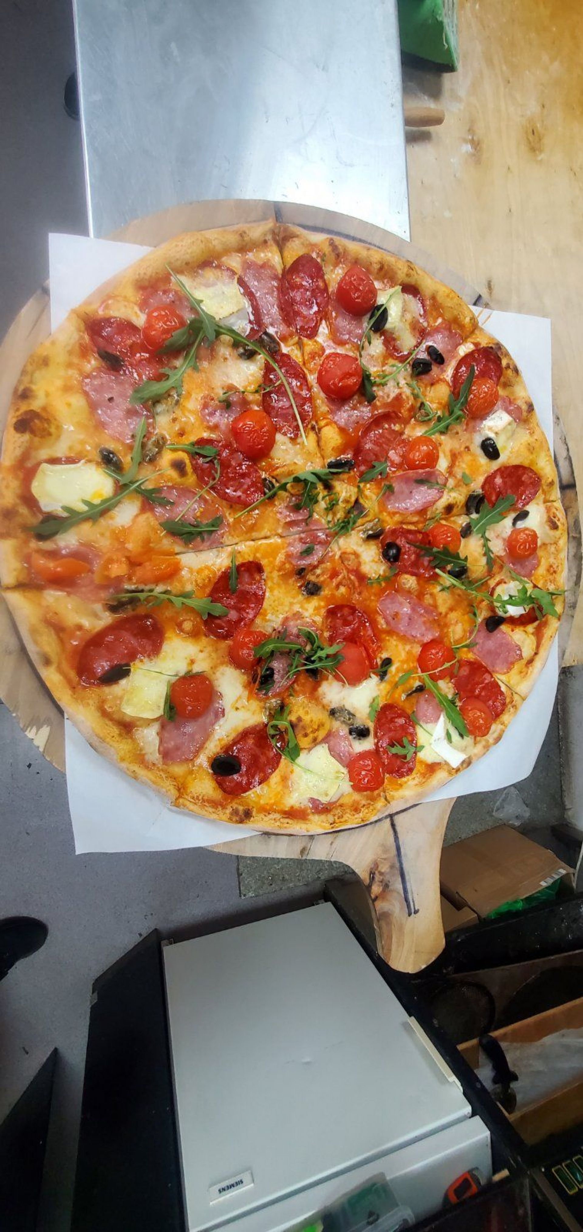 У нашому меню Ви знайдете великий асортимент піц з різними смаками, від класичних до авторських рецептів розміром 35 см та 50 см, тому кожен зможе обрати піцу, яка відповідає його смаку та бажанню.
