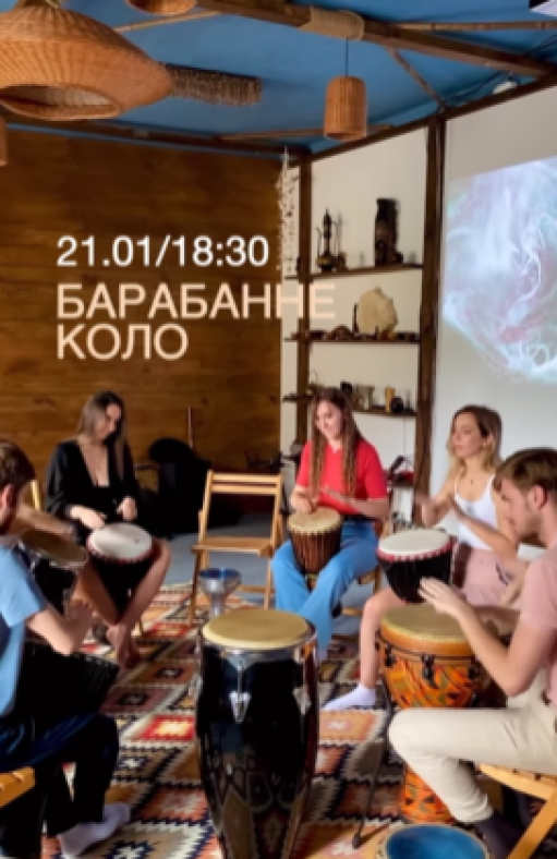 Або ви можете стати учасником майстер-класу з гри на барабанах. Граючи в колі однодумців, можна перезавантажити себе, зняти фізичну та емоційну напругу, розслабитися та насолодитися спокоєм, який дають барабанні вібрації. Для участі не обов’язково вміти грати на барабанах. Адже це не урок, а робота з ритмом. Вартість участі – 200 гривень.