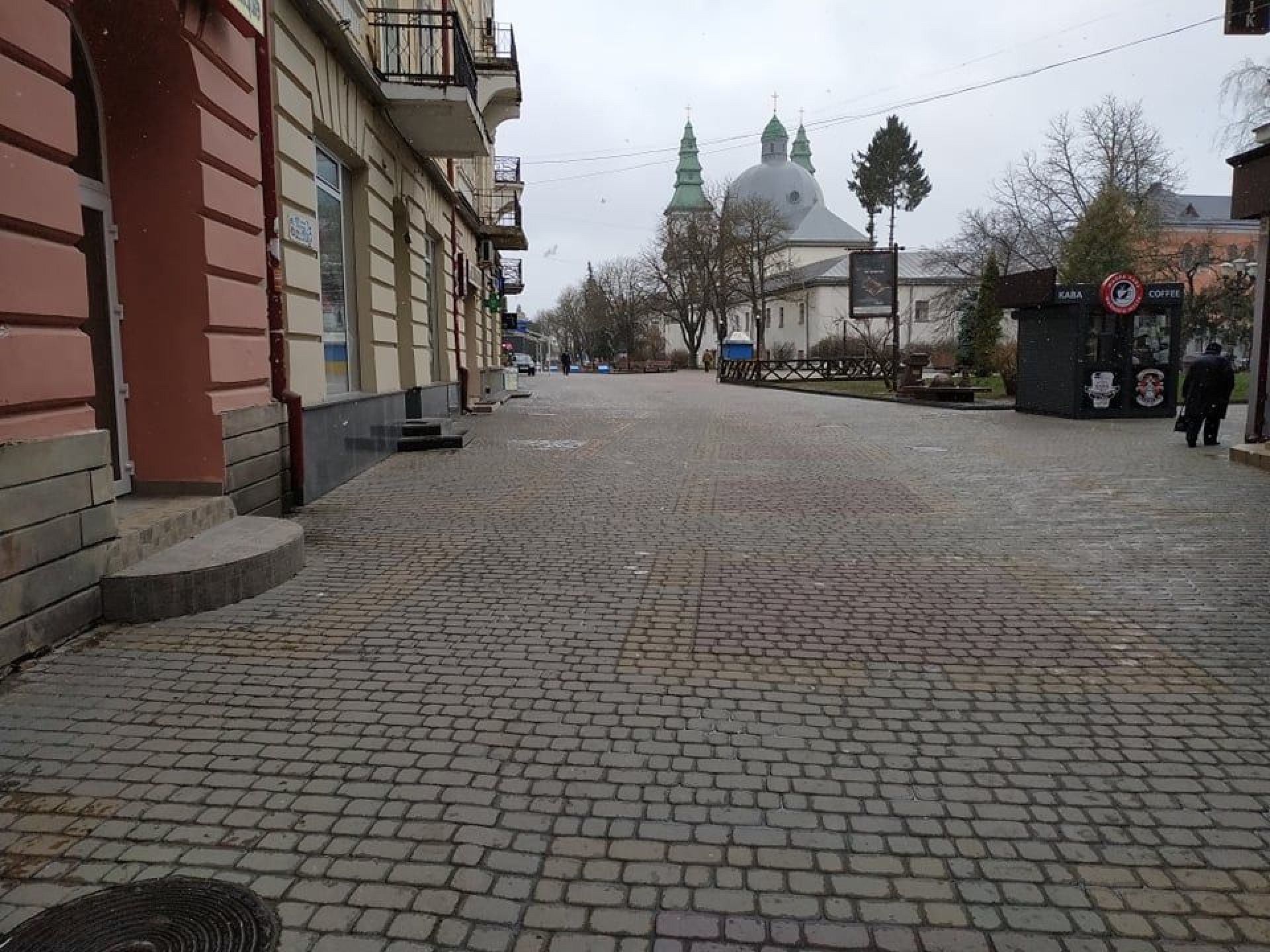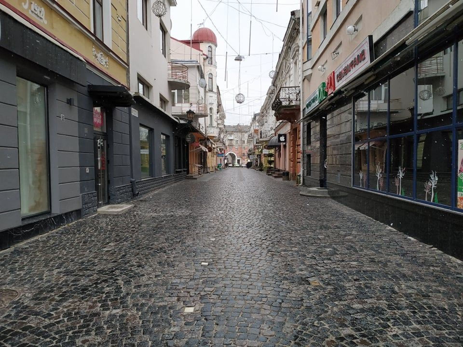 Заклади харчування зачинені, а в магазини та аптеки пускають по одній-дві людини, але тільки в масках. Люди на вулицях є, проте їх небагато. І майже всі носять маски, однак не всі правильно, прикриваючи лише рот.