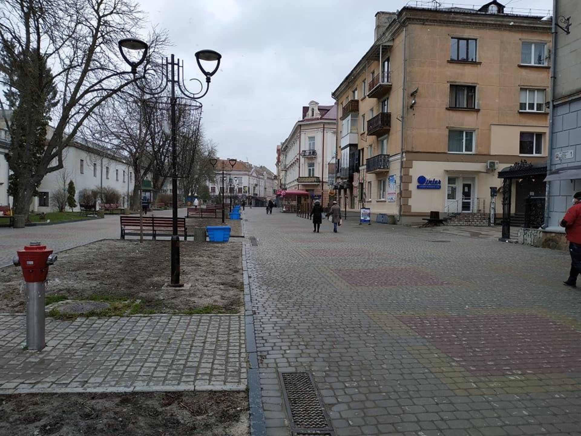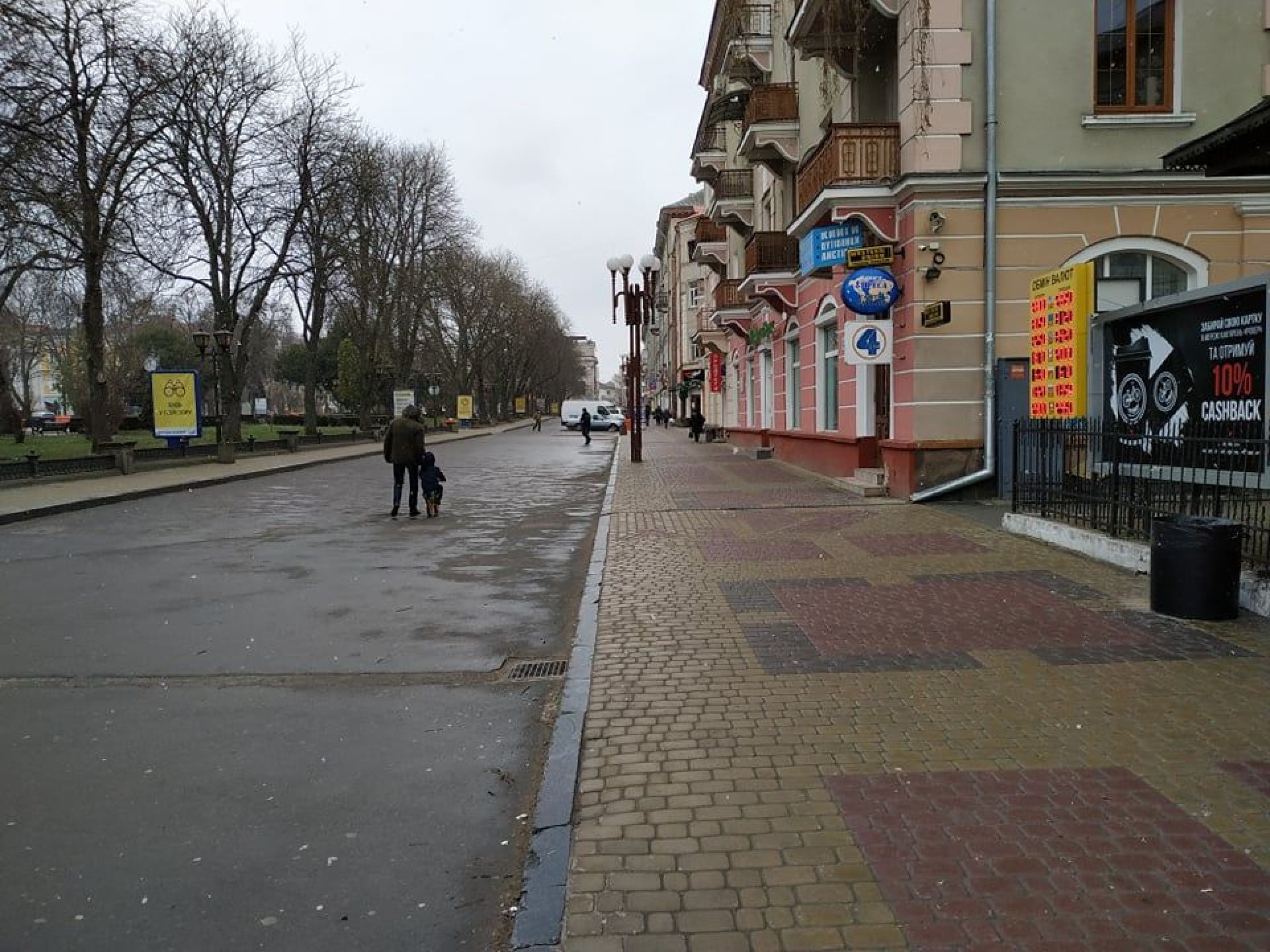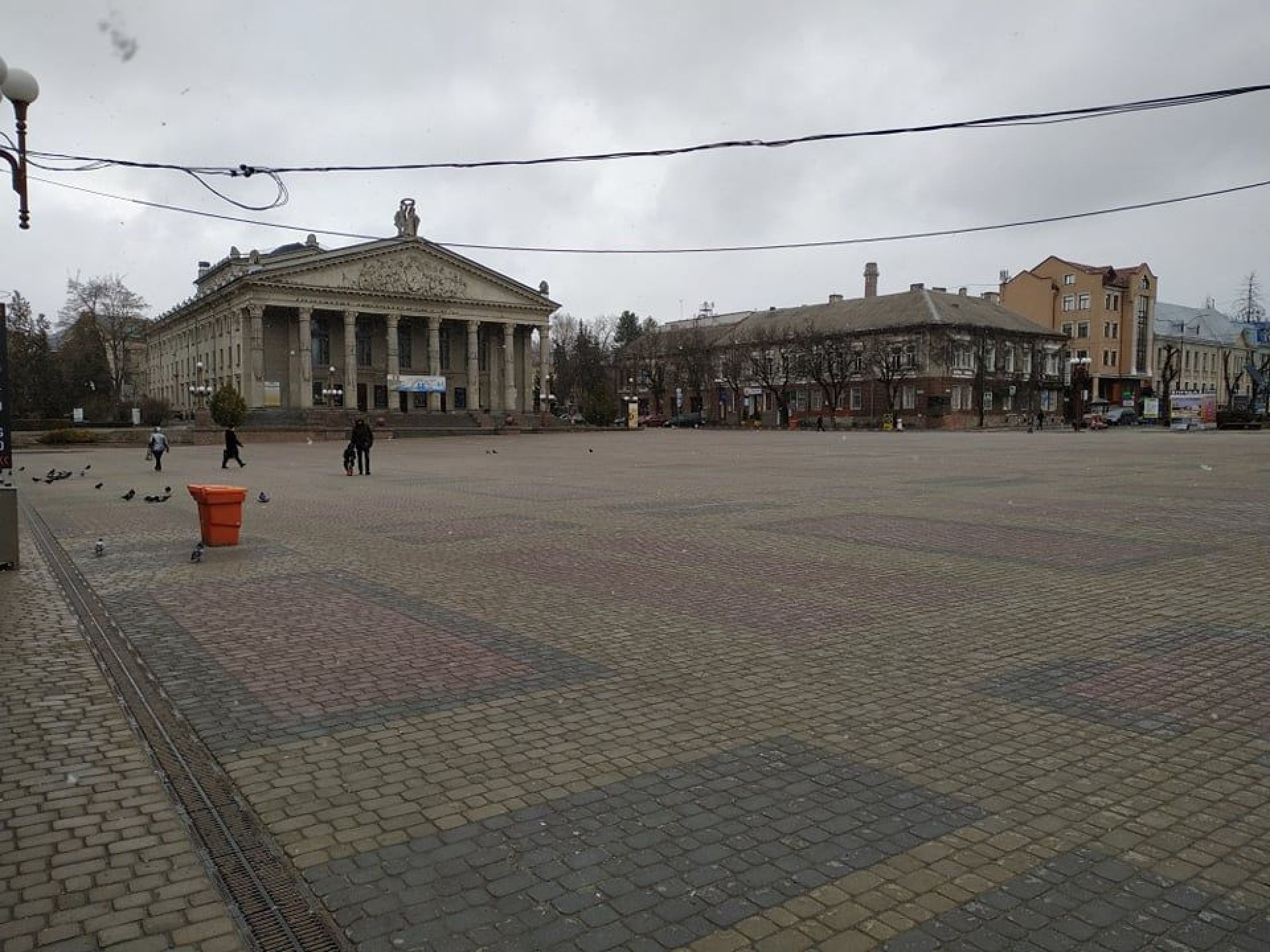 Деякі вулиці абсолютно пусті: без машин та людей. У центрі автомобілі є, однак їх не так багато як зазвичай. На Театральному майдані час від часу проходять люди. У парку «Топільче» також майже немає нікого.