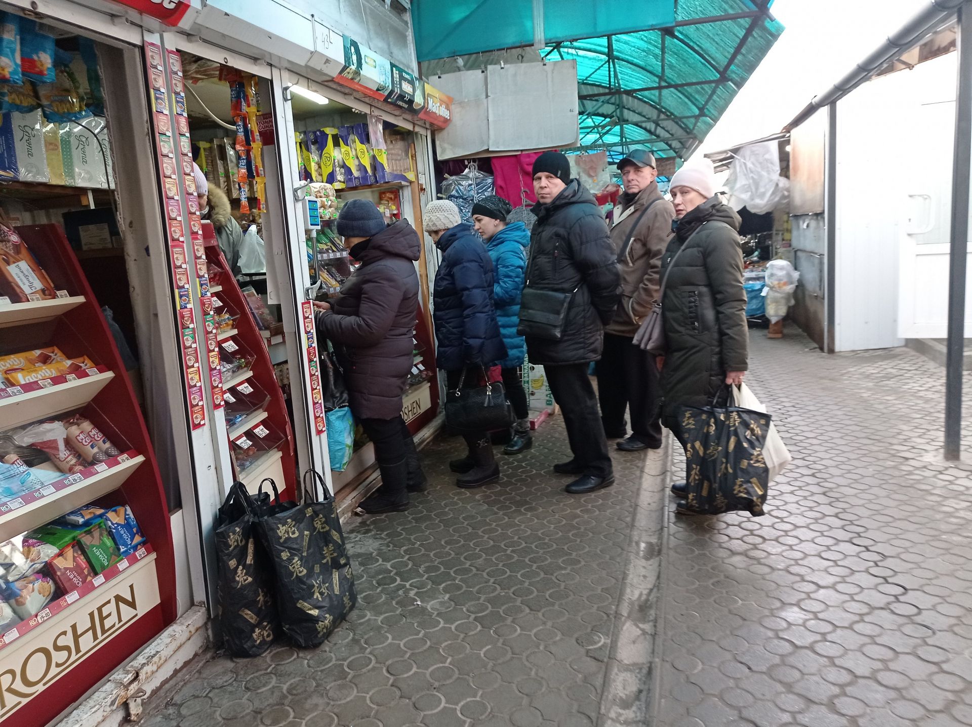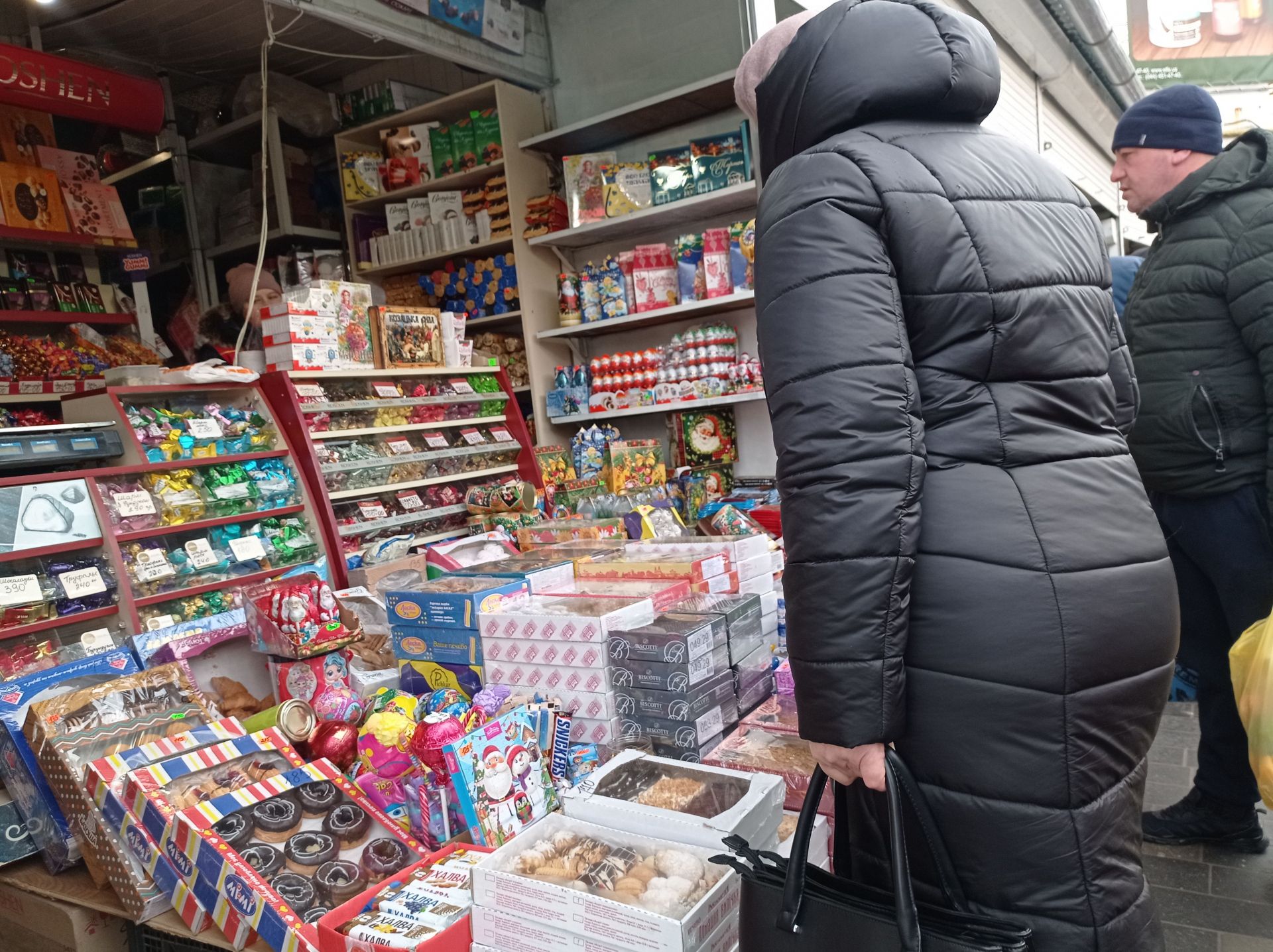 - Залишилось всього кілька годин до святкування Нового року. Вдень 31 грудня у місцевих магазинах та на ринку ажіотаж – чимало людей готові вистояти у великій черзі, аби купити продукти на святковий стіл.
