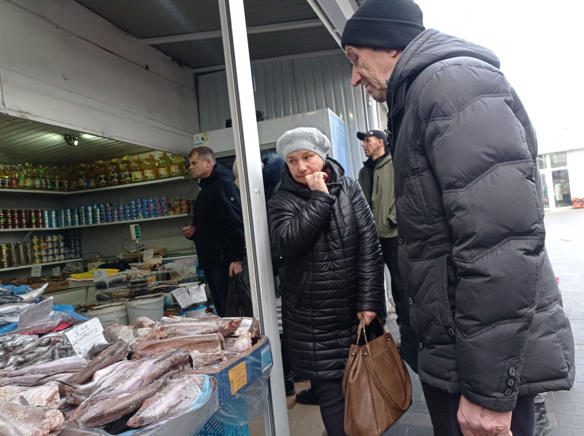 Покупців не бракує, до крамниць вишикувались черги. За нашими спостереженнями, багато тернополян купують ковбаси, свіжоморожену рибу, фрукти й овочі.