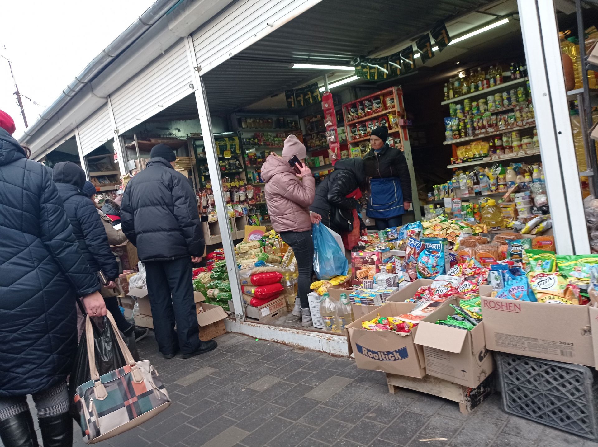 В маркеті АТБ, який розміщений на території центрального міського ринку, ніде яблуку впасти.
