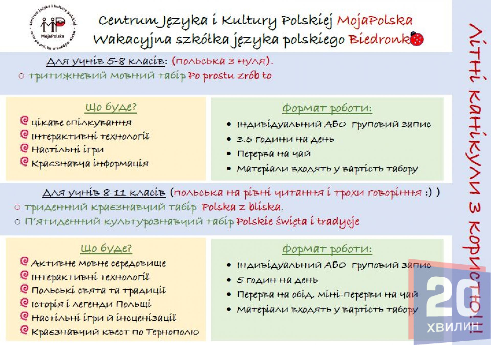 Табори будуть проводитися на літніх канікулах, від другої половини червня до серпня. Точні дати будуть опубліковані на сторінці ЦПМіК MojaPolska на початку травня.